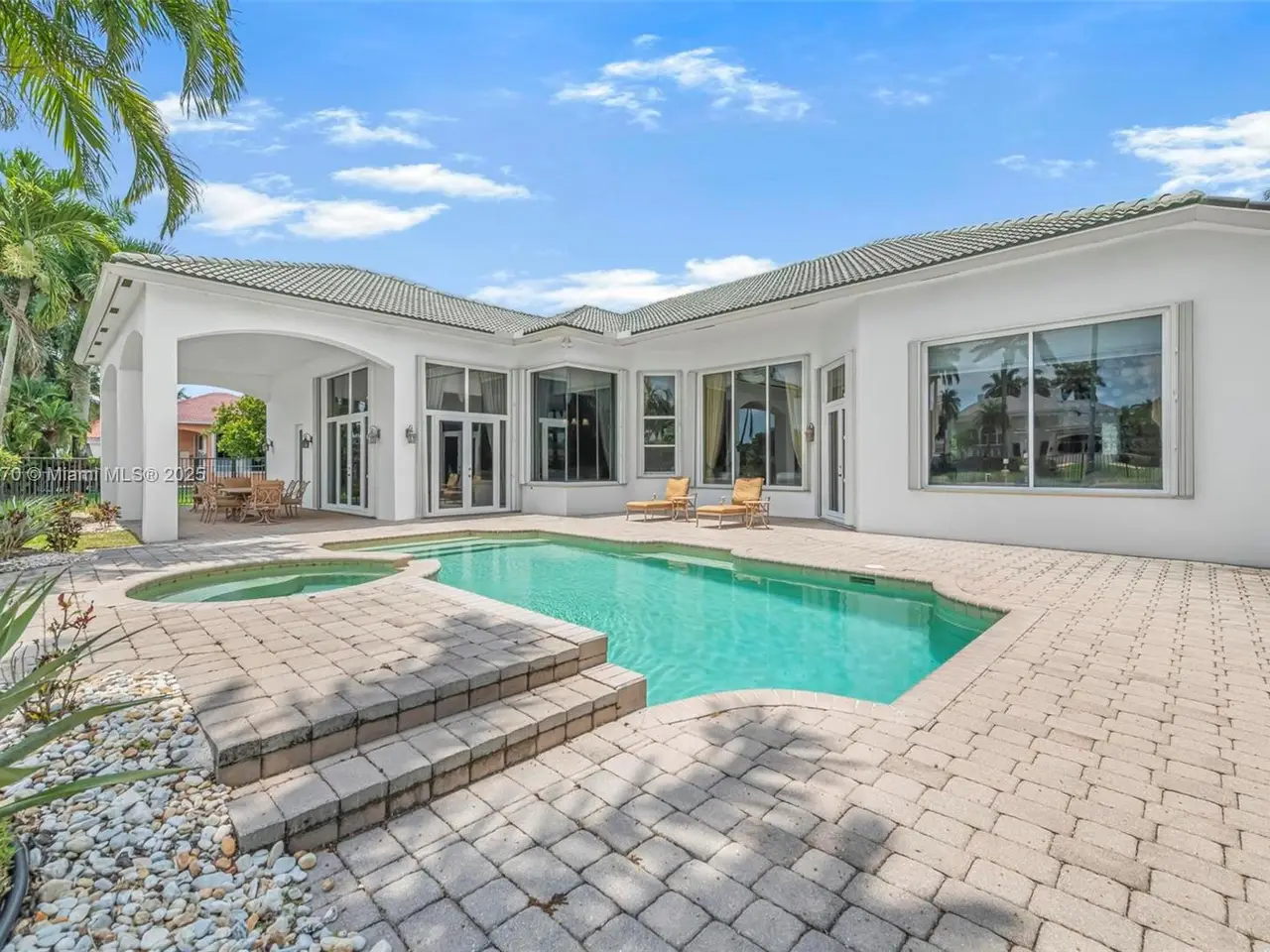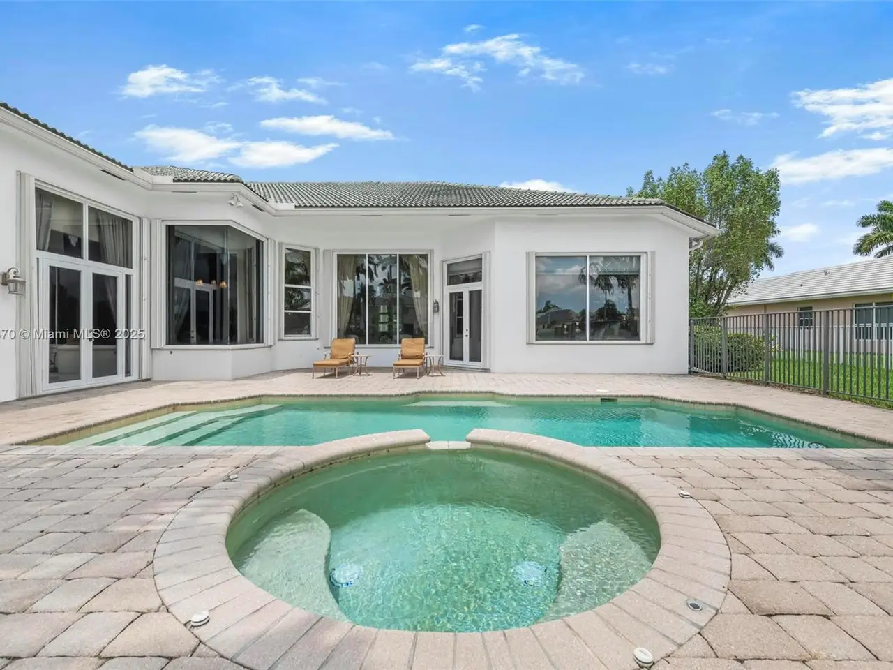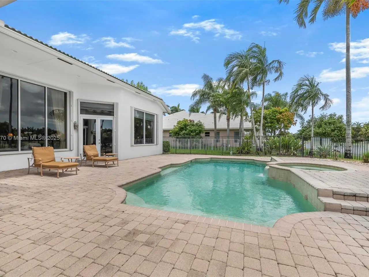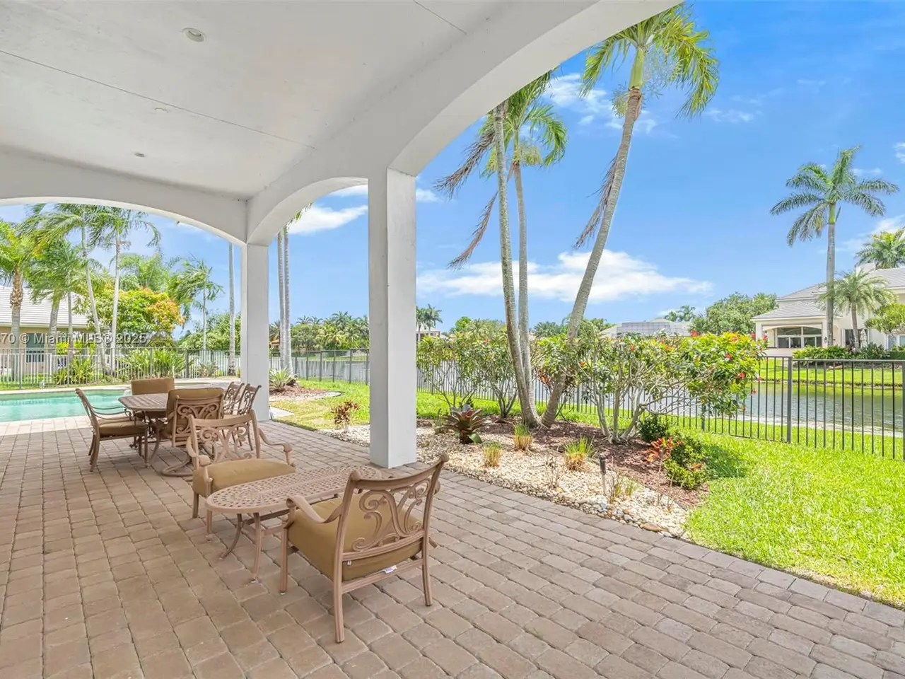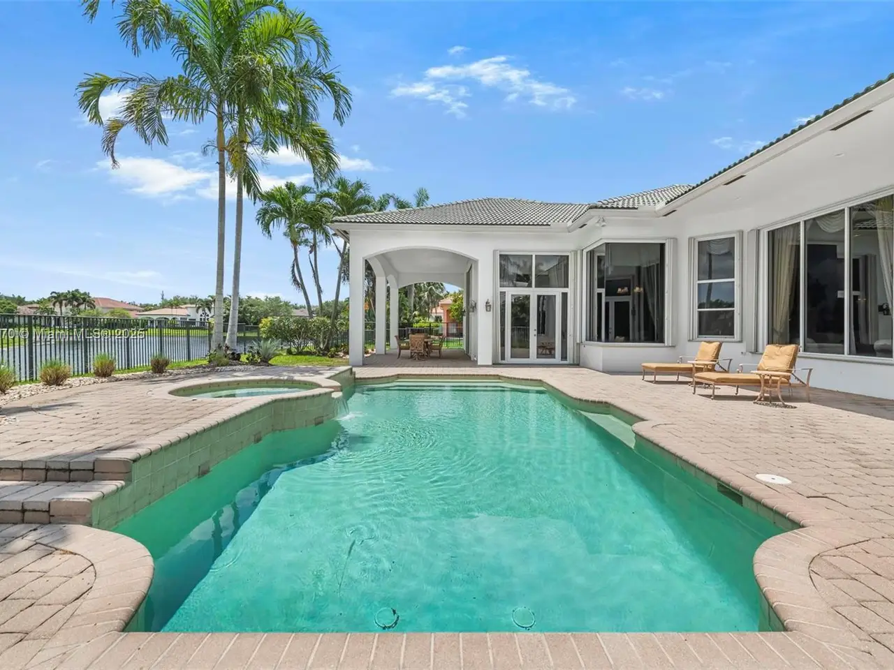 • Beautifully paved backyard oasis with pool and serene lake views