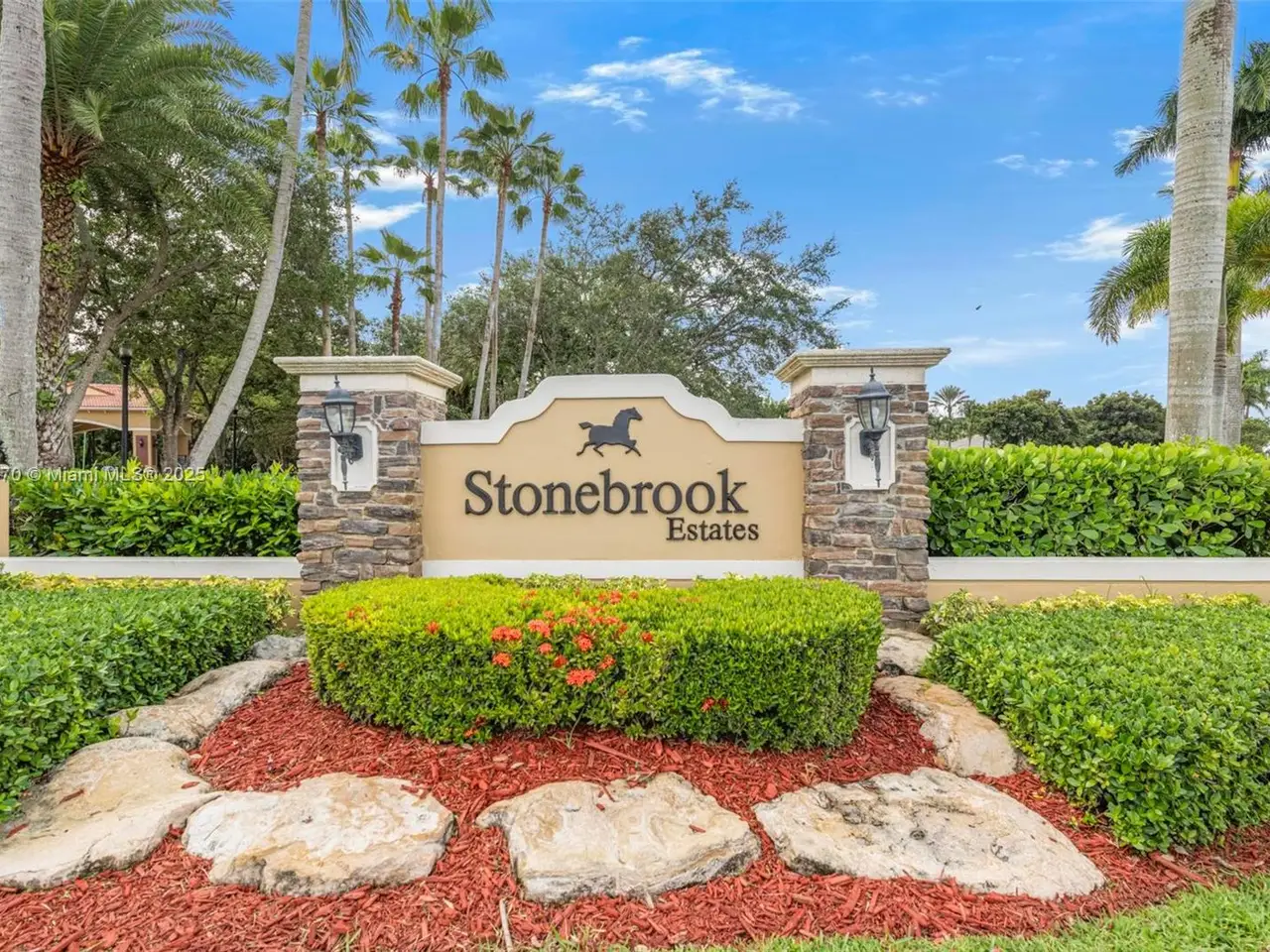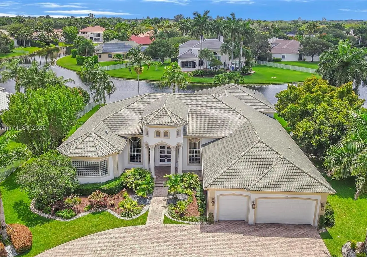 Discover refined elegance in this exceptional estate home, perfectly situated in the prestigious 24-hour guard-gated community of Stonebrook Estates. This residence impresses w/ its grand curb appeal & beautifully paved circular driveway. Lovingly maintained by its original owners, the home showcases breathtaking panoramic lakeviews throughout. Featuring 5 bedrooms, 5.5 baths + an executive office. The thoughtfully designed triple-splitfloor plan offers both privacy + functionality. The custom gourmet kitchen opens to light-filled living spaces.Luxurious primary suite w/ a sitting area + dual walk-in closets. Step outside to a beautifully paved backyard oasiscomplete w/ pool & serene lake views. Enjoy resort-style amenities including a clubhouse, tennis + tot lot. A true gem!