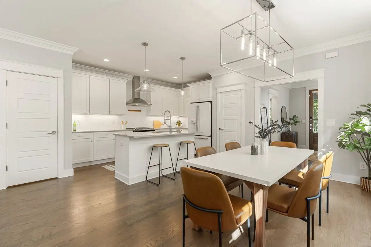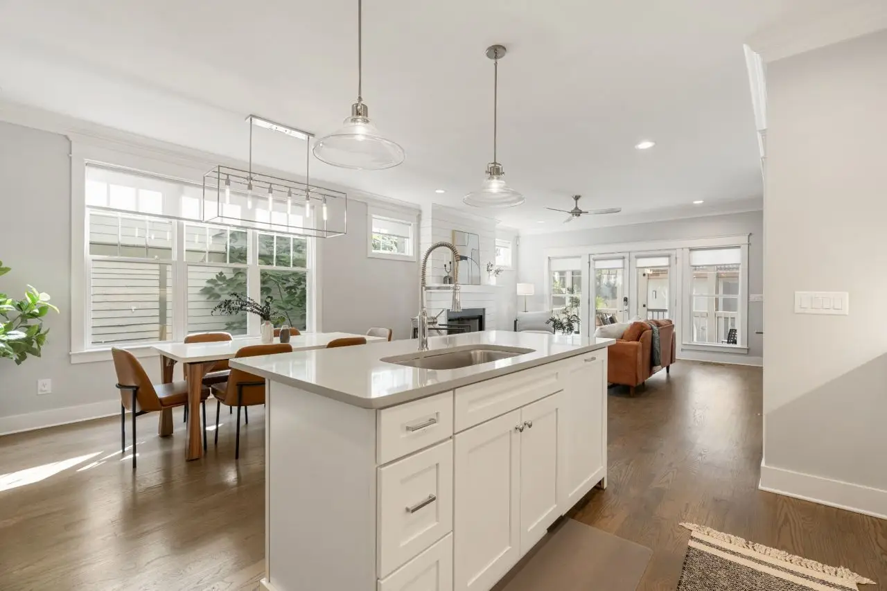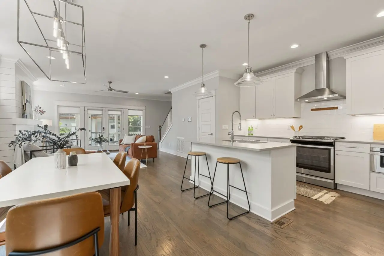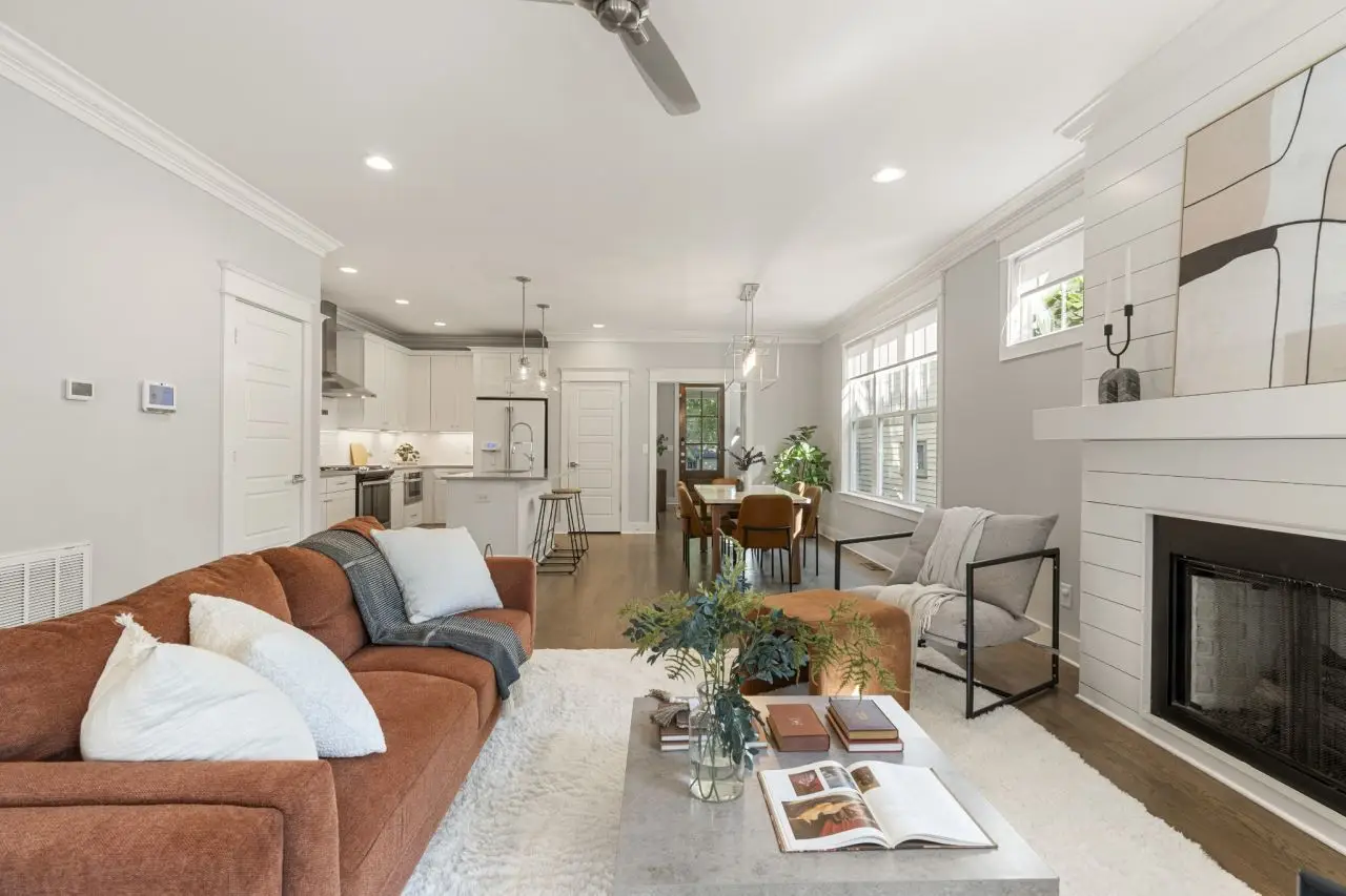 Charming and versatile, this Cleveland Park home offers thoughtful design and income potential. The open-concept layout features a bright kitchen with white cabinetry, a large island, and stainless range hood, flowing into a cozy living area with a shiplap fireplace. The main level includes a guest bedroom or office, while upstairs boasts a spacious primary suite with tray ceilings, dual vanities, tiled shower, his-and-hers closets, plus two additional bedrooms, full bathroom, and a full laundry room. Enjoy a screened-in back deck and private backyard retreat. A major bonus is the detached garage with a fully equipped 1-bed, 1-bath apartment dadu (604 sq ft) complete with kitchen, living room, and its own covered patio and deck. Ideal for guests, rental income, or multi-generational living.