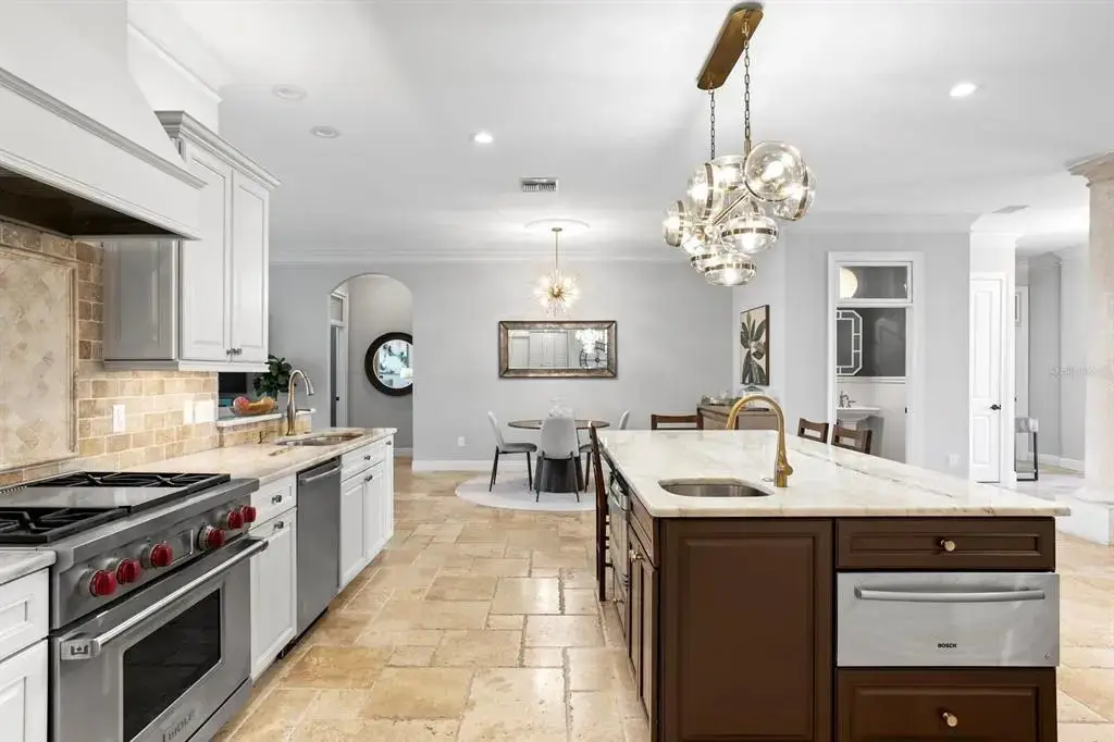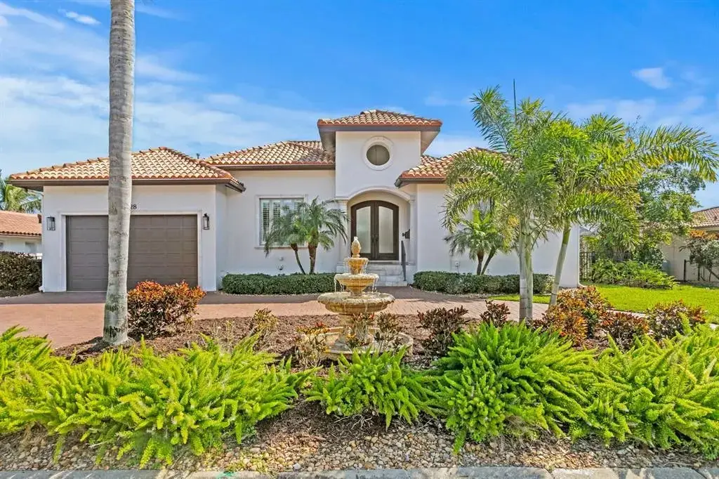 Nestled in the prestigious Venetian Isles, this Modern Mediterranean home offers 90 feet of deep-water frontage with direct access to Tampa Bay, delivering the best in single-level living. Custom-built in 2007 and ideally positioned on the east side of the street, this home boasts a thoughtfully designed layout, where three of the four bedrooms feature en-suite baths. The open-concept design is perfect for both everyday living and entertaining, featuring a formal dining area, an eat-in kitchen, and a spacious island with ample seating. A Wolf gas range and a stylish coffee bar complete the gourmet kitchen. The primary suite serves as a private retreat, offering a separate seating area with serene views of the pool and water. The luxurious primary bath includes dual vanities, a sit-down dressing area, and a charming clawfoot tub, while the expansive walk-in closet is thoughtfully organized and even includes a second laundry area. A dedicated office with built-ins and water views enhances the home’s functionality. Elegant details such as 10-foot ceilings, crown moldings, plantation shutters, and travertine flooring throughout create an inviting ambiance, seamlessly leading to your dream waterfront oasis. Enjoy alfresco dining in the screened-in outdoor kitchen, equipped with a DCS stainless grill and Viking smoker, while overlooking your private dock with triple boat lifts. The travertine-surrounded saltwater pool and spa provide the perfect vantage point to observe manatees, dolphins, and coastal birds, all while soaking in Florida’s endless sunshine. A grand three-tier fountain welcomes you at the circular driveway, offering ample off-street parking alongside a spacious two-car garage with additional storage. A 24KW Generac Air-Cooled Standby Generator with a 200Amp Transfer Switch was installed 7/ 2025. HVAC's (2024), Tankless HW (2022). This is truly a must-see waterfront retreat!