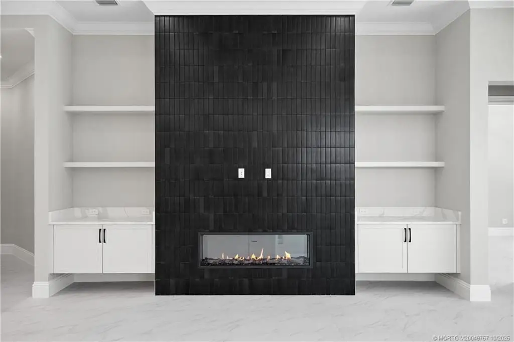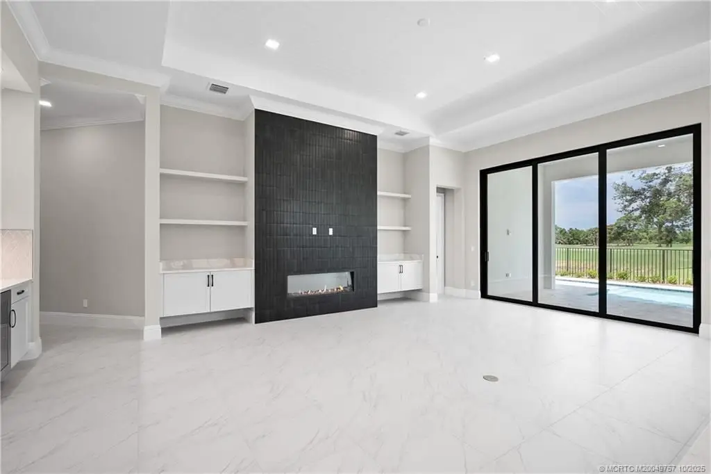 Locat?d in th? pre??t??g???u?? ?esoro Club, this ex??e??tional residence features a striking contemporary front elevation. Based on the Stella model, this residence boasts impressive high-volume ceilings and a chef's kitchen with top-of-the-line Caf? appliances, including a spacious 42-inch built-in refrigerator. The kitchen is designed for functionality and style, featuring an oversized central island with a stunning 2.5-inch waterfall edge, a walk-in pantry with custom shelving, and stacked cabinets above a natural gas cooktop. The great room is a focal point of the home, enhanced by an electric fireplace surrounded by elegant tiling, creating an inviting and sophisticated atmosphere. The backyard is perfect for entertaining, complete with a luxurious pool and a travertine paver patio and pool deck that elevate outdoor living!