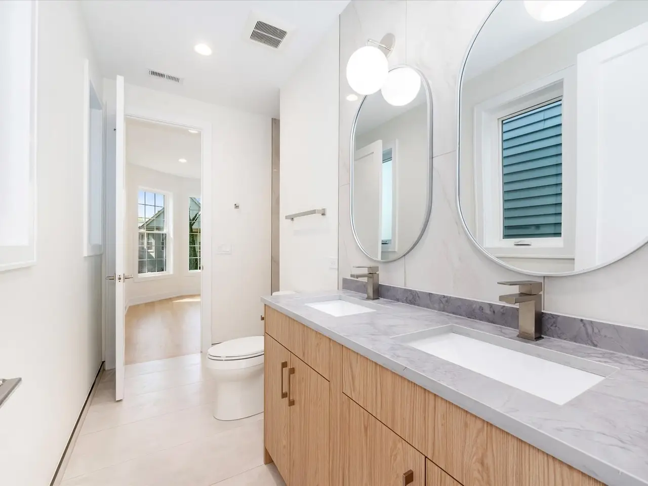 • Jack-and-Jill bathroom with ample shared vanity space