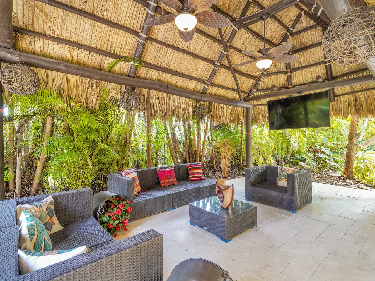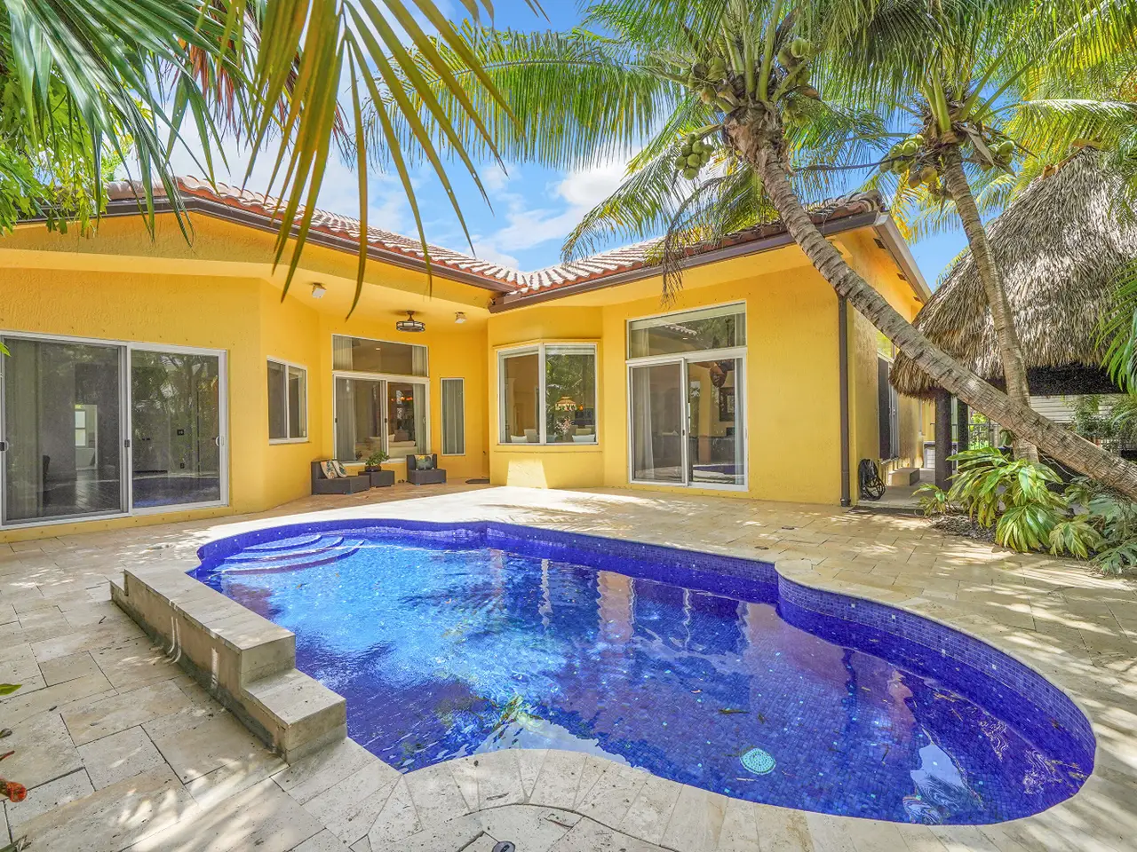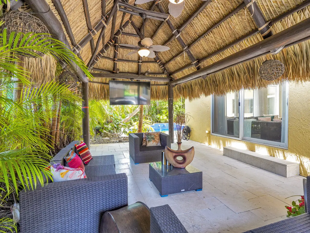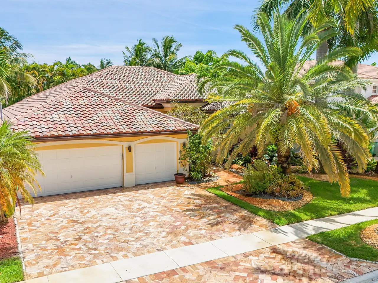 Welcome to this beautifully maintained 5-bedroom, 3.5bathroom residence with a versatile den, located in the prestigious gated community of isles of sunset lakes. This expansive single-story home features lush, professionally landscaped grounds and a brand-new roof, along with hurricane-impact windows throughout for added peace of mind. Enjoy ample living space, a 3-car garage, and an inviting backyard oasis complete with a private pool and adjacent tiki bar—perfect for entertaining. The hoa fee includes cable, internet, and a home security alarm system. Residents have access to a resort-style clubhouse offering a wide range of amenities, including a community pool, tennis courts, playgrounds, and a fully equipped fitness center.