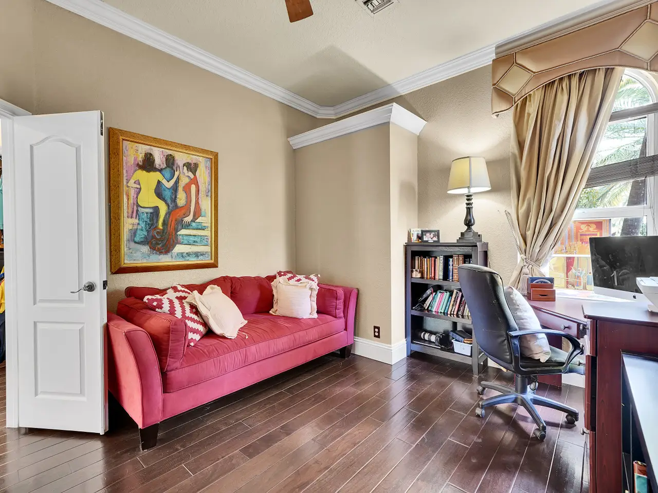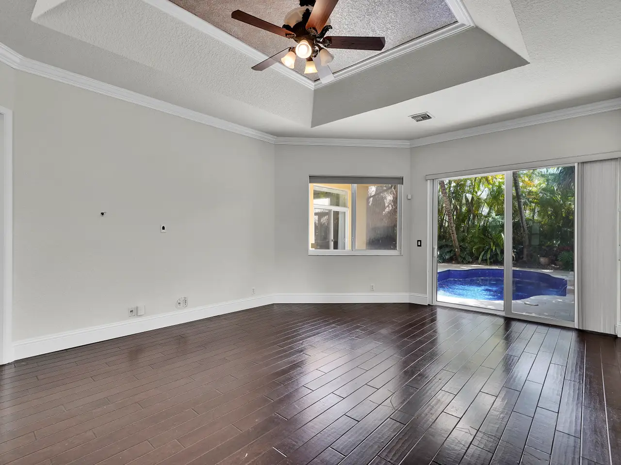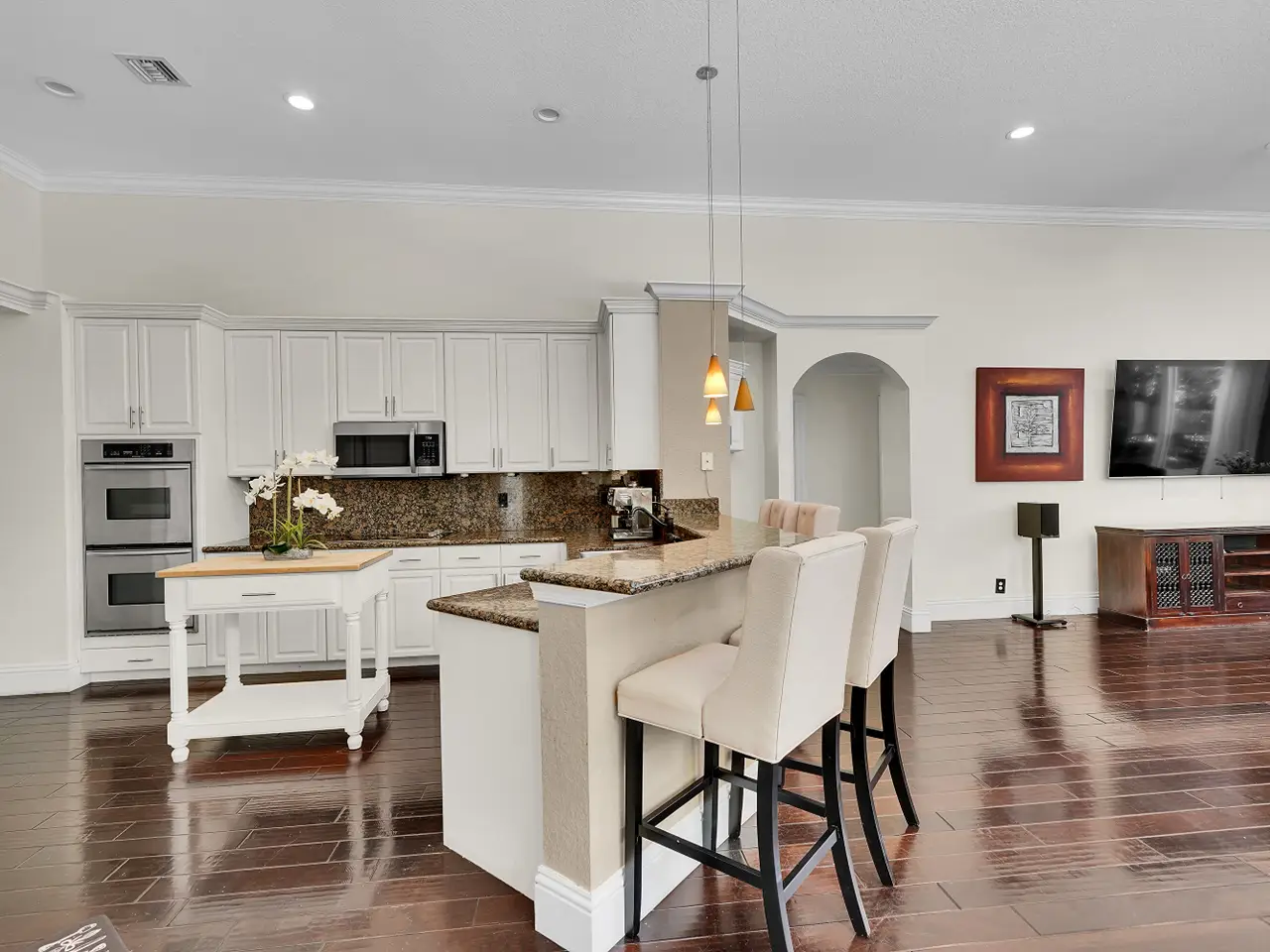 Welcome to this beautifully maintained 5-bedroom, 3.5bathroom residence with a versatile den, located in the prestigious gated community of isles of sunset lakes. This expansive single-story home features lush, professionally landscaped grounds and a brand-new roof, along with hurricane-impact windows throughout for added peace of mind. Enjoy ample living space, a 3-car garage, and an inviting backyard oasis complete with a private pool and adjacent tiki bar—perfect for entertaining. The hoa fee includes cable, internet, and a home security alarm system. Residents have access to a resort-style clubhouse offering a wide range of amenities, including a community pool, tennis courts, playgrounds, and a fully equipped fitness center.