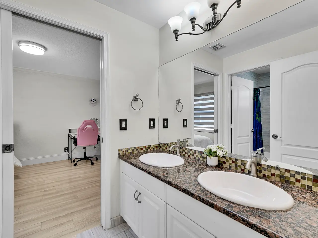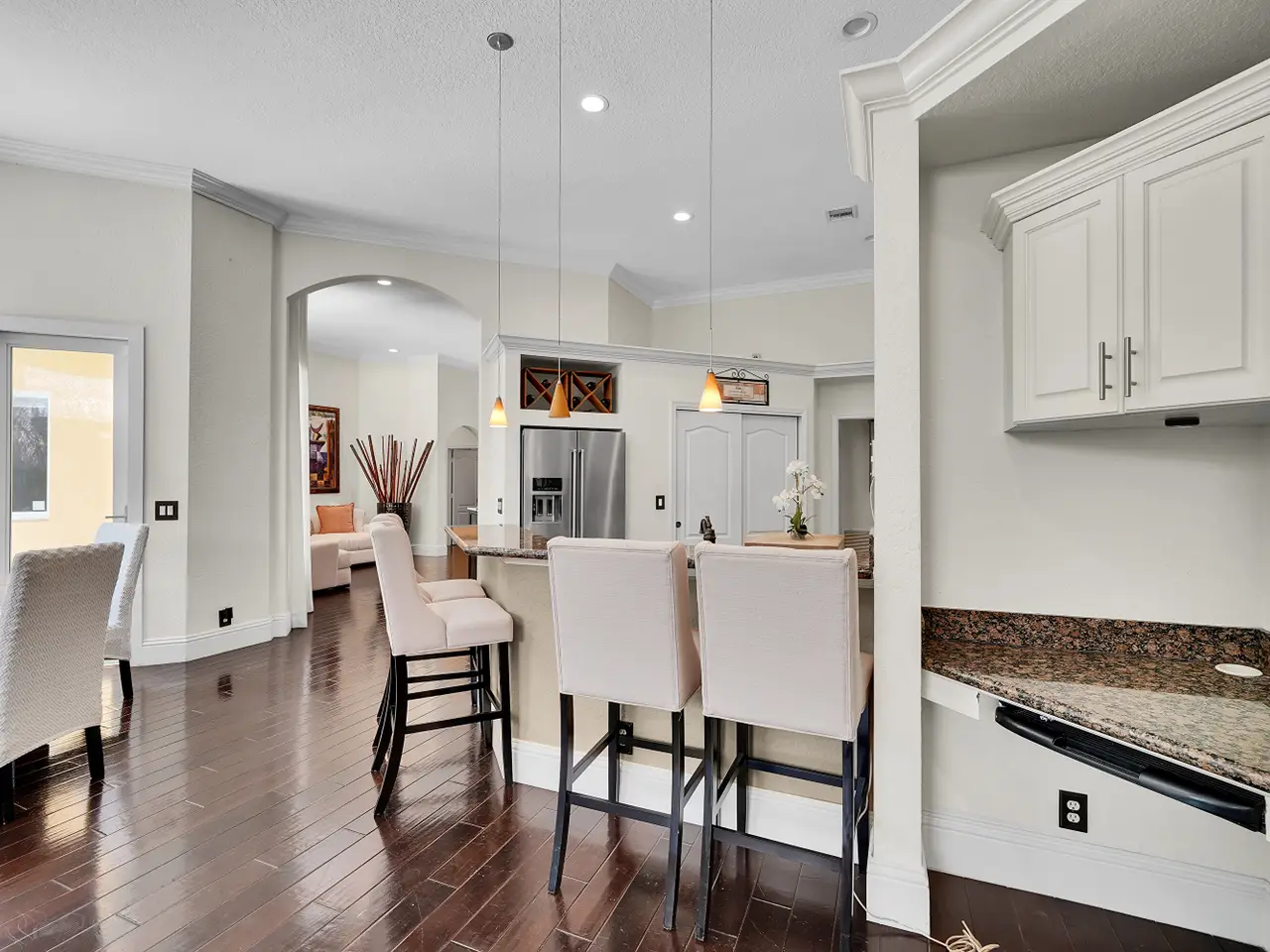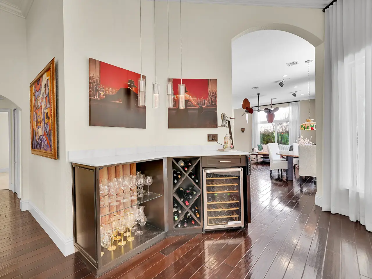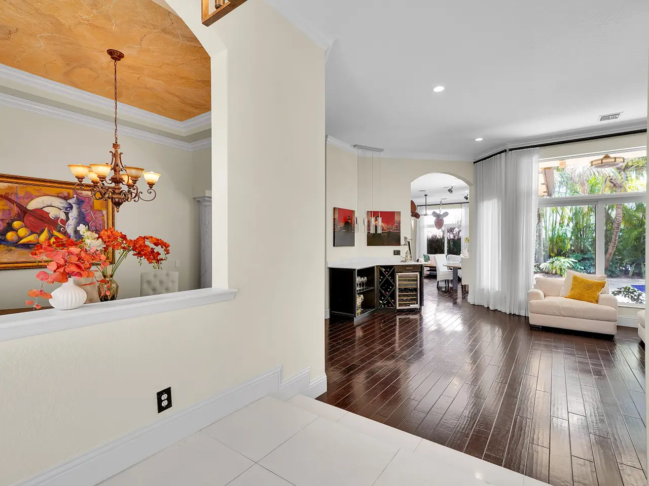 Welcome to this beautifully maintained 5-bedroom, 3.5bathroom residence with a versatile den, located in the prestigious gated community of isles of sunset lakes. This expansive single-story home features lush, professionally landscaped grounds and a brand-new roof, along with hurricane-impact windows throughout for added peace of mind. Enjoy ample living space, a 3-car garage, and an inviting backyard oasis complete with a private pool and adjacent tiki bar—perfect for entertaining. The hoa fee includes cable, internet, and a home security alarm system. Residents have access to a resort-style clubhouse offering a wide range of amenities, including a community pool, tennis courts, playgrounds, and a fully equipped fitness center.