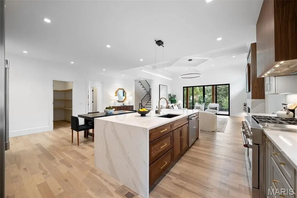 A MUST SEE! 532 South Fillmore is not your typical new build. Offering all of the space & modern conveniences you expect, it goes a step further, pushing a fresh, clean style. This 5-bedroom, 4.5-bath new build by Molner Homes offers EXCEPTIONAL craftsmanship. From sleek, clean lines to warm, refined wood finishes, thoughtful design is evident in every detail. The incredible chef’s kitchen features a large center island, quartz countertops, custom cabinetry, 6-burner gas range, & a spacious walk-in pantry. The kitchen flows seamlessly into the great room, where 12-foot ceilings, gas fireplace, & access to a large covered outdoor living area make it perfect for entertaining. The main-floor primary suite offers a private retreat w/ dual walk-in closets & a spa-like en suite bath complete w a soaking tub, walk-in shower, & dual vanities. Upstairs, bedrooms 2, 3, and 4 each have walk-in closets. One includes a private en suite, while the other two share a spacious bath. The finished lower level adds nearly 1,500 sq ft of finished living space, including a 5th bedroom, full bath, & convenient kitchenette—ideal for convenience or entertaining. Additional highlights include main-floor laundry/mudroom w/ custom built-ins, rich hardwood floors, Hardie board siding, zoned HVAC, attached 2-car garage, & huge, flat backyard perfect for a pool. Just blocks from the heart of Kirkwood including farmers market, shops, & restaurants, this home is made to impress.