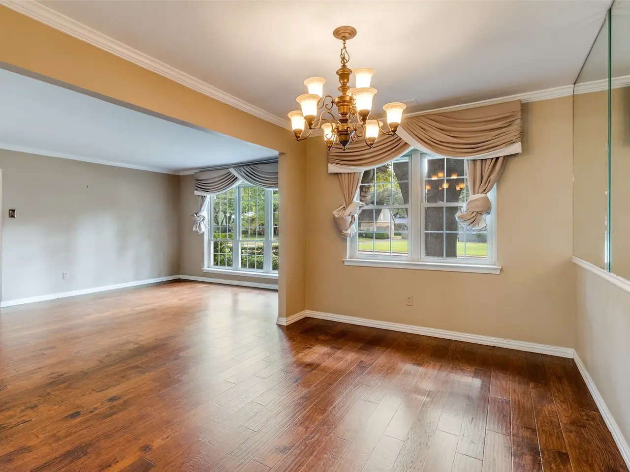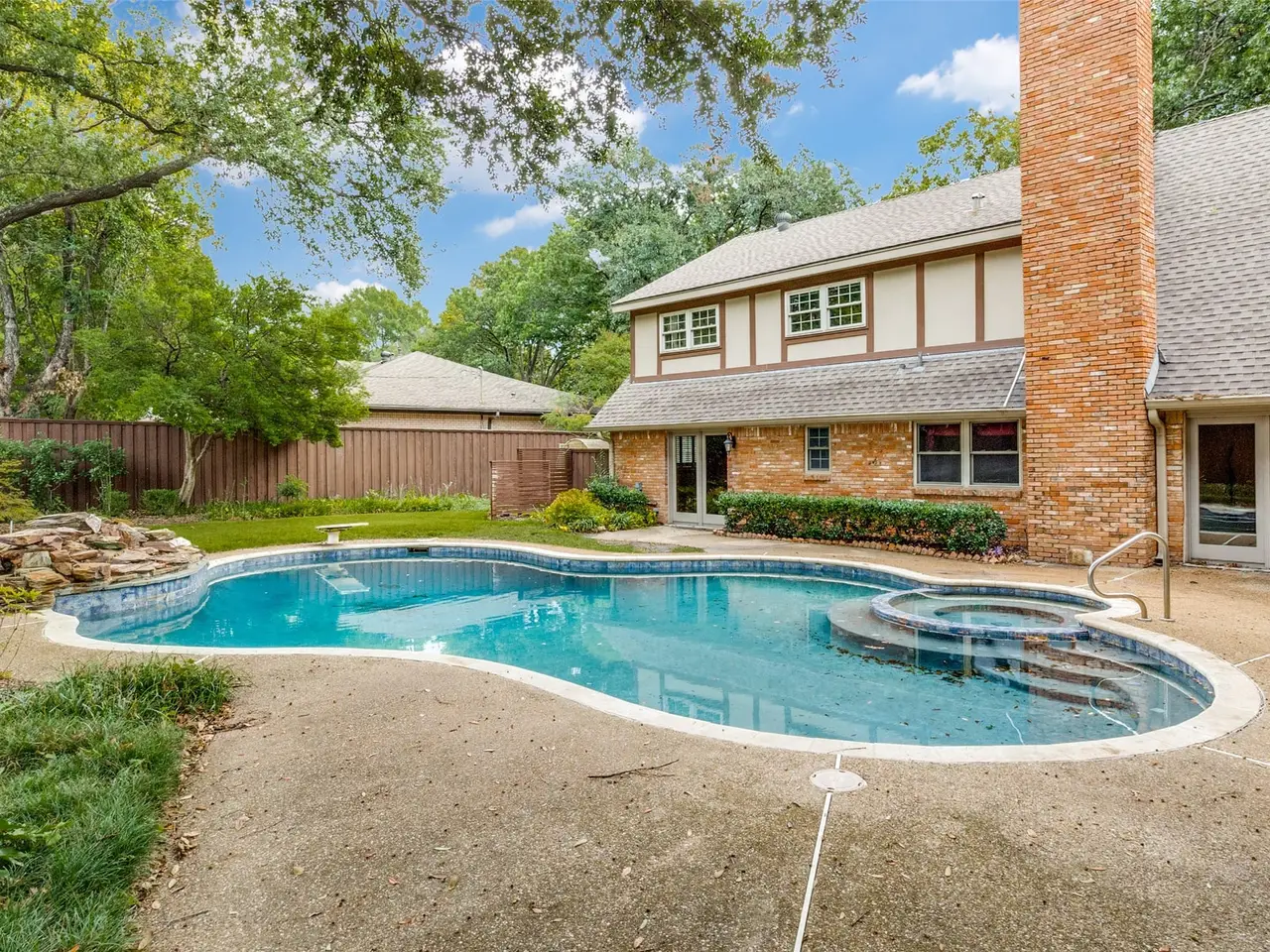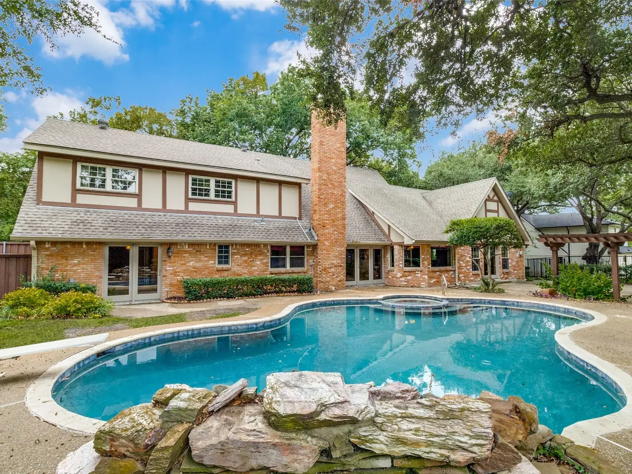 Welcome to a beautiful and inviting home. Nestled in the heart of Dallas' prestigious Private School Corridor. This property exudes curb appeal with its towering trees and lush landscaping. Designed for easy living and effortless entertaining. Gorgeous wood floors lead you into an extraordinary over-sized den enhanced with recessed lights, crown moldings. Updated patio door opens to a beautiful lushly landscaped backyard and a terrific pool. Elegant living and dining rooms have stunning wood floors. The den opens to a well-appointed gourmet kitchen features gorgeous wood floors and a kitchen work island and enhanced with a huge walk-in pantry with built-in shelves for tons of storage. Spectacular over-sized game room features a tall, beamed ceiling, recessed lights, handsome wood floors and a wall of built-in cabinets for extra storage. The spacious primary suite boasts a huge walk-in closet with plantation shutters. Over-sized primary bathroom with a spa like bathroom has a jetted tub, separate shower and two sinks. Updated energy efficient dual pane windows. Updated patio doors with energy efficient dual pane glass.