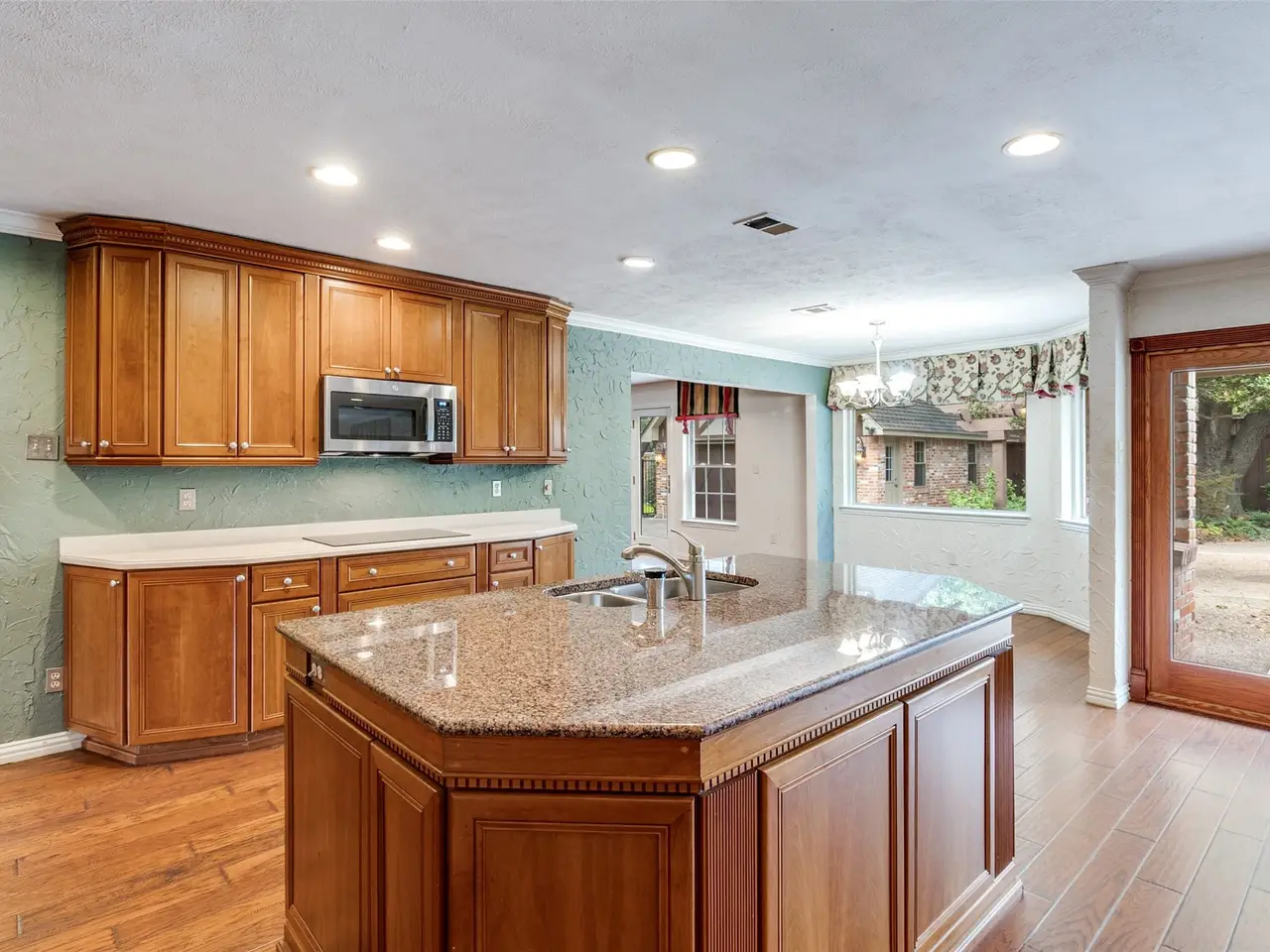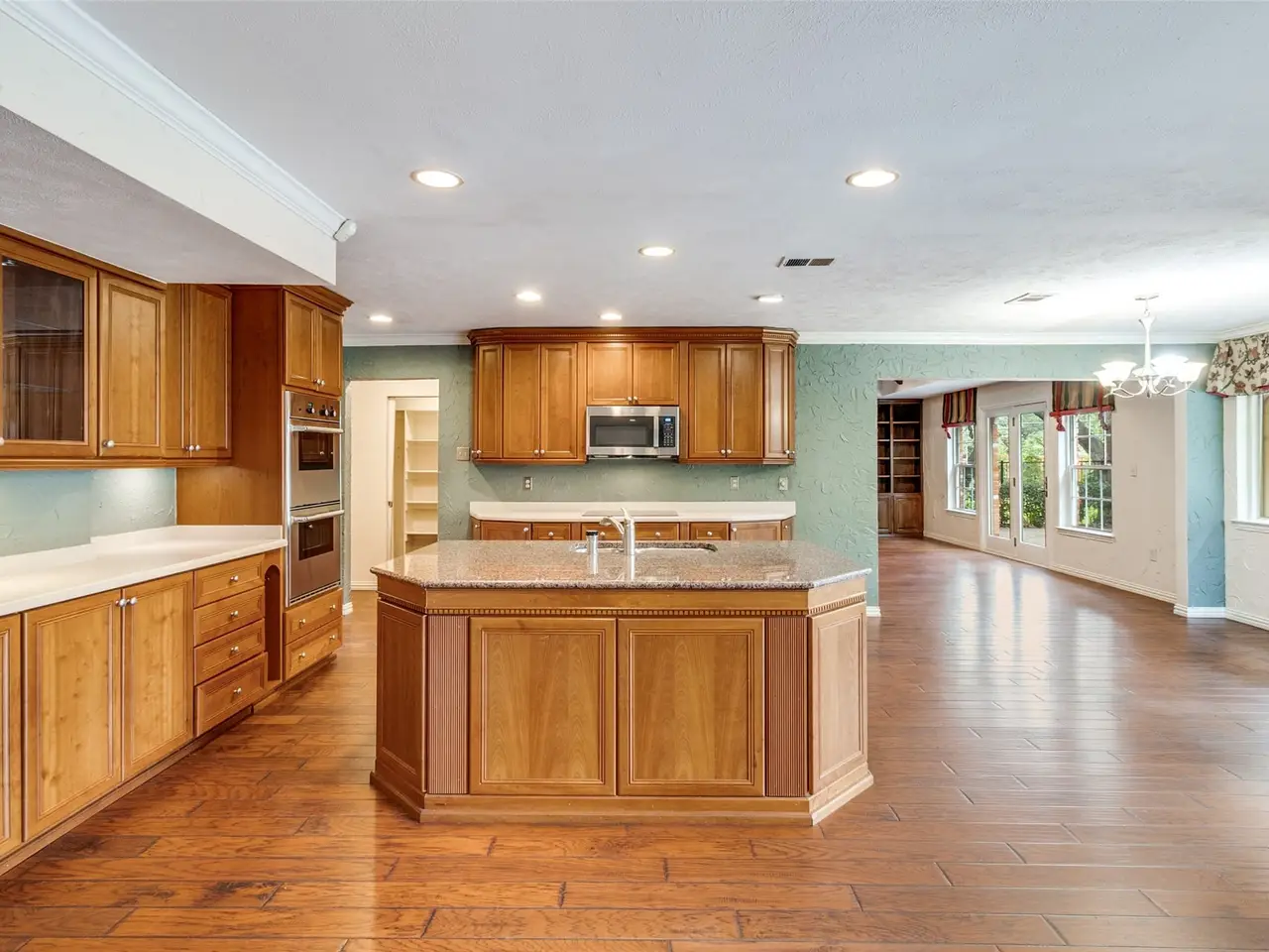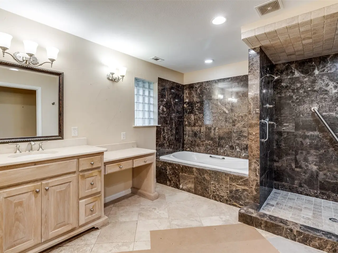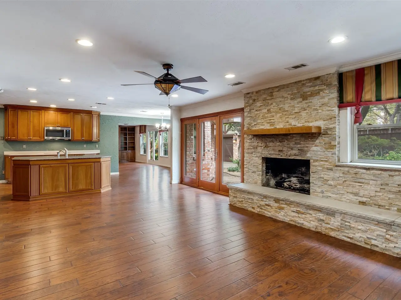 Welcome to a beautiful and inviting home. Nestled in the heart of Dallas' prestigious Private School Corridor. This property exudes curb appeal with its towering trees and lush landscaping. Designed for easy living and effortless entertaining. Gorgeous wood floors lead you into an extraordinary over-sized den enhanced with recessed lights, crown moldings. Updated patio door opens to a beautiful lushly landscaped backyard and a terrific pool. Elegant living and dining rooms have stunning wood floors. The den opens to a well-appointed gourmet kitchen features gorgeous wood floors and a kitchen work island and enhanced with a huge walk-in pantry with built-in shelves for tons of storage. Spectacular over-sized game room features a tall, beamed ceiling, recessed lights, handsome wood floors and a wall of built-in cabinets for extra storage. The spacious primary suite boasts a huge walk-in closet with plantation shutters. Over-sized primary bathroom with a spa like bathroom has a jetted tub, separate shower and two sinks. Updated energy efficient dual pane windows. Updated patio doors with energy efficient dual pane glass.