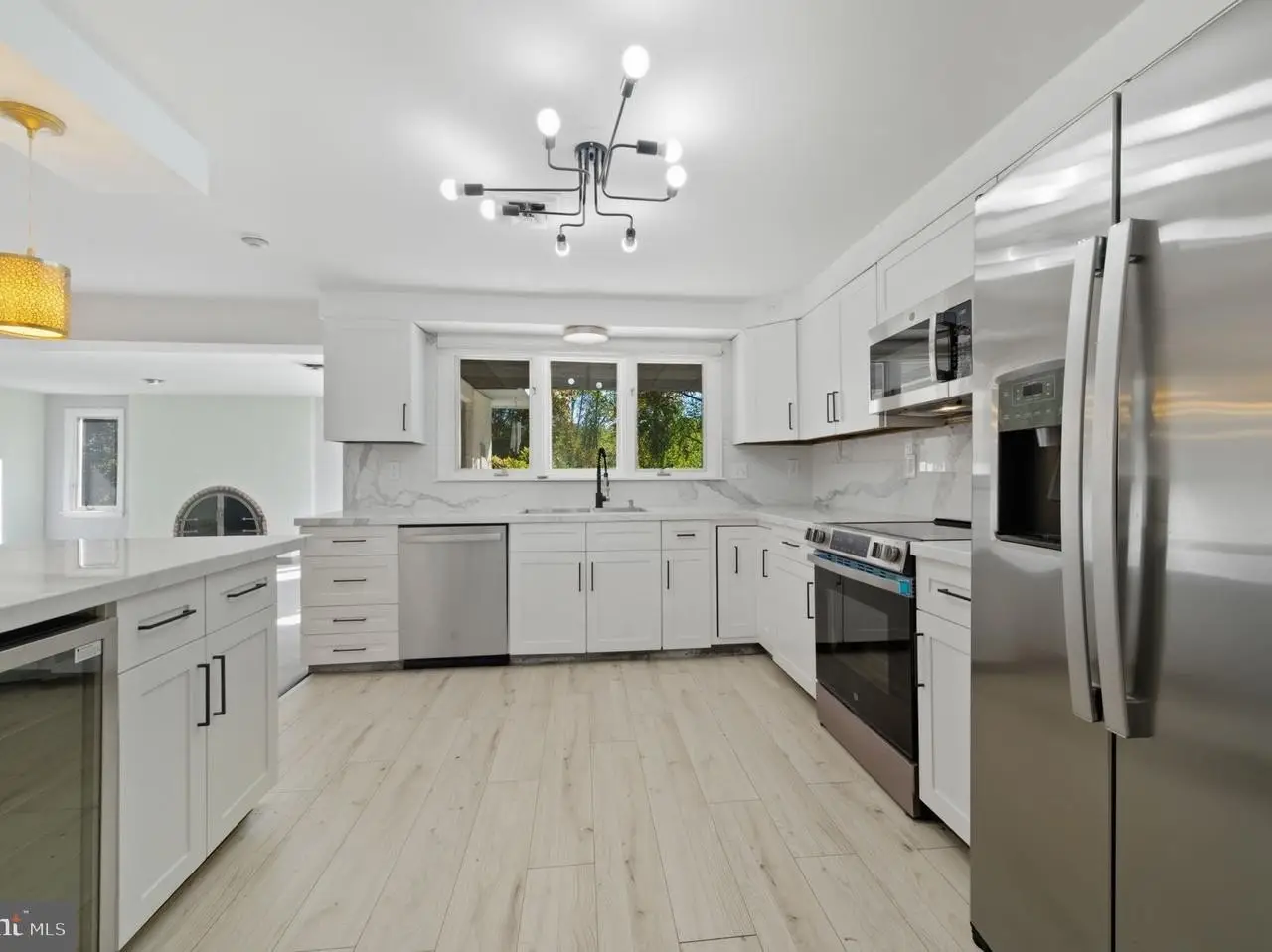 Experience refined living at 6 Southview Path, a stunning Chadds Ford residence offering exceptional versatility and modern elegance. Thoughtfully reimagined in 2023 & 2024, this 6-bedroom, 4.5-bath, 3 car garage home lives like two houses in one-perfect for multigenerational living or flexible guest accommodations. Step inside to a bright, open layout featuring new light fixtures, recessed lighting, and fresh neutral paint throughout. The gourmet main kitchen showcases custom cabinetry, granite countertops, Sub-Zero refrigerator, stainless steel appliances, and a wine refrigerator. Tile flooring warms up from ductwork under adds comfort in cooler months, while the spacious pantry and main-level laundry room enhance functionality. A wood-burning fireplace and new powder room complete the inviting main floor. The primary suite is a private retreat with a walk-in closet, jetted soaking tub, tiled shower, and makeup/dressing area framed by panoramic windows. Two additional generous bedrooms and a fully renovated hall bath complete the upper level. Step out from the kitchen onto a screened-in deck overlooking the scenic backyard and glistening in-ground pool-a perfect setting for outdoor relaxation and entertaining. The lower level offers a completely renovated living space with luxury vinyl plank flooring, mix with carpet, a modern kitchen with granite counters and dining area, living room with the wood-burning fireplace, 3 bedrooms, a 2 new full bath with walk-in shower, and its own laundry room. Sliding doors open to a stamped-concrete patio that leads to the pool, cabana, and beautifully landscaped yard. Additional highlights include two separate heating systems, water heaters, and new oil tanks for upper and lower levels, plus a separate garage, workshop, and ample storage. Enjoy timeless design, high-end finishes, and unmatched flexibility-all in the desirable Chadds Ford area with sought after Unionville-Chadds Ford Schools.