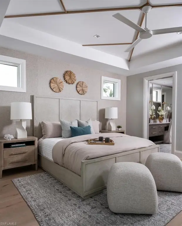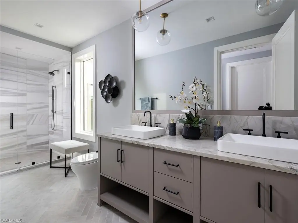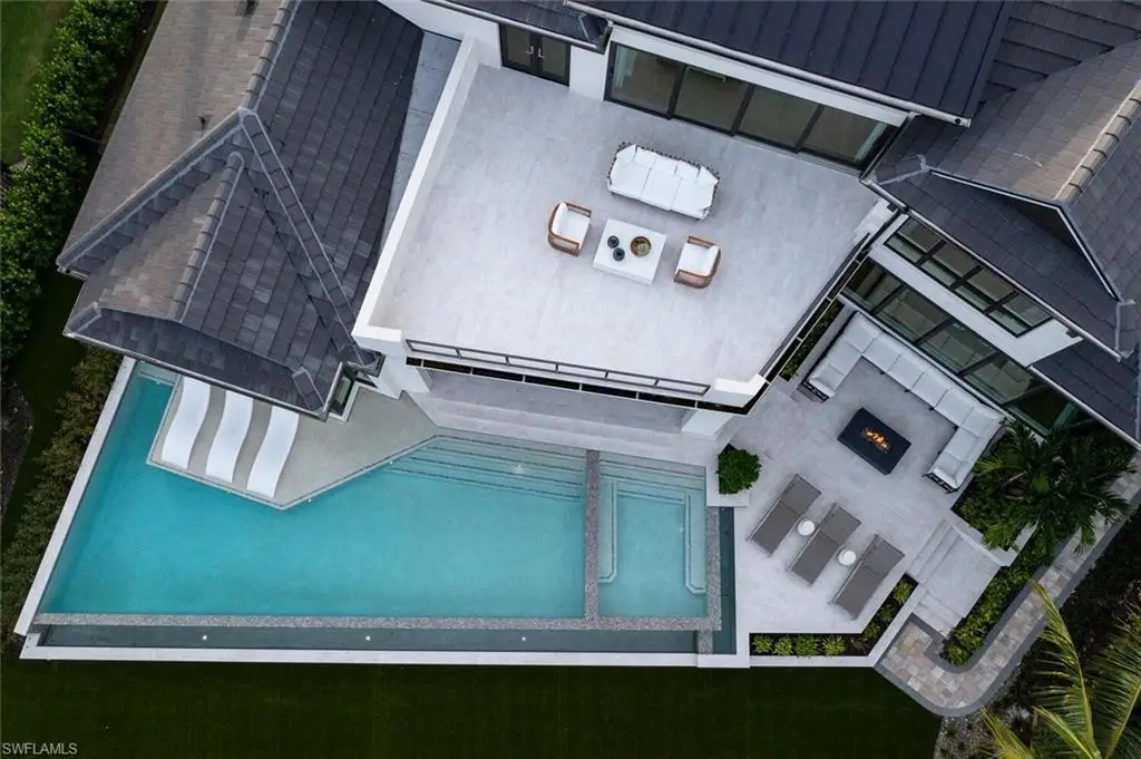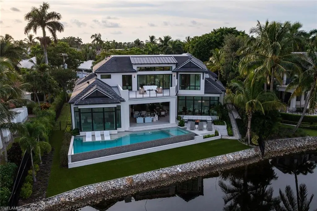 Gin Lane Gem. This stunning new construction home in the prestigious Port Royal neighborhood blends modern elegance with serene waterfront views of Hidden Bay. Crafted by Kukk Architecture & Design and built by Wilbrett Construction, it features exquisite interiors by Adelyn Charles Interiors and offers a sophisticated yet relaxed living experience. The floor plan balances spacious communal areas with private retreats. The primary suite on the main floor boasts posh walk-in closets, a spa-like bath, and an executive study. Four guest ensuites on the upper floor and a large bonus room with a wet bar and a second laundry area ensure comfort. Guests will enjoy dolphin sightings and boat views from the open-air balcony. Premium finishes abound, including quality bespoke cabinetry, European hardwood floors, and top-of-the-line Wolfe, Sub-Zero, and Miele appliances. Built with superior techniques, the home features full concrete construction, Andersen impact windows and doors, an elevator from the garage level, remote-controlled screens and shutters, and a whole-house generator. Car enthusiasts will appreciate the oversized three-car garage with room for lifts and an additional bay for a low-speed vehicle. The resort-style infinity pool, spa, covered lanai, summer kitchen, firepit, and lounge area create a perfect outdoor haven. Eligibility for an exclusive Port Royal Club Resident Membership is included.