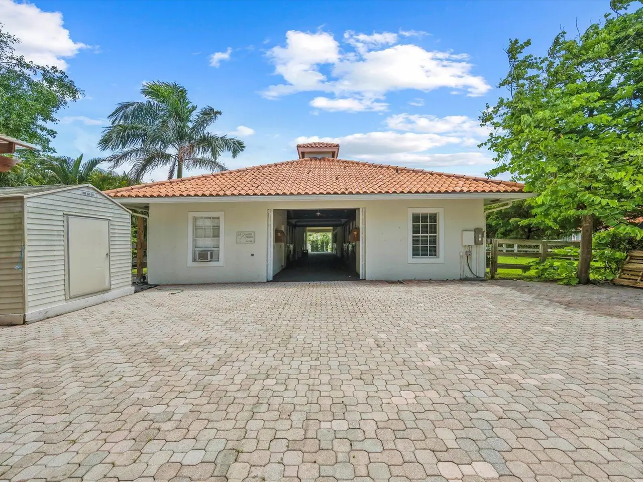 Nestled just a 5-minute stroll from Wellington International, this Saddle Trail Equestrian Estate epitomizes luxury and convenience for horse enthusiasts. Featuring a 5-bedroom, 5-bathroom primary residence surrounded by premier equestrian amenities. Step inside the home to discover multiple living areas, complemented by a sprawling screened-in patio that overlooks a heated saltwater pool and spa--an oasis for relaxation after a day in the saddle. For the equine residents, an immaculate 8-stall center aisle barn awaits, complete with a tack room, full bathroom, washer & dryer, and convenient in-aisle wash racks. Each 12 x 12 stall is outfitted with built-in waterspouts and the stable is complete with a fly spray system and security cameras.