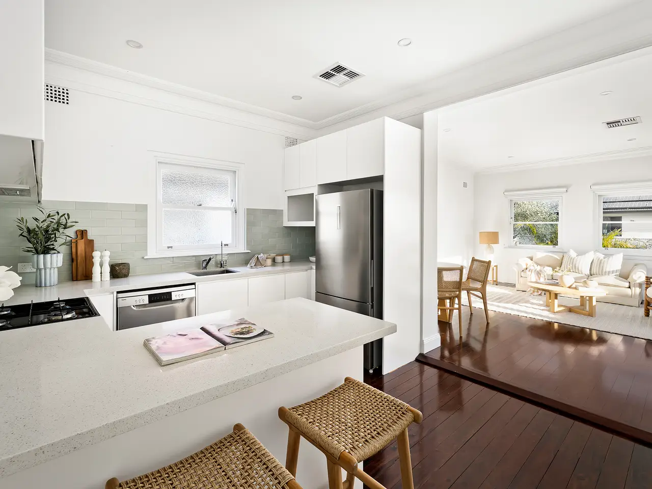 Bathed in light and infused with period charm, this upper duplex enjoys a prized setting near Queenscliff Lagoon and the beach, presenting as a classic Manly residence with a refined contemporary renovation. Lofty ceilings, cornicing and stained pine floors set a tone of understated elegance, while fresh modern embellishments ensure a cohesive, polished aesthetic throughout. The living and dining domain extends fluidly to a sunlit entertainer's terrace that is oriented west for glowing sunsets, while a bedroom balcony facing north captures sea breezes and leafy outlooks. Every element is purposeful, balancing comfort with sophistication in a design attuned to modern coastal living. With the rare advantage of a lock-up garage, this home is also defined by lifestyle – footsteps from Harris Farm, the Andrew Boy Charlton Pool, and a level walk to the surf and village heart of Manly. - Elegant upper duplex with period character and a refined renovation - Bright interiors with high ceilings, cornicing, stained pine flooring - Sophisticated modern finishes applied consistently across every room - Generous living and dining flows seamlessly to sun-drenched terrace - Luxe stone-topped kitchen with gas cooktop, dishwasher, brekkie bar - Main bed with en-suite, second bedroom with north-facing balcony - Pristine modern bathroom with combined bathtub and shower - Quality storage and stylish finishes in a modern coastal aesthetic - Ducted air-con, gas bayonet, internal laundry, lock-up garage - 600m to Queenscliff Beach, 1.6km to Manly Corso, cafes, shops - 650m to Andrew Boy Charlton Aquatic Centre, 450m to Harris Farm - 1.7km to Manly Wharf, 170m to bus stop (199 & 165x)