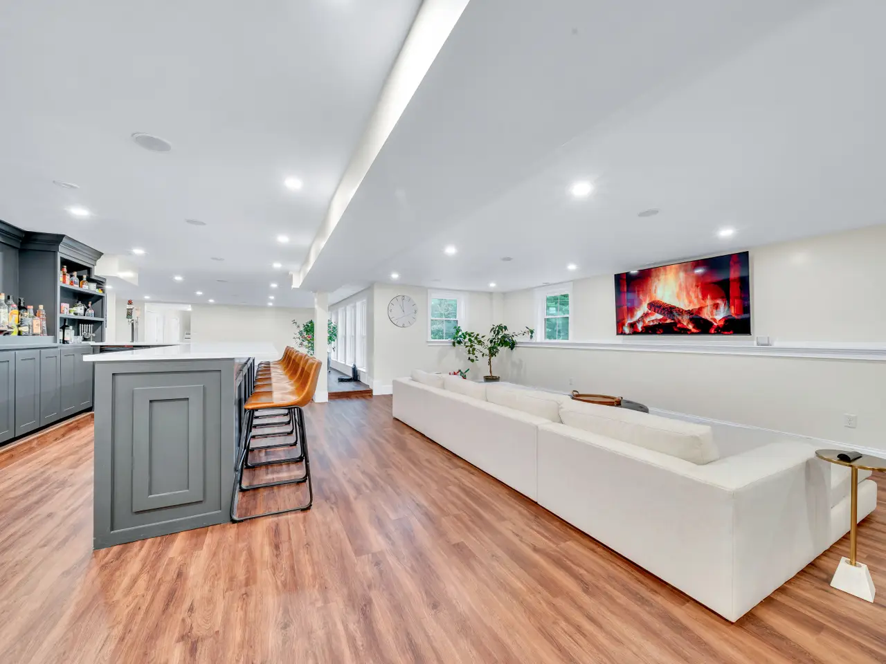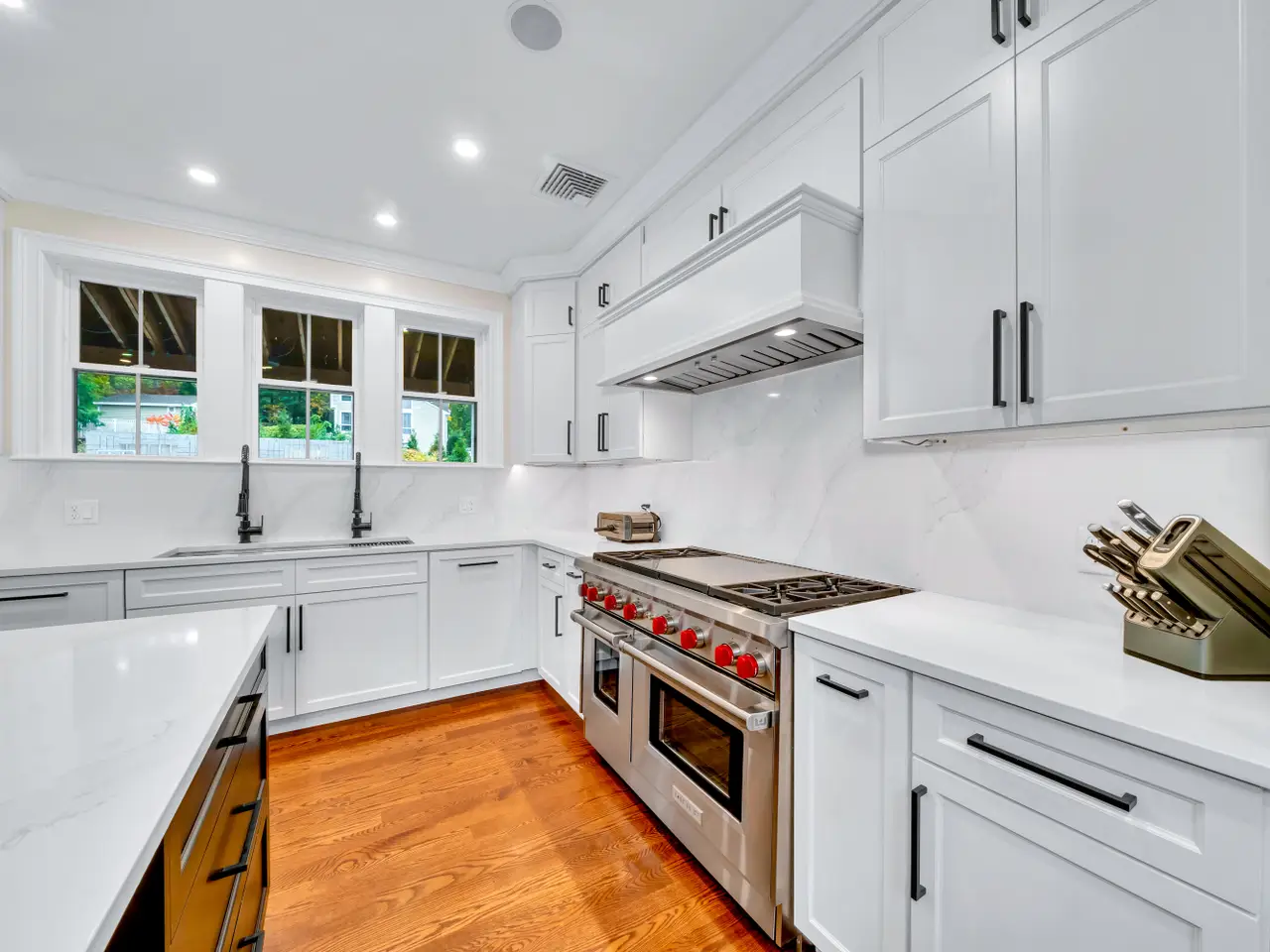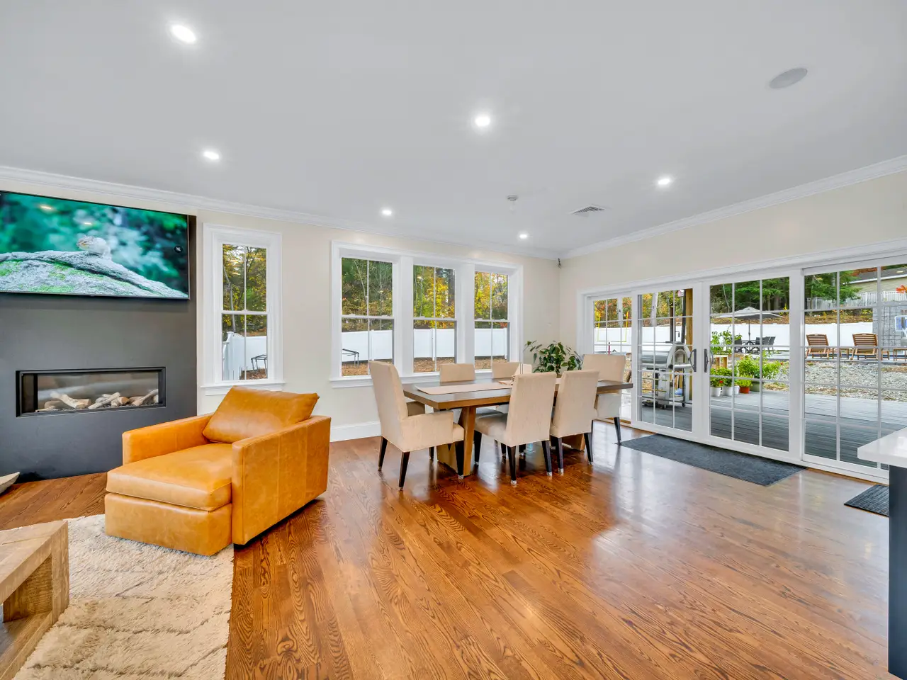 EXPERIENCE MODERN SOPHISTICATION IN THIS EXQUISITELY RENOVATED LYNNFIELD CONTEMPORARY! Set on nearly an acre, this 4-bedroom, 3 full & 2 half bath home offers over 5,200 sq. ft. of refined living space. The grand foyer opens to sun-filled rooms with hardwood floors, crown molding, and an inviting fireplaced living room that flows into the dining area and gourmet kitchen featuring custom cabinetry, quartz countertops, and premium Wolf appliances. The first-floor primary suite is a serene retreat with a spa-inspired bath, soaking tub, and double vanity. The finished lower level is perfect for entertaining with a wet bar, gym, and media room. Multiple washer and dryer hookups add flexibility for modern living. Outdoor highlights include an in-ground pool, patio, and deck for relaxation. Some exterior features, including the cabana and second garage, remain under construction. DON’T MISS THIS INCREDIBLE OPPORTUNITY TO OWN A LUXURY HOME IN LYNNFIELD! CHECK OUT THE BEFORE AND AFTER PHOTO!