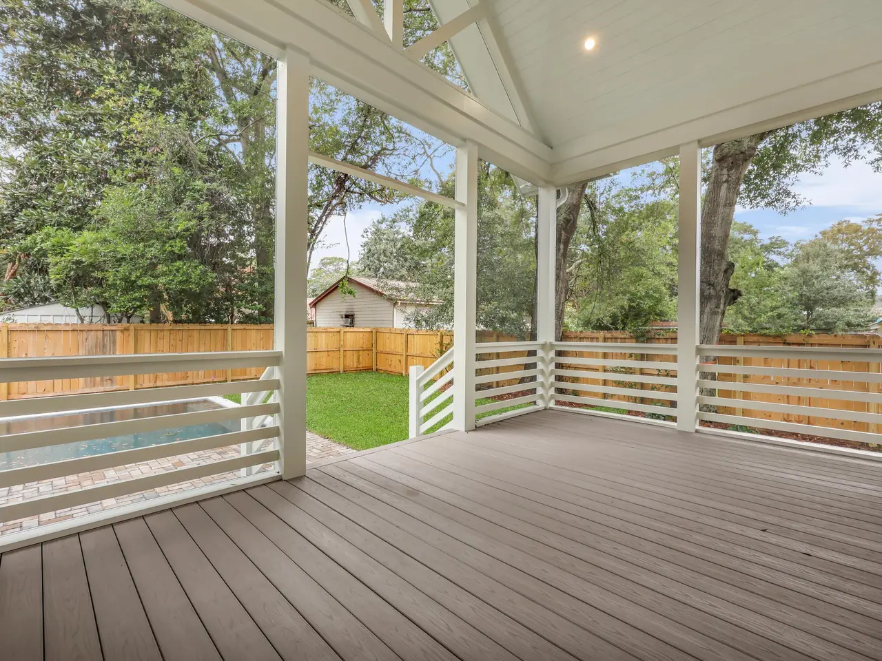 • Vaulted ceiling in primary suite with wood detailing