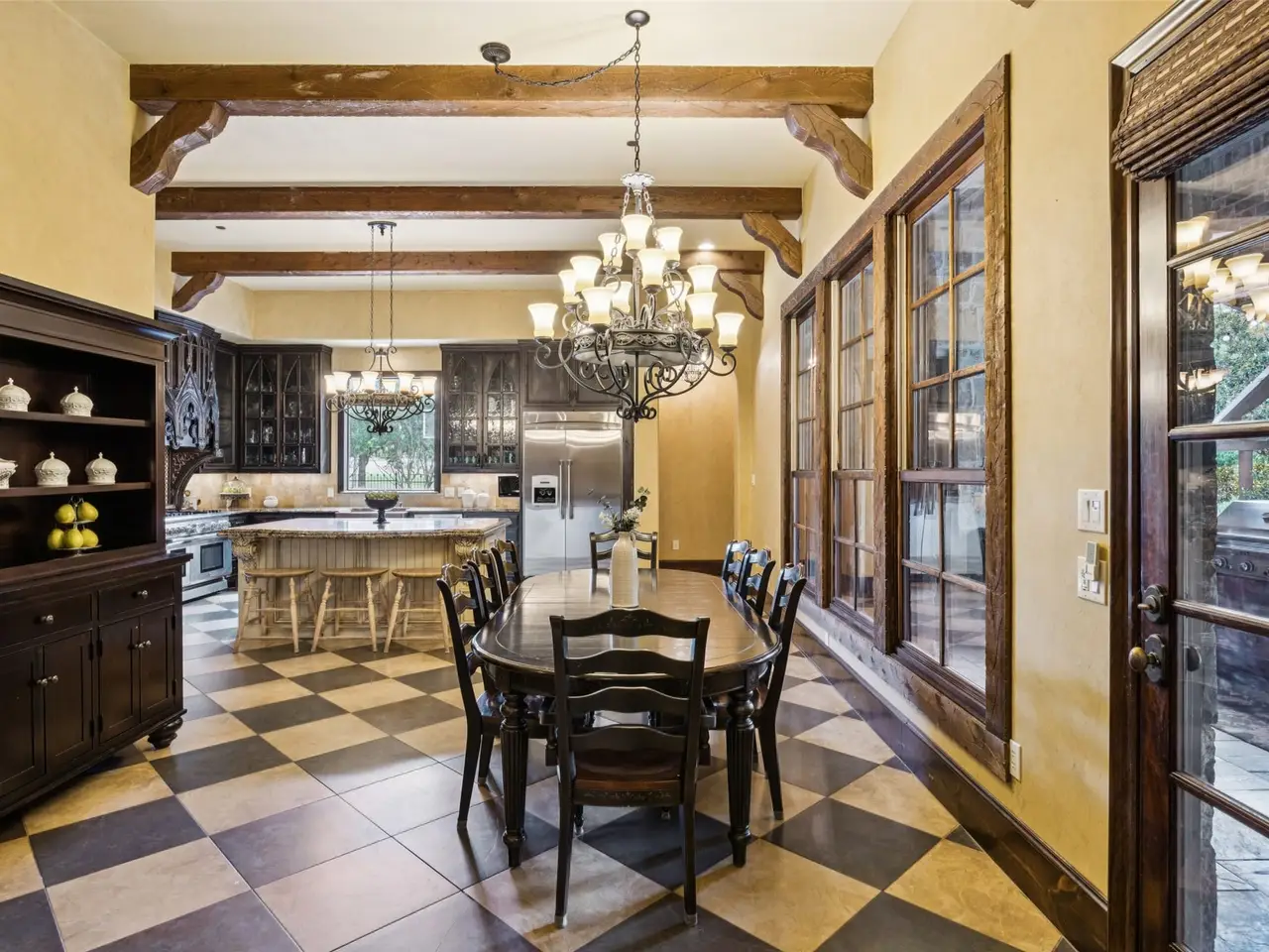 • Exposed wood beams