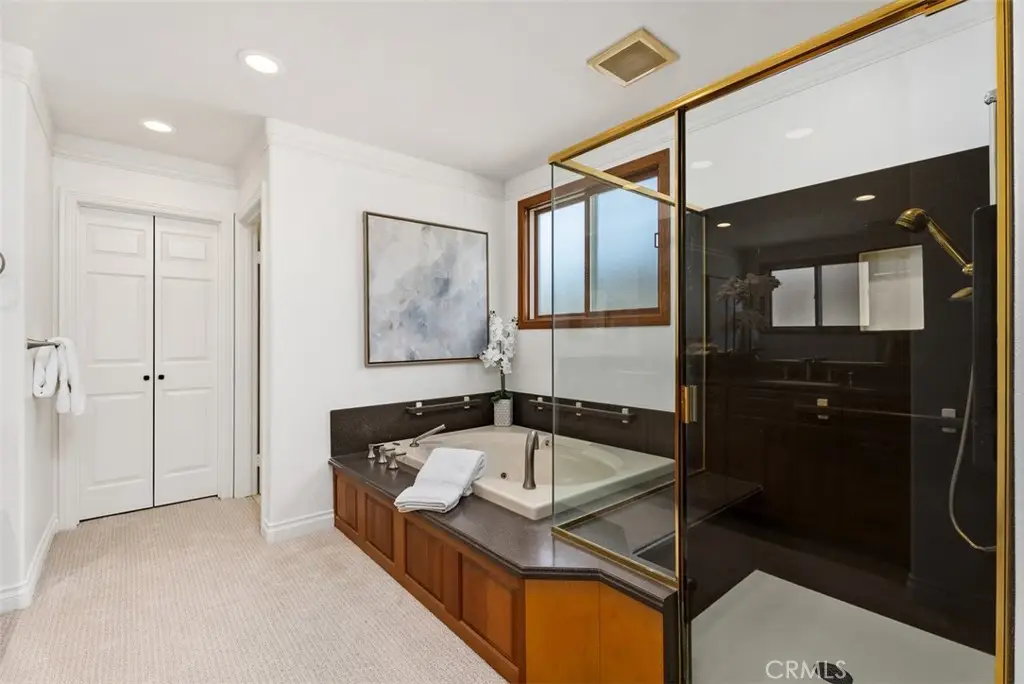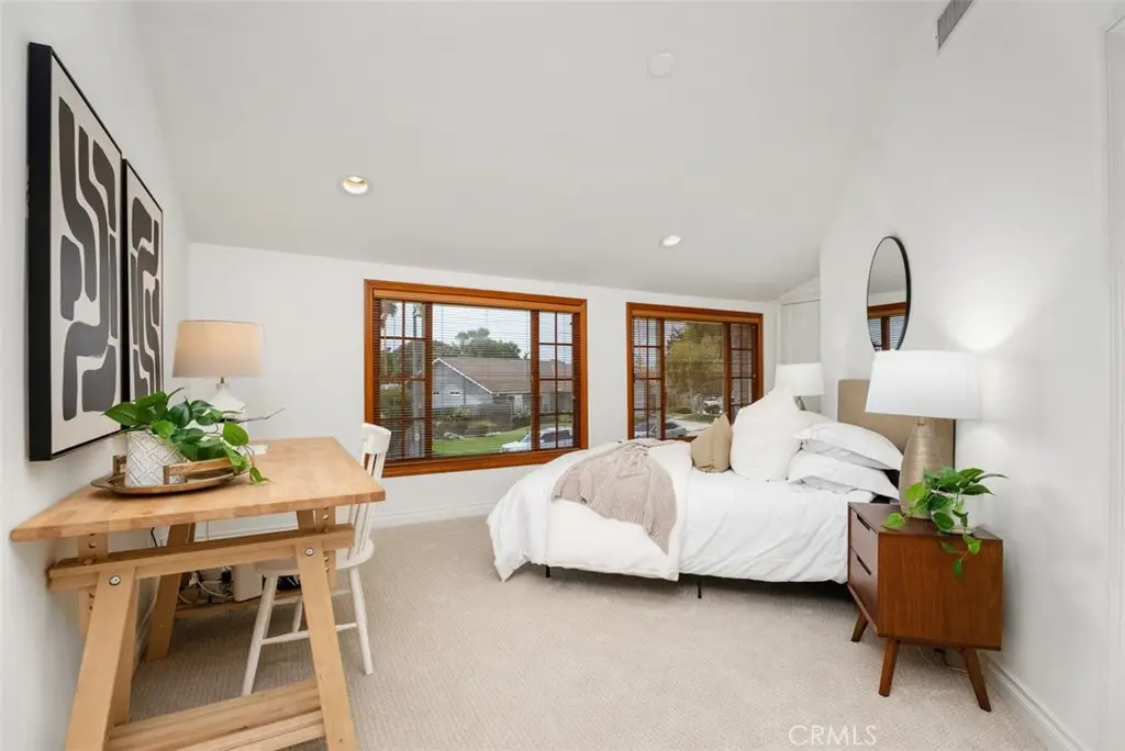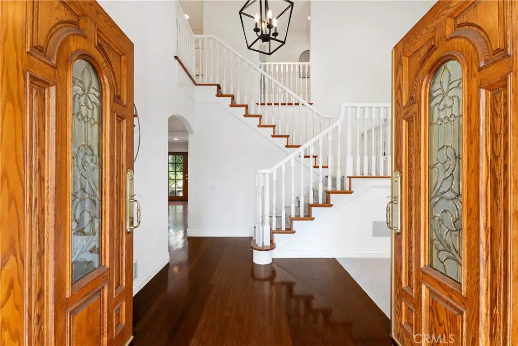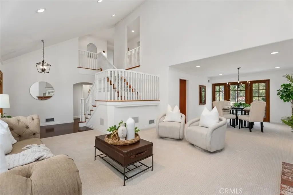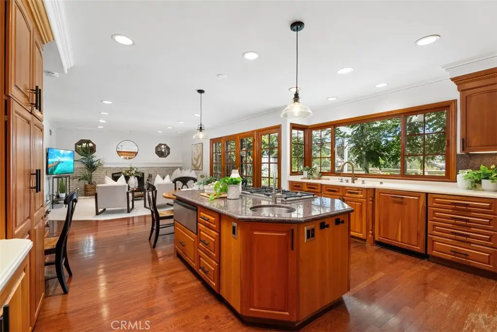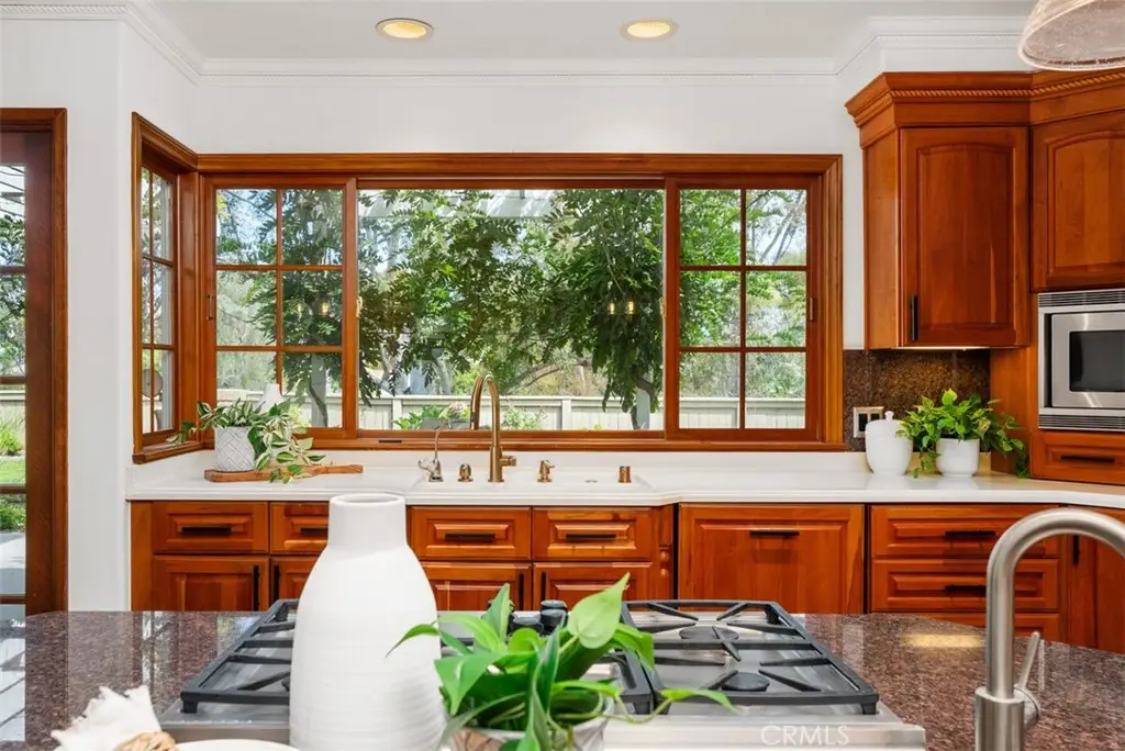Welcome to this beautifully maintained home in the highly desirable La Paz community of Mission Viejo! From the moment you arrive, you'll be impressed by the paver driveway and charming front courtyard that lead to a dramatic double-door entry. Inside, the spacious foyer, soaring ceilings, and elegant staircase set the tone for this light-filled and thoughtfully designed home. To the right, the formal living room features vaulted ceilings and a cozy fireplace, seamlessly flowing into the dining area with French doors that open to your private entertainer's backyard. The heart of the home is the chef's kitchen, an absolute dream with Omega custom cabinetry, a large island with prep sink, built-in gas cooktop, warming drawer, double ovens, built-in refrigerator, microwave, and dishwasher. A wall of cabinetry, small desk area, and attached breakfast nook/table provide abundant functionality. The kitchen overlooks the serene backyard and opens to the inviting family room with fireplace and additional French doors for indoor-outdoor living. Downstairs also includes a powder room and an incredible bonus storage room with more cabinet space and a large wine refrigerator, perfect for your bulk Costco storage. Upstairs, the expansive primary suite offers sweeping views of trees and mountains. The luxurious ensuite bath features a soaking tub, walk-in shower, private water closet, dual sink vanity, and a massive walk-in closet. Also upstairs, you'll find a beautifully designed laundry room with sink and ample cabinetry, making laundry tasks both convenient and organized. Three additional upstairs bedrooms include a Jack & Jill bedroom setup with a shared bathroom featuring a tub/shower combo and dual sink vanity, and a fourth bedroom with its own private ensuite bath with walk-in shower. Step outside to a peaceful backyard retreat with lush lawn, spacious patio with multiple seating areas, and beautiful views--ideal for entertaining or unwinding. Just a short walk to award-winning elementary, middle, and high schools, Montanoso Rec Center, Oso Creek Trail, Mission Viejo Library, Saddleback Lanes, Mission Viejo Farmer's Market, Trader Joe's, Yoga, Pilates, endless shopping, dining, and more! Enjoy the OPTION to join Lake Mission Viejo with boating, swimming, fishing, concerts & events. This impeccably maintained home offers the perfect blend of comfort, convenience, and California lifestyle. Welcome Home!