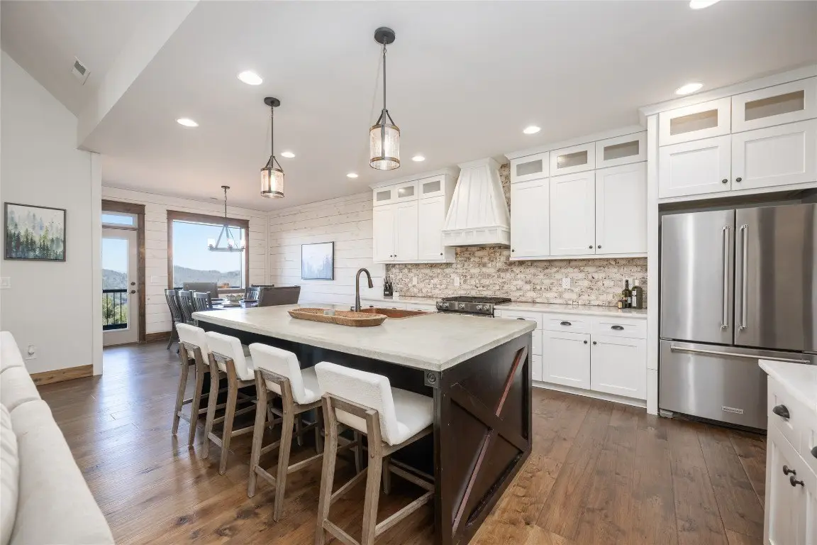 Discover the perfect blend of craftsmanship, comfort, and breathtaking mountain and lake vistas in this custom-built Arts and Crafts home, nestled within the gated community of Greycliff. Just a 15-minute scenic drive from the charming town of Cashiers, this home offers the serenity of mountain living with convenient access to Lake Glenville and a community boat dock. Situated at an elevation of 4,000 feet on about 1.37 acres, delight in cool temperatures and year-round natural beauty. Offered fully furnished with few exceptions, this meticulously maintained home is truly move-in ready to enjoy this season. With historically low inventory on the plateau, now is the time to secure a dream mountain retreat in a community experiencing exciting small-town charm and growth. Thoughtfully designed with high-quality materials, this home showcases timeless architectural elements, including cedar shakes, stone columns, and a welcoming entryway. 2024 updates include fresh interior and exterior paint, newly installed hardwood floors throughout, and stunning Cristallo Quartzite countertops in the spacious kitchen. The open-concept floor plan is perfect for entertaining and relaxation. The great room features a striking stone fireplace, soaring ceilings, and expansive windows that frame mesmerizing long-range mountain views. The well-appointed kitchen provides ample storage, a large walk-in pantry, and an inviting layout for culinary creations. The main level features a luxurious primary suite with a spa-like ensuite bathroom and private deck access - an ideal spot to wake up to breathtaking mountain scenery. A second main-level bedroom with an ensuite bathroom ensures comfort and privacy for guests. The lower level offers a generous family room, media and game area, and two additional bathrooms and bedrooms, one of which includes four built-in bunk beds. Above the spacious two-car garage, a large bonus room presents endless possibilities, whether as a home office or workout space - all while showcasing incredible long-range mountain views. Designed for embracing the great outdoors, this home features expansive decks on both the main and lower levels, complete with a fireplace, grilling area, and hot tub. Greycliff is vacation rental-friendly, offering excellent investment potential while maintaining a peaceful retreat. Ready to leave behind the heat and hustle of city life? This stunning mountain home provides the perfect sanctuary.
