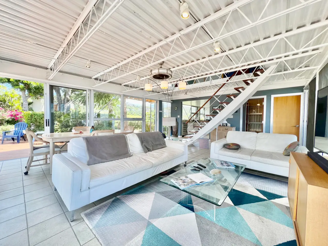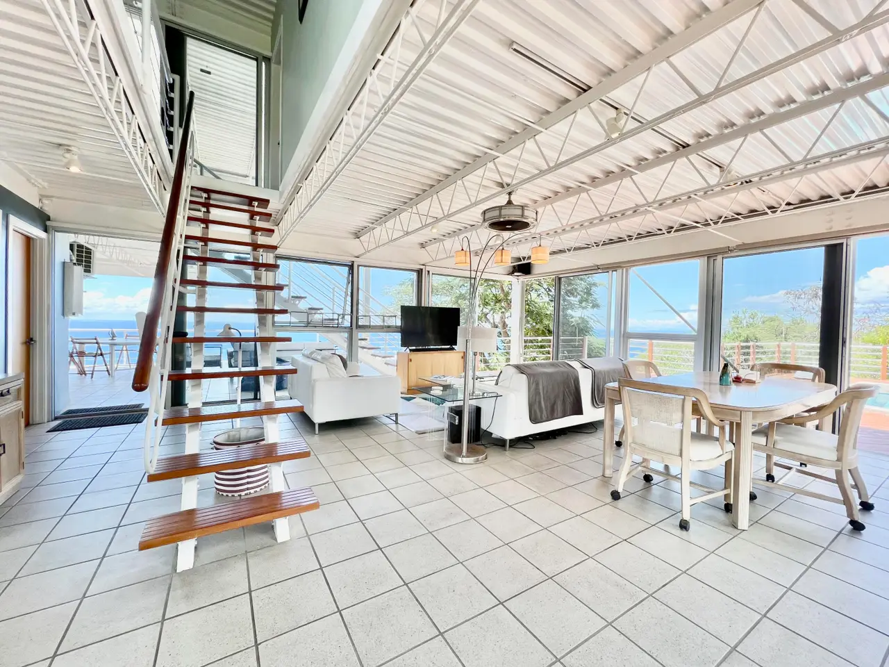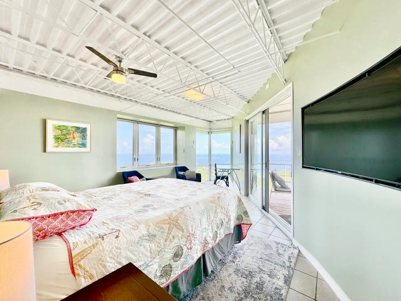 Sandbank is a beautiful contemporary architectural 5-Bedrooms 4-Baths home that sits on a 1.04 acre hilltop corner lot overlooking the Caribbean Sea with wide ocean views going from St James Island all the way to Puerto Rico. The main house is a 4 bed 3 baths (1 bedroom currently used as an office), and a 1 bed 1 bath apt. with its own driveway. Focusing on steel frame and glass, the home was designed by William Lane, architect of many landmarks in Florida, including the Miami Beach iconic Life Guard Towers. The property has an amazing covered deck with mesmerizing views and a large uncovered outdoor space with a nice size swimming pool and outdoor shower. Equipped with Solar panels, 2 Tesla batteries and a generator. Truly a one of a kind and perfect for family use or investment property