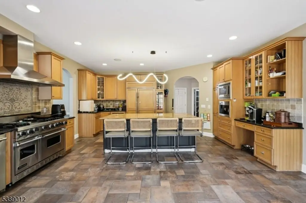 Welcome to this beautifully maintained 4,000 sq ft Colonial featuring 4 bedrooms and 3.5 bathrooms, ideally set on a large lot in one of Wayne's most desirable communities. The grand two-story foyer introduces an elegant yet inviting home, leading into the sophisticated living room with oversized windows and a striking stone fireplace perfect for relaxed evenings, lively conversation, or playtime. Flowing seamlessly from the living room, the chef's kitchen is a true centerpiece with custom cabinetry, marble countertops, high-end stainless steel appliances, a walk-in pantry, and a spacious island with seating. Sliding glass doors open to the patio, creating an effortless transition for al fresco dining and outdoor entertaining. From the kitchen, the elegant dining room offers an intimate yet refined setting for dinner parties or holiday gatherings, while the adjacent home office provides a quiet retreat for work or study. Upstairs, the luxurious primary suite boasts vaulted ceilings, fireplace, sitting area, walk-in closet, and spa-like en suite bathroom. Three additional bedrooms, convenient laundry room and 2 full bathroom complete the second floor. The full basement with 9' ceilings and bathroom hook-up offers endless potential for expanded living space. Outdoors, a large patio and spacious yard set the stage for gatherings, recreation, and lasting memories. Two-car garage and ample driveway parking. This exceptional residence blends timeless design and modern updates.