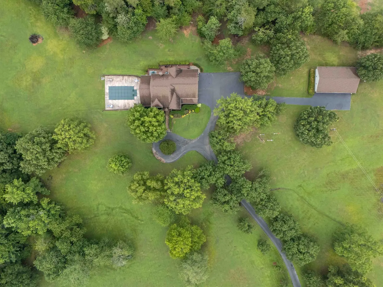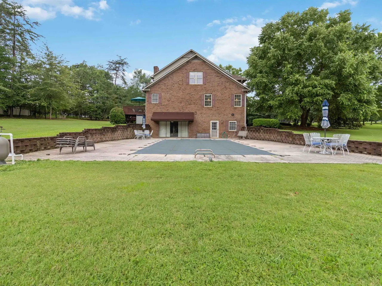 Nestled on 10+ scenic acres in desirable Clover, this stunning 3-level home offers space, comfort, and flexibility. The main-level primary suite boasts a spa-like bath with a soaking tub, dual vanities, and 2 walk-in closets. The gourmet kitchen features an island, breakfast bar, ample cabinetry, and a bay-window breakfast area. A two-story great room with exposed beams and a brick fireplace exudes charm, complemented by a formal dining room and office/study. Upstairs offers 5 bedrooms and 3 full baths. The fully finished walk-out basement includes a full kitchen, living/recreation area with brick fireplace, bedroom, and storage - ideal for guests or multi-gen living. Enjoy a private outdoor oasis with a large deck, in-ground pool, and spacious patio area around the pool. There are also attached and detached 3-car garages (shop has a half bath). No HOA, Clover schools, and close to Lake Wylie - true Carolina living at its finest!
