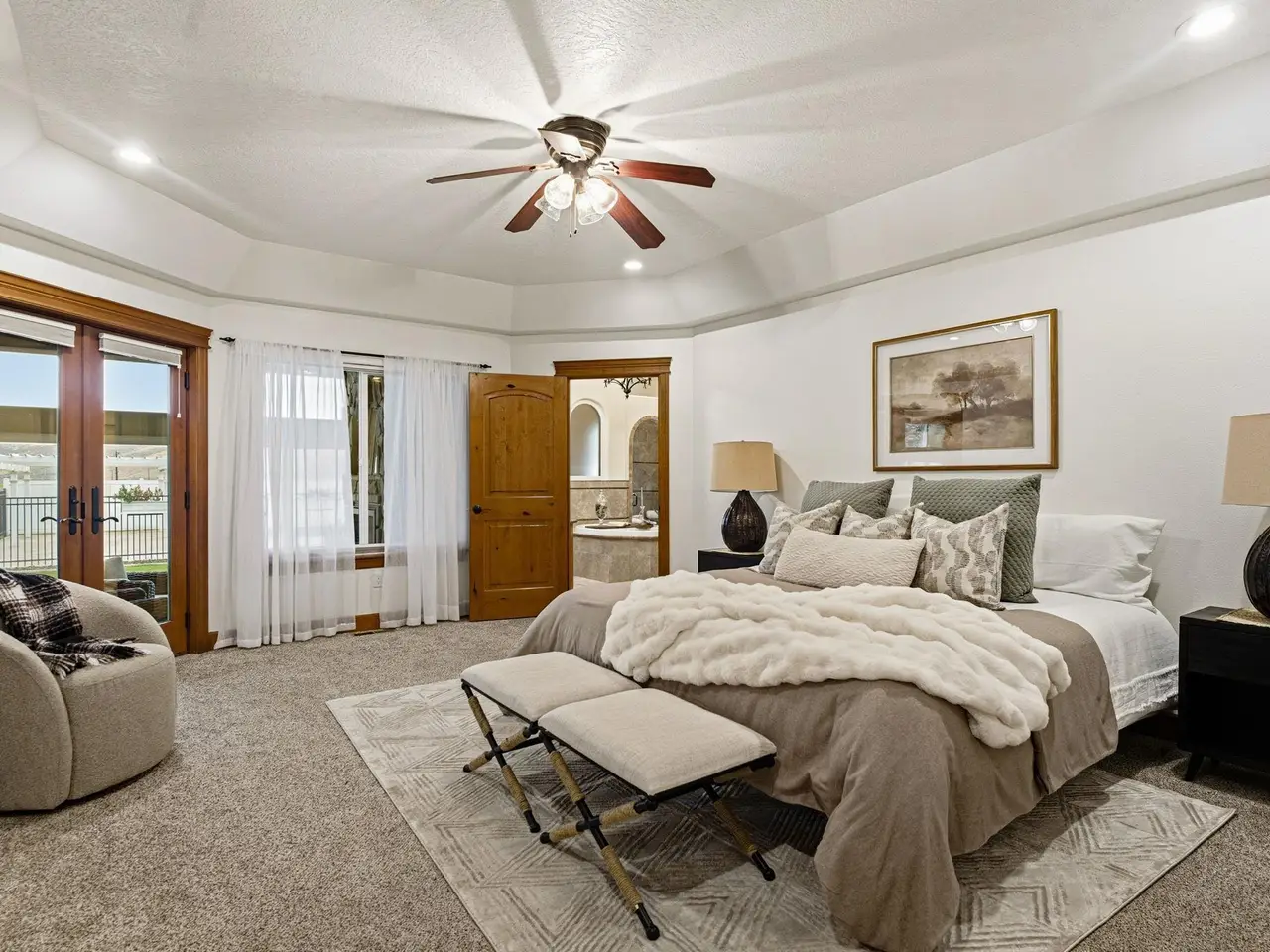 MLS# 288536 Welcome to this Country Estate in Exclusive Sunrise Canyon, a serene 5-acre retreat that blends timeless craftsmanship with resort-style amenities. The custom 5,382 sq. ft. home makes a grand impression with a sweeping staircase and formal living with dramatic full-stone fireplace. An updated kitchen with brick accents opens to a warm family room, while the main-floor primary suite offers a spa-inspired bath, his and hers closets, and its own private laundry. Upon entry, you'll find double his-and-hers offices and a formal dining room, while the separate east wing of the main floor features four additional spacious bedrooms with two Jack-and-Jill baths. Upstairs, a loft with coffered ceilings overlooks the living area, complemented by an additional en-suite bedroom and a large bonus room with Juliet balcony. Outdoor living is elevated with a climatized sunroom and custom fireplace, plus a backyard designed for year-round enjoyment--featuring a hot tub, heated pool with automatic cover, firepit, lighted sport court, garden, and enclosed pastures. A spacious shop with roll-up door, full bathroom, and climatized upper bonus area offers the perfect space for hobbies, fitness, or a studio, while the RV bay and car lift are ideal for enthusiasts. Peaceful, private, and luxurious, this Sunrise Canyon estate is truly one of a kind.