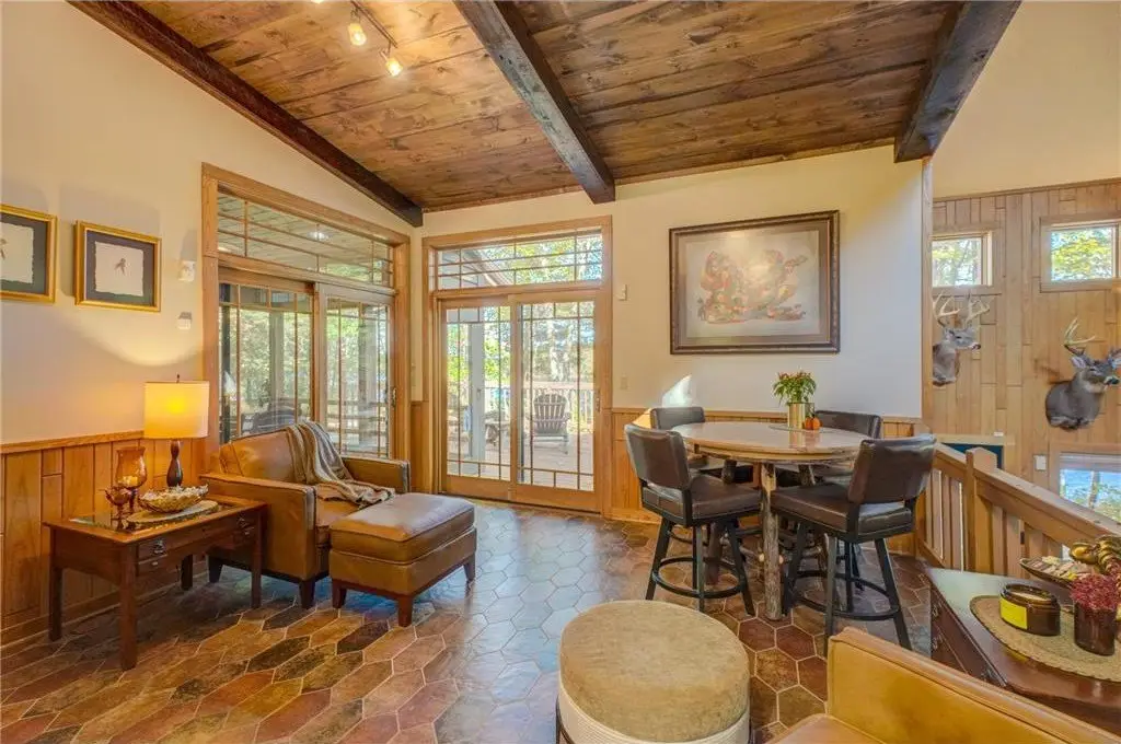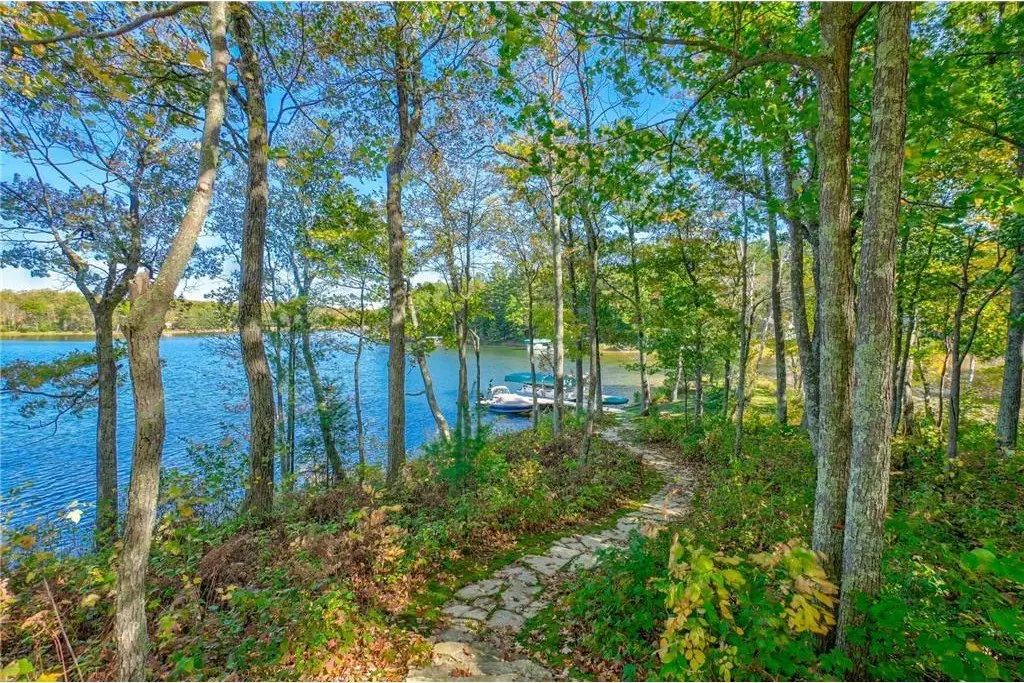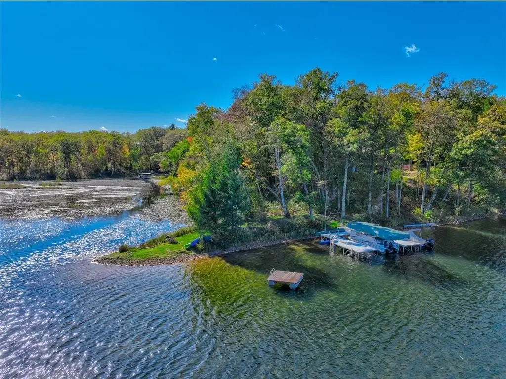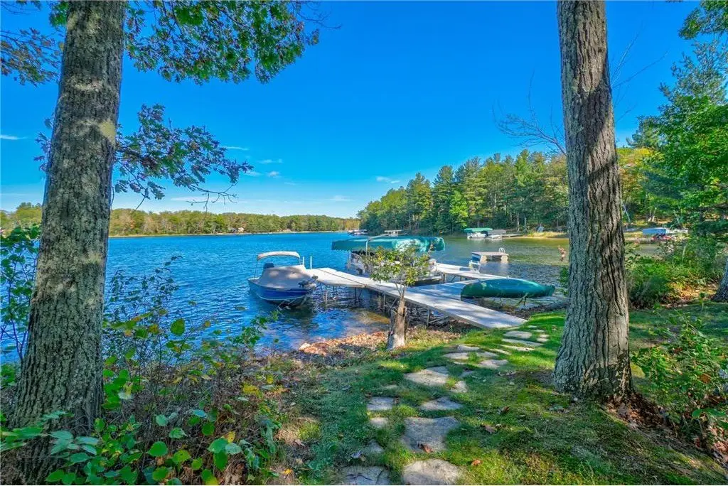 Little Round Lake – Peninsula Setting with Buildable Lot! Tucked among mature trees on 1.91 acres with approximately 775 feet of total frontage on this crystal-clear lake, this distinctive property was thoughtfully designed to take advantage of its point-lot setting. The home offers panoramic views of 179-acre Little Round Lake and has convenient nearby access to 3,294-acre Round Lake. The property showcases a quiet sandy peninsula and a wildlife-filled bay—offering a blend of privacy, natural beauty, and easy access to Hayward’s dining, shopping, and recreation. The 3BR/3.5BA lake home radiates warmth and character, highlighted by vaulted wood-beam ceilings, a dramatic stone fireplace, and walls of windows framing sparkling lake views. The renovated kitchen features custom cabinetry, granite countertops, and new appliances—including a handcrafted Bluestar gas range and ventilation hood. You’ll love the cozy banquette area or den area adjoining the kitchen leading to a screened porch. The expansive great room showcases fine craftsmanship and a welcoming lodge-style ambiance with a wood-burning FP, lakeside dining area, and generous space for entertaining. The master bath remodel is underway to include a large tiled shower, 2 sink vanity with quartz countertops, and wall of storage cabinets (see attached info). Remodeled laundry/storage rooms. Stay comfortable year round with in-floor heat, central A/C. Outdoor living features extensive lakeside decks and a screened porch. Follow the stone path to the shoreline where 240 feet of sandy frontage on the shore and peninsula invites swimming and lakeside relaxation. Or walk along the natural path on the bay side for a different view. Adjacent 0.72-acre buildable lot provides flexibility for additional garage or a home with frontage on the bay. Detached 3 car garage and a playhouse. New shingles on home and garage in 2023. This home is rich in character, move-in ready, and beautifully updated for years of enjoyment ahead.