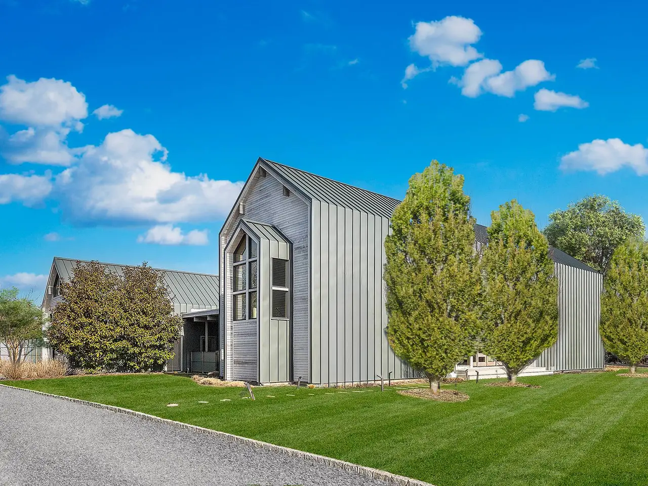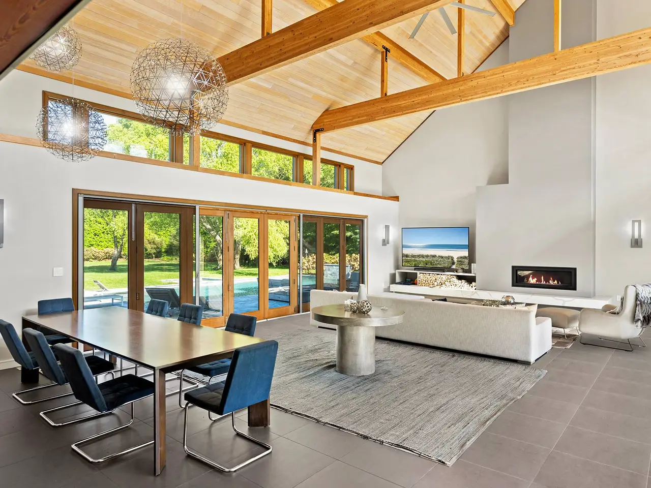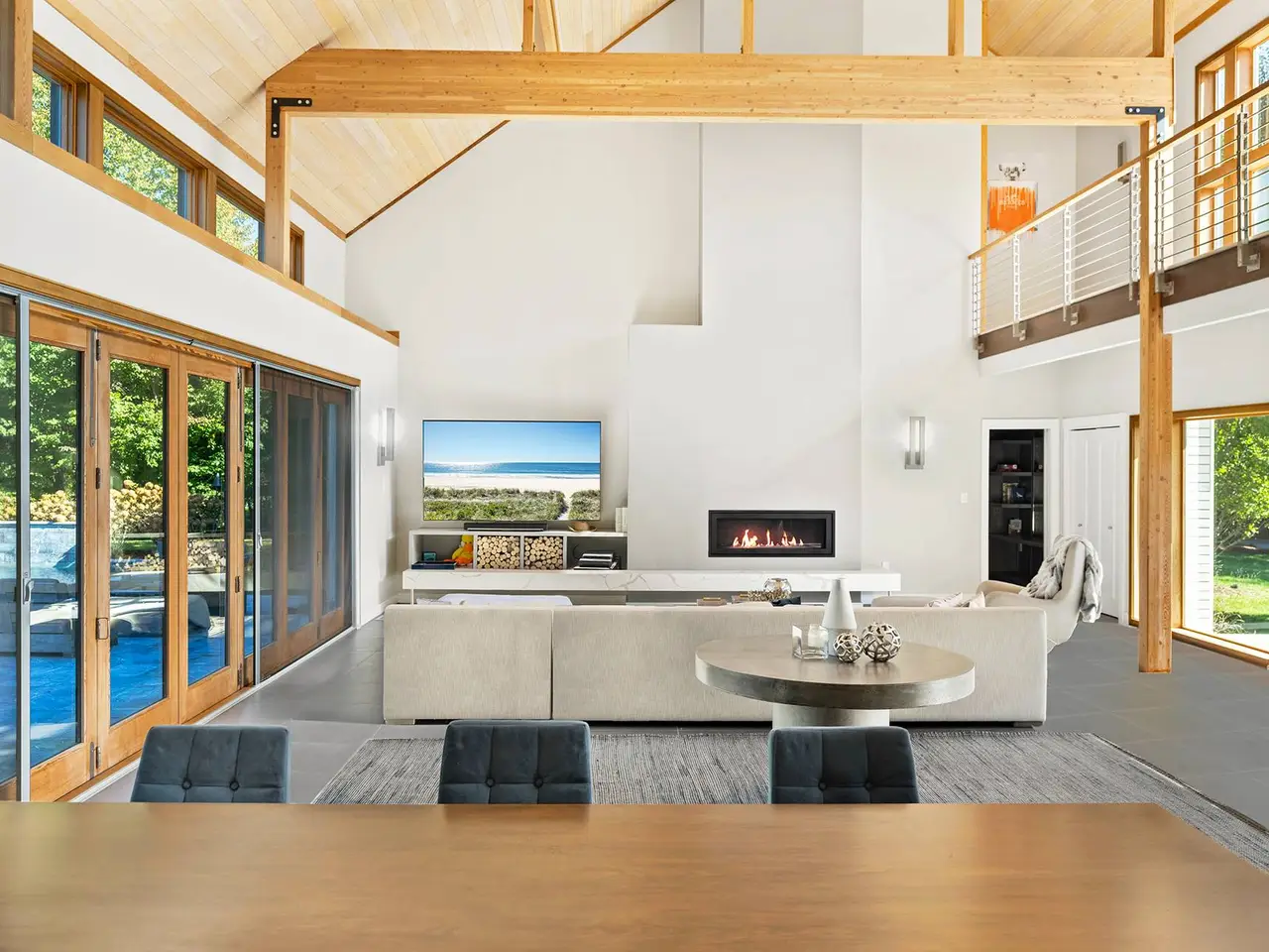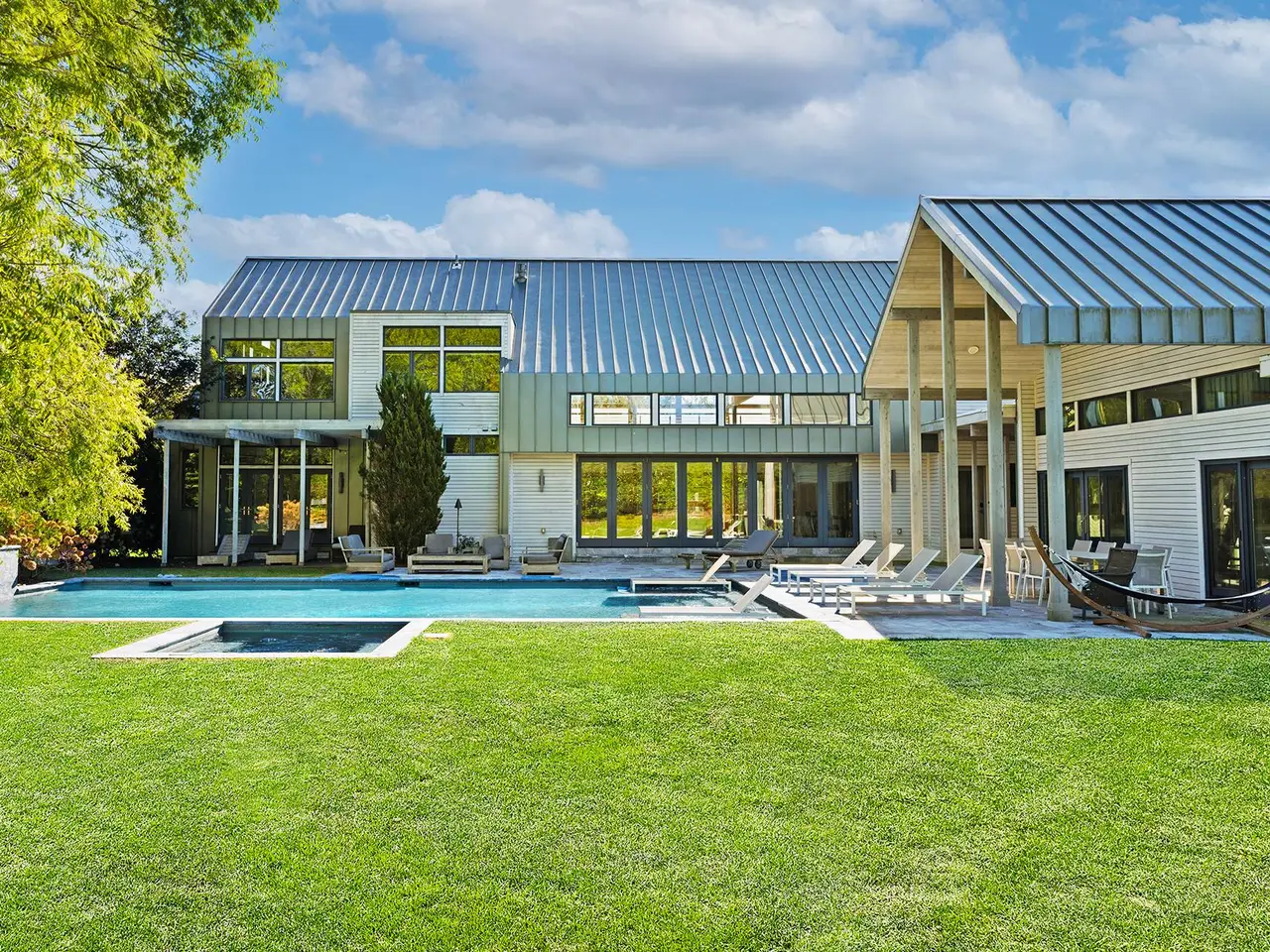 Enter into timeless sophistication with this Modern Barn - a striking architectural statement set on 1.2+/- acres of lush, manicured grounds in the prestigious Water Mill South. Perfectly positioned moments from world-class ocean beaches and village amenities, this Hamptons retreat offers 4 bedrooms, 4.5 bathrooms. Sleek, high-end appliances, generous prep space, and refined finishes make this kitchen a culinary centerpiece. Floor-to-ceiling Nano glass doors frame the heart of the home, creating expansive indoor-outdoor living space; Great for entertaining! Outdoors, a heated gunite pool with cascading waterfalls and a spa invites relaxation beneath the Hamptons sky. The primary suite serves as a private sanctuary, complete with a dedicated office. Upstairs, a sunlit lounge offers a sophisticated setting for leisure or entertaining, flanked by three luxurious ensuite bedrooms. The accessory structure enhances the property's appeal, featuring a cozy studio, an upper loft area, full bath, and inviting family room, connected to the 2-car garage. The unfinished lower level has potential for spacious overflow space, including a gym, a media room and 2 additional bonus rooms. Thoughtfully curated in modern design, this South of the Highway residence embodies Hampton's Luxury.