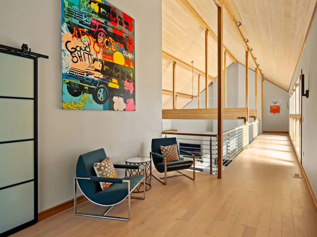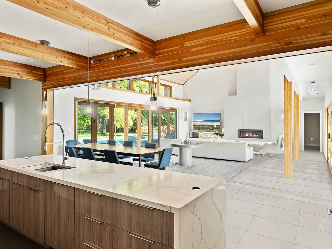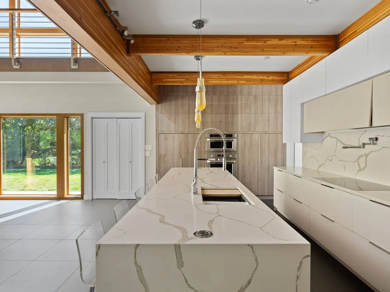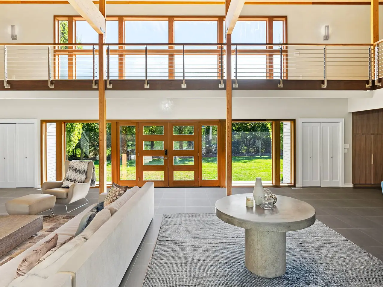 Enter into timeless sophistication with this Modern Barn - a striking architectural statement set on 1.2+/- acres of lush, manicured grounds in the prestigious Water Mill South. Perfectly positioned moments from world-class ocean beaches and village amenities, this Hamptons retreat offers 4 bedrooms, 4.5 bathrooms. Sleek, high-end appliances, generous prep space, and refined finishes make this kitchen a culinary centerpiece. Floor-to-ceiling Nano glass doors frame the heart of the home, creating expansive indoor-outdoor living space; Great for entertaining! Outdoors, a heated gunite pool with cascading waterfalls and a spa invites relaxation beneath the Hamptons sky. The primary suite serves as a private sanctuary, complete with a dedicated office. Upstairs, a sunlit lounge offers a sophisticated setting for leisure or entertaining, flanked by three luxurious ensuite bedrooms. The accessory structure enhances the property's appeal, featuring a cozy studio, an upper loft area, full bath, and inviting family room, connected to the 2-car garage. The unfinished lower level has potential for spacious overflow space, including a gym, a media room and 2 additional bonus rooms. Thoughtfully curated in modern design, this South of the Highway residence embodies Hampton's Luxury.