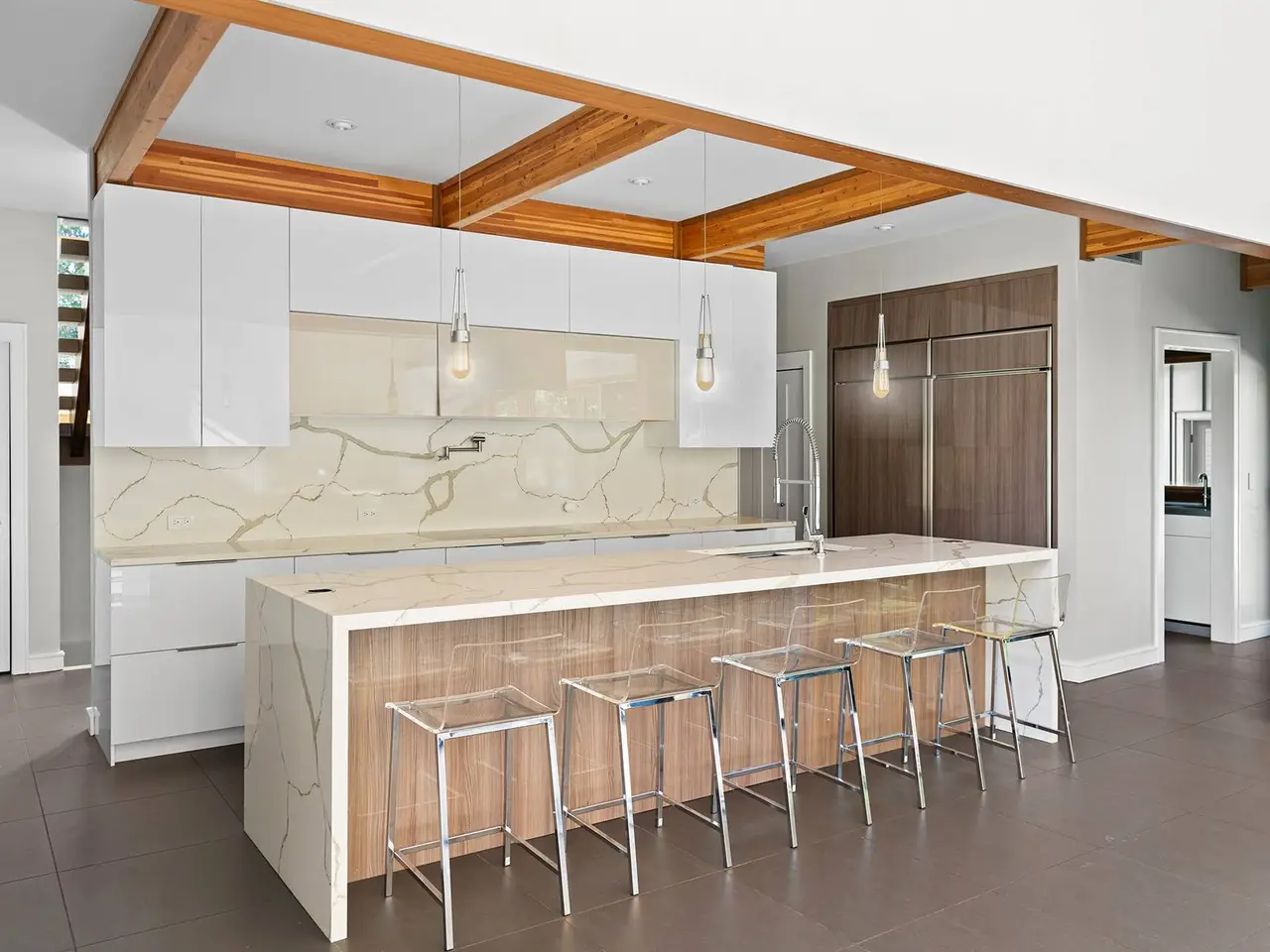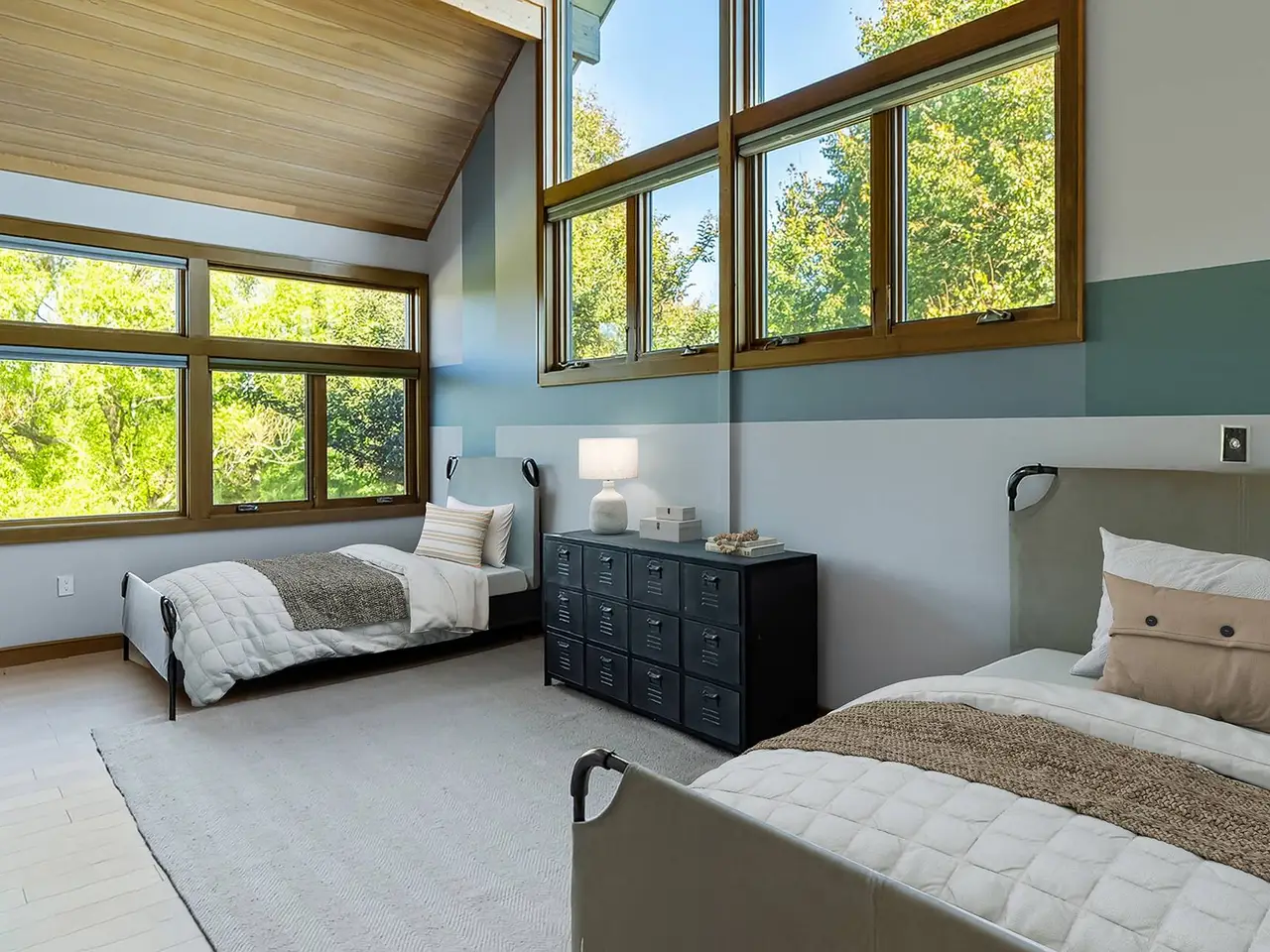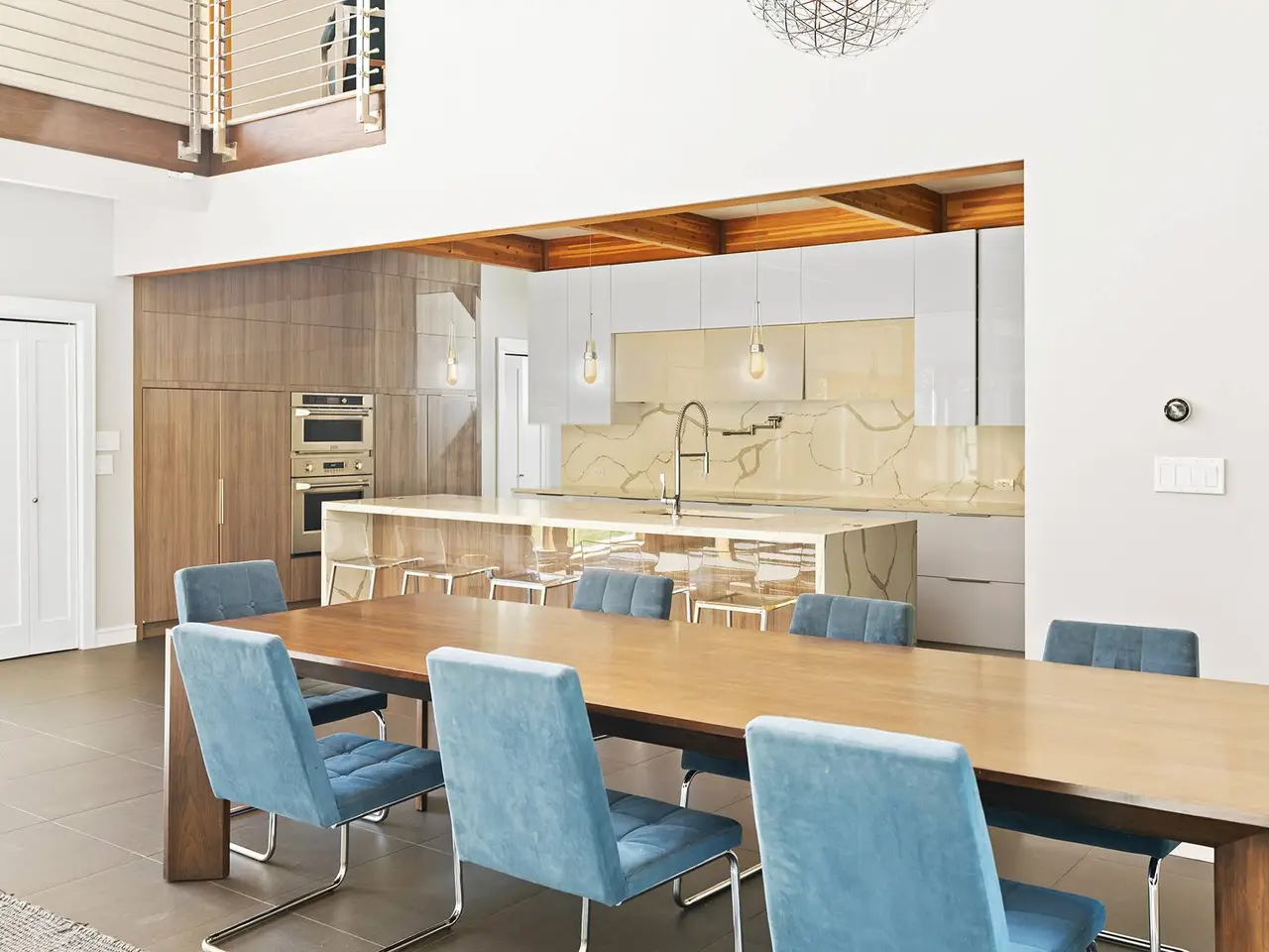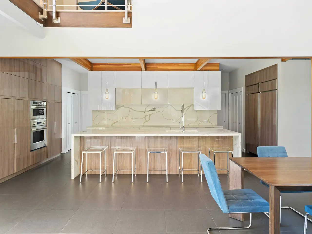 Enter into timeless sophistication with this Modern Barn - a striking architectural statement set on 1.2+/- acres of lush, manicured grounds in the prestigious Water Mill South. Perfectly positioned moments from world-class ocean beaches and village amenities, this Hamptons retreat offers 4 bedrooms, 4.5 bathrooms. Sleek, high-end appliances, generous prep space, and refined finishes make this kitchen a culinary centerpiece. Floor-to-ceiling Nano glass doors frame the heart of the home, creating expansive indoor-outdoor living space; Great for entertaining! Outdoors, a heated gunite pool with cascading waterfalls and a spa invites relaxation beneath the Hamptons sky. The primary suite serves as a private sanctuary, complete with a dedicated office. Upstairs, a sunlit lounge offers a sophisticated setting for leisure or entertaining, flanked by three luxurious ensuite bedrooms. The accessory structure enhances the property's appeal, featuring a cozy studio, an upper loft area, full bath, and inviting family room, connected to the 2-car garage. The unfinished lower level has potential for spacious overflow space, including a gym, a media room and 2 additional bonus rooms. Thoughtfully curated in modern design, this South of the Highway residence embodies Hampton's Luxury.