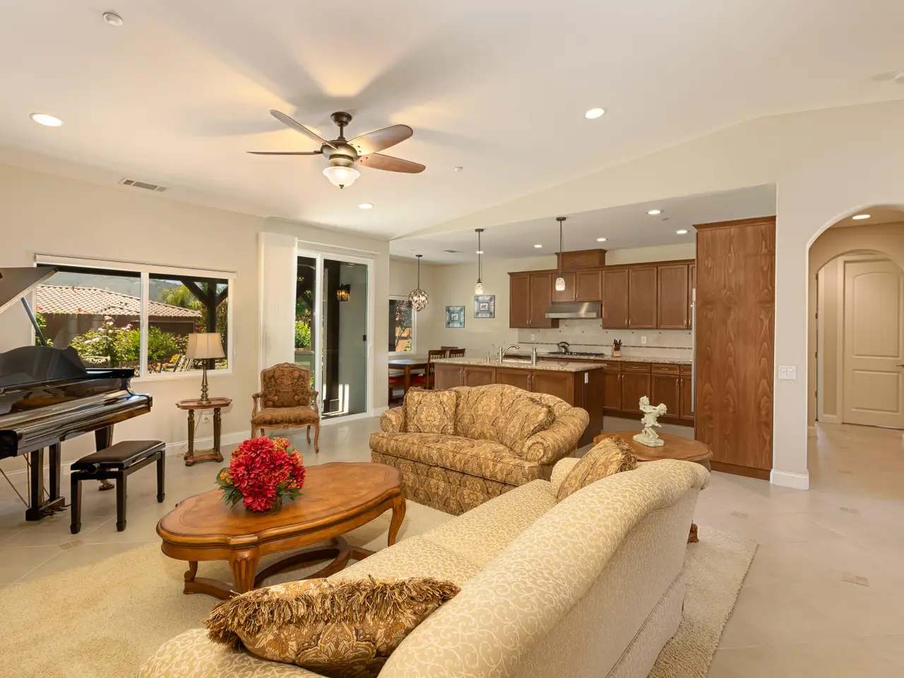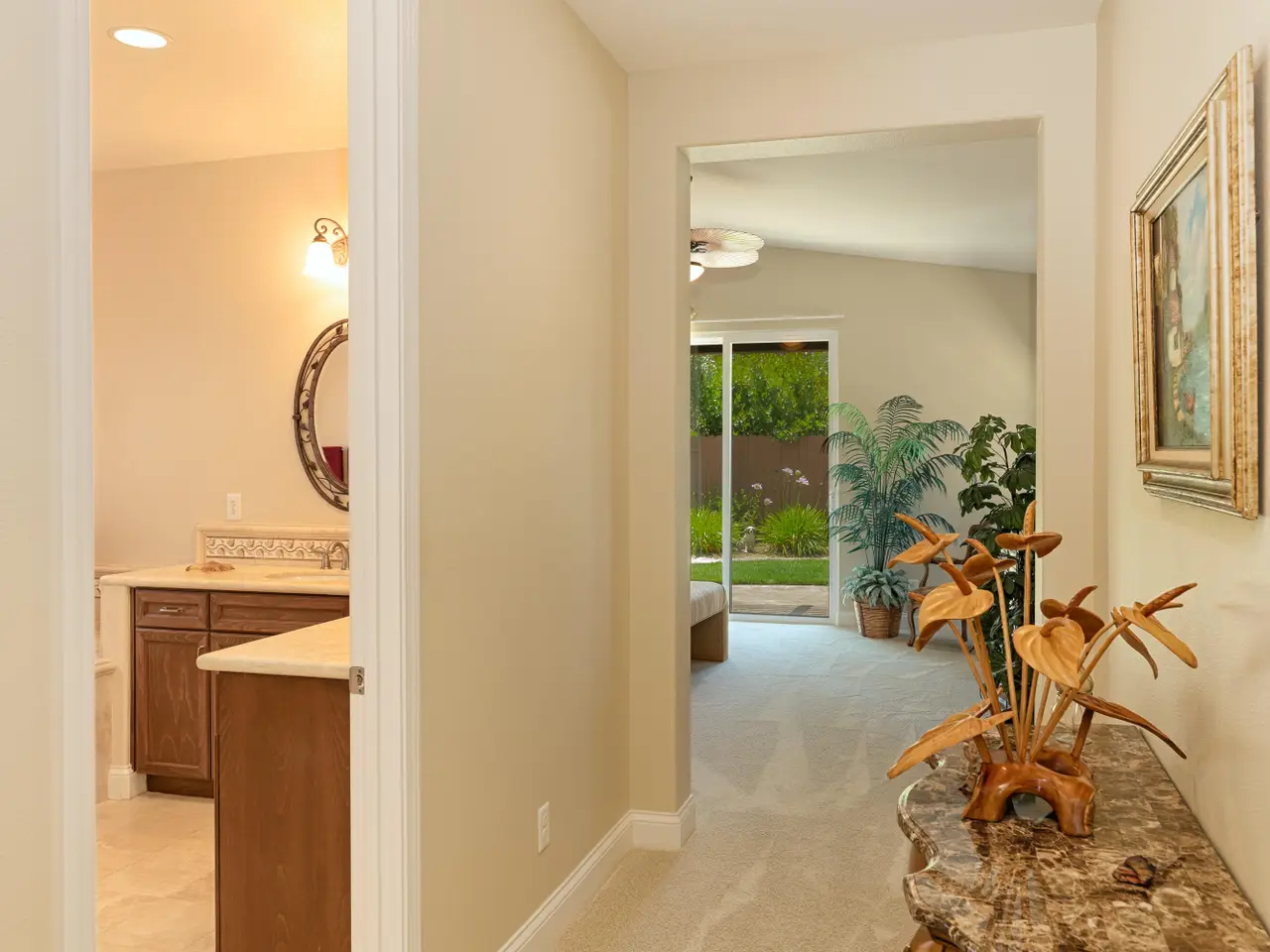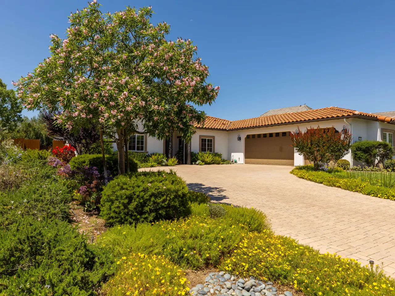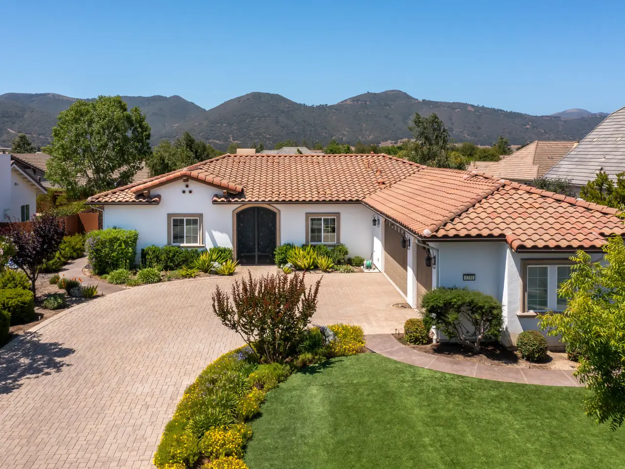 Centrally located within the Santa Ynez Valley is this meticulously maintained 4 bed/3.5 bath air conditioned Skytt Mesa home. Custom iron gates guide you to oversized entry doors that lead to an inviting open floor plan with vaulted ceilings and tile floors. Hobby chef or not, you'll love the kitchen with its island, granite countertops, stainless steel appliances and breakfast nook. Primary suite sits behind double doors and has a vaulted ceiling and a south facing sliding glass door. Dual vanities, soaking tub, frameless glass shower and walk-in closet make up the primary bath. Plenty of room for family or guests with one other ensuite bedroom plus two more that share a hall bath. Paver driveway and professionally landscaped yards compliment the home. Enjoy the soothing backyard with peeks of the mountains from your oversized patio with pergola, amongst lush lawn, colorful flowering plants and shrubs, fruit trees, stone bench and meandering concrete walkways that circle the entire home. Perfect as your full or part-time residence in wine country. Annual assessment for Landscape and Lighting Maintenance billed with property taxes approx. 1400 dollars/year