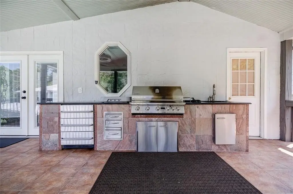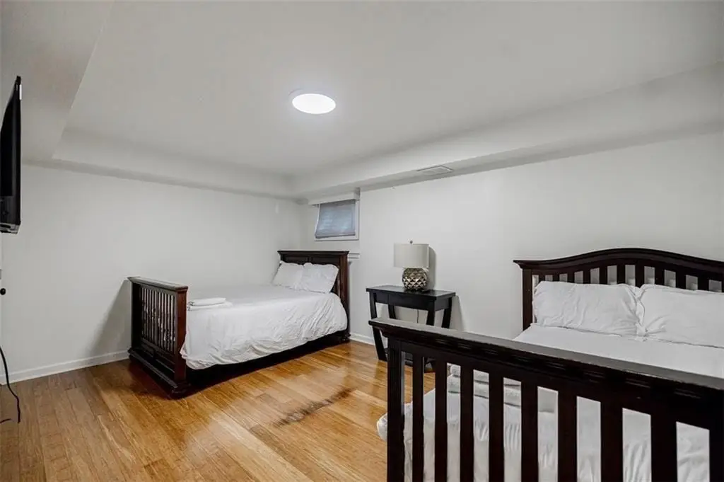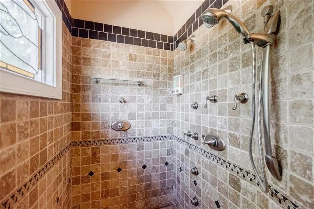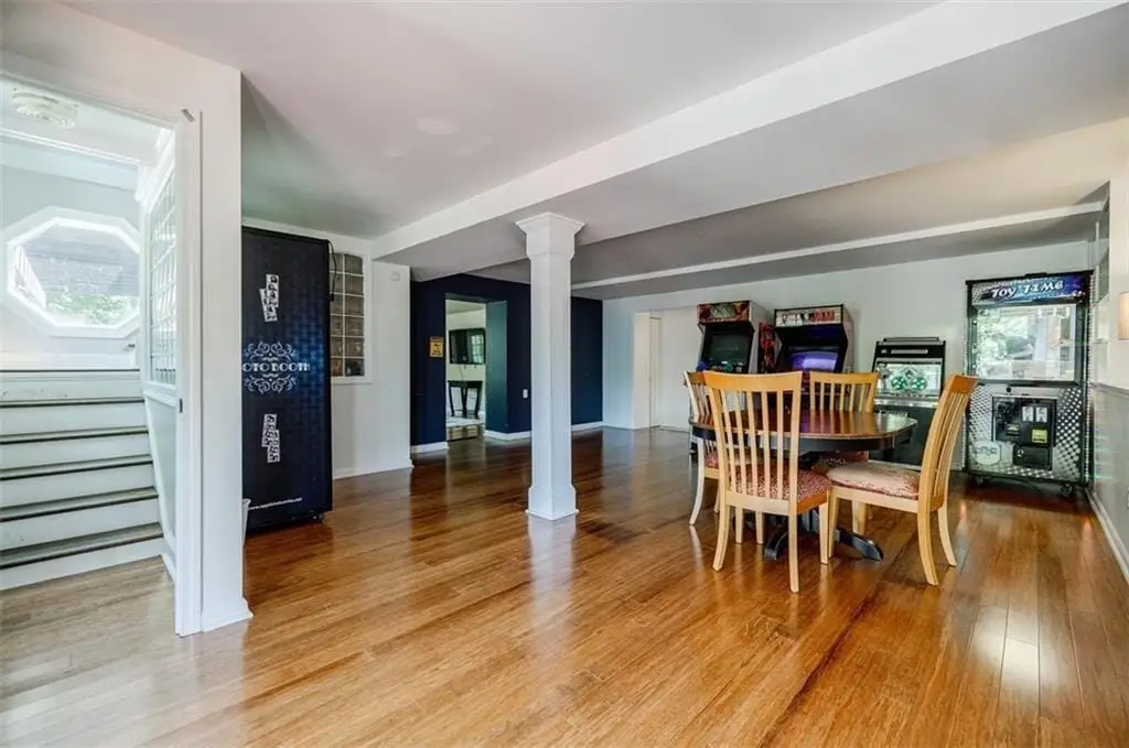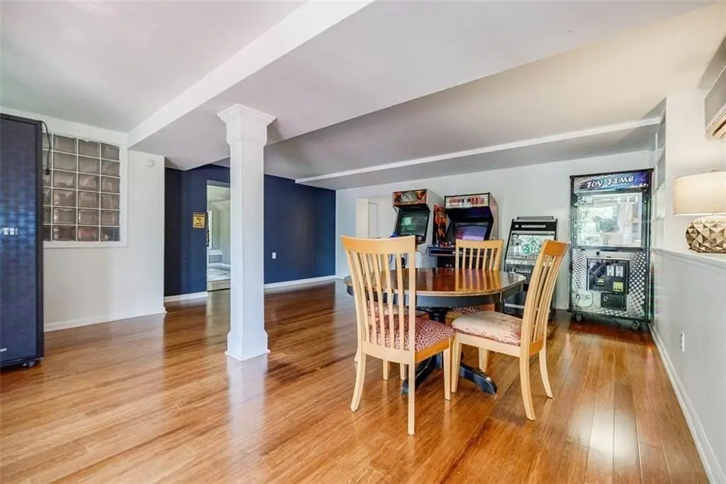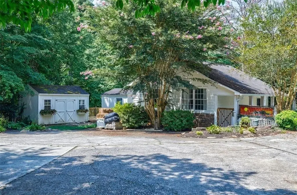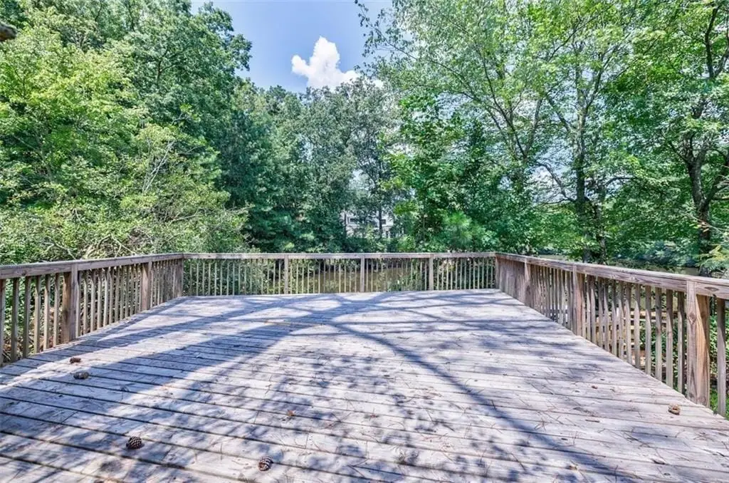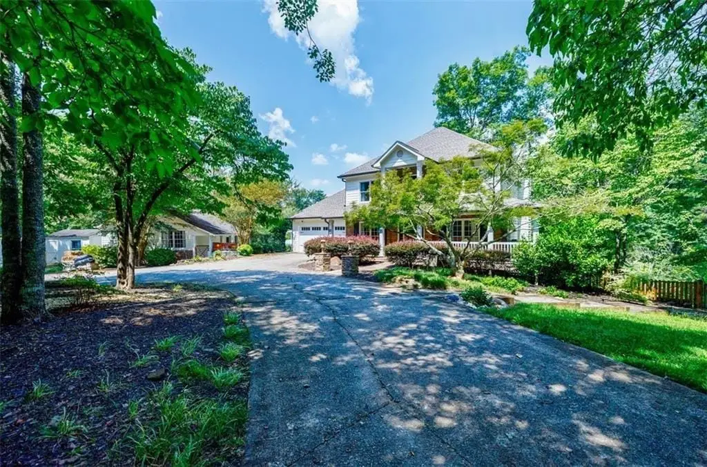 This beautiful home on a cul-de-sac with a guest house on 3.5 private wooded acres, has an in-ground swimming pool with waterfall, overlooking a private shared lake with boat dock. You can lounge on the many decks overlooking the lake, relax in the Hot Tub in the covered pavilion, walk through the landscaped grounds or enjoy time around the outdoor fire area. Outdoor kitchen joins half bath and changing room. The main is house has five bedrooms and three full baths and two half baths. Main house has hardwood floors. The updated kitchen opens to a large den and living room with views of the lake. The finished basement includes living room, game room, 1 bedroom, full bath and flex room. Upstairs is the master bedroom with joining office/den plus two bedrooms, one with coffee bar., and full bath.The guest house has 3 bedrooms 2 full baths and separate parking. Great for guest or rental income. Two storage units,. Lots of space for outdoor garden! Conveniently located near Lakepoint Sports Complex for the active athlete.