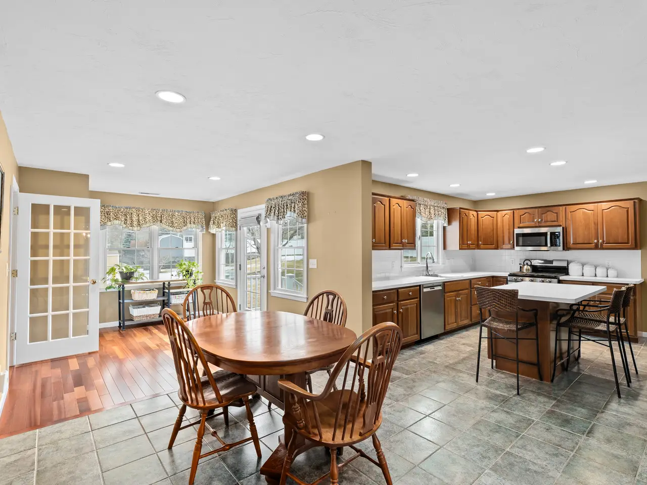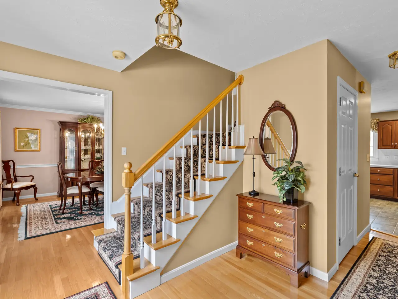 This stunning home is situated on a beautiful level lot. The kitchen boasts cherry cabinets, a large center island, and dining alcove. Perfect for entertaining, the family room includes a vaulted ceiling and cozy fireplace. A pocket door leads to the game room, with a pool table, TV, and high-top table and chairs—included for the new owner’s enjoyment. The first floor also includes formal living and dining rooms and an office with built-in desk. The primary suite features a walk-in closet and luxurious bath. Upstairs, you’ll find three additional bedrooms and a full bath. As a bonus, there’s a finished room on the lower level. This home has many updates and is ideally located near the commuter rail, I-95 and I-93.