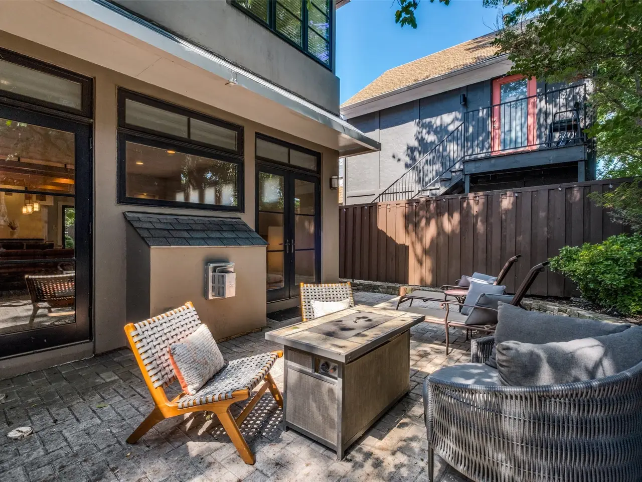 Incredible location meets modern luxury in Northern Hills! Just steps from Turtle Creek, Old Highland Park, Uptown, and The Katy Trail, this sleek custom half-duplex combines style, comfort, and convenience. A gated courtyard entry welcomes you into bright and open first-floor living and dining spaces with soaring 12-foot ceilings. The chef's kitchen boasts top-of-the-line appliances, a built-in 48-inch refrigerator, and a butler's pantry with a wine fridge - perfect for entertaining. Enjoy cozy evenings by the fireplace or relax on the spacious outdoor patio. Upstairs, the impressive primary suite features vaulted ceilings, a spa-worthy marble bath and a generous living area. A private guest suite with an en-suite bath completes the second floor. The third floor has a bedroom-office with a wet bar, full bath, and an expansive rooftop deck with a hot tub which showcases the best of Dallas living. Own a custom modern home in a premier location.