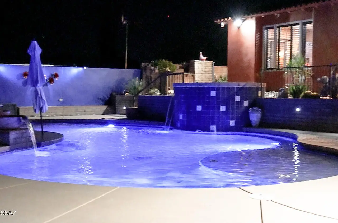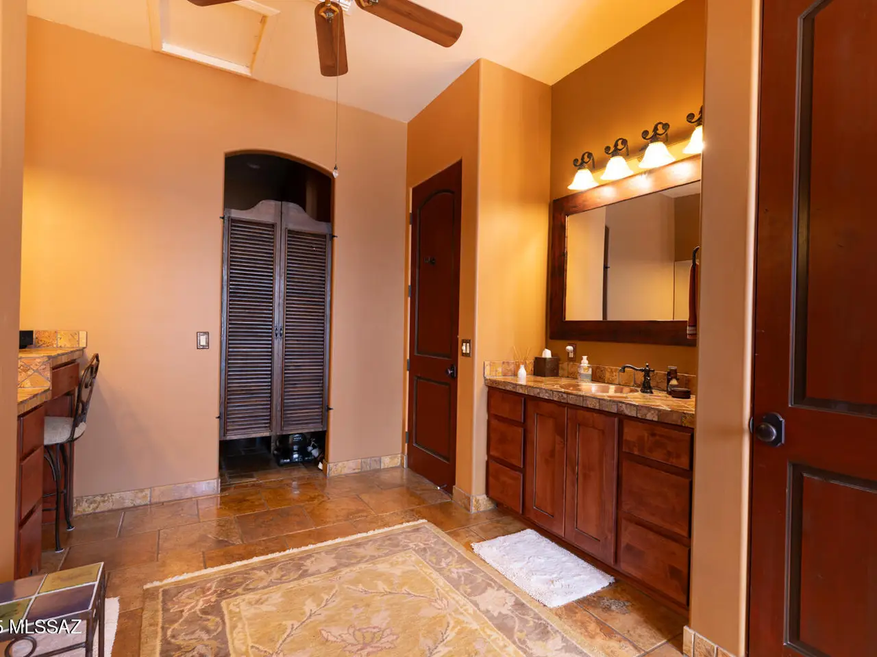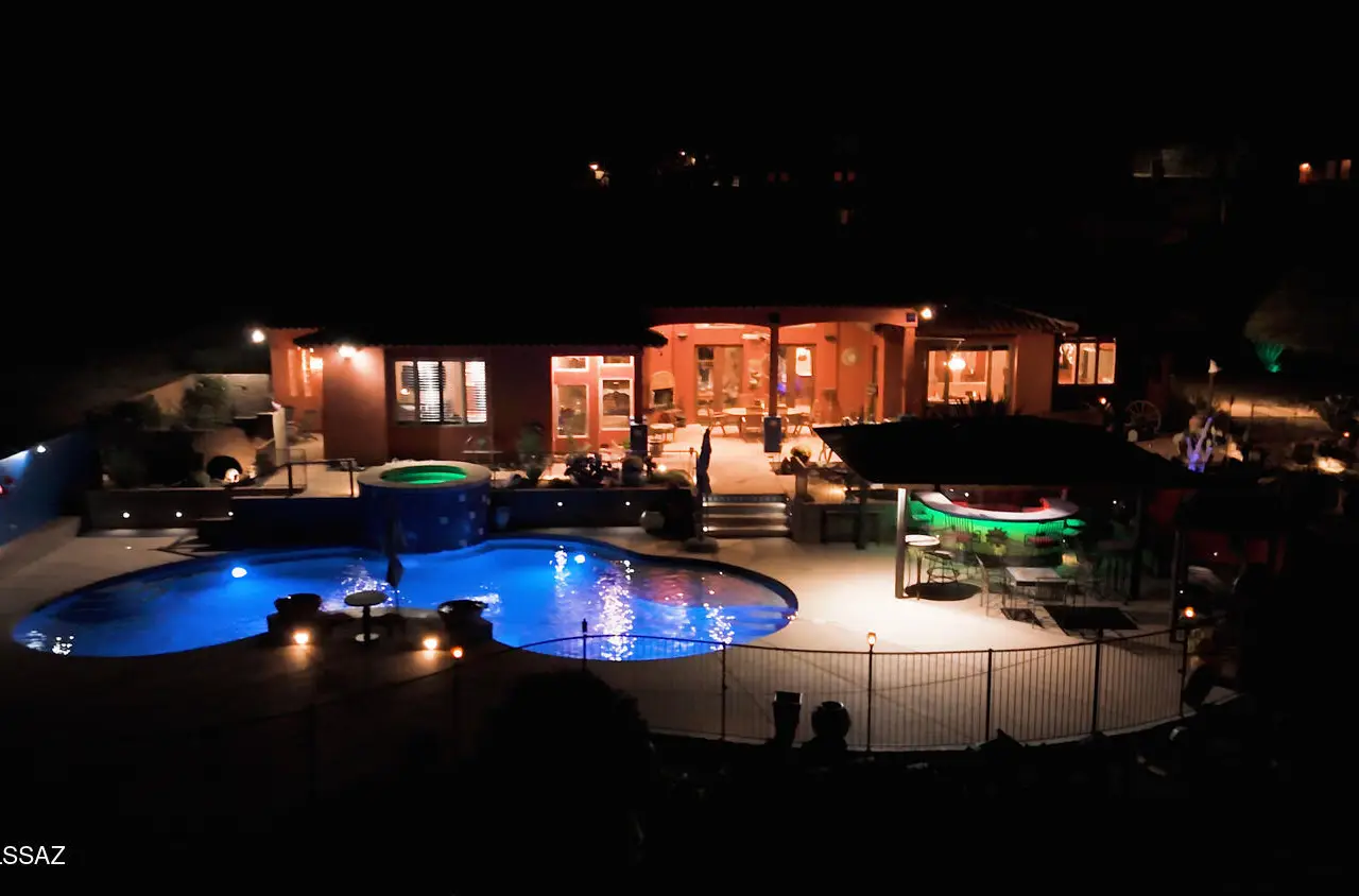 Nestled in a quiet, gated, non-HOA community sits a custom-built home on 3.77 acres boasting exceptional architectural details and modern amenities. The property is surrounded by majestic mountain ranges and desertscapes.The main house consists of rooms that are thoughtfully designed to maximize comfort and functionality. It includes two large bedroom suites, each with separate shower and jetted tub. The main bedroom has a fireplace and sliding doors which lead to the private patio and fountain. Its bathroom includes dual sinks, a vanity, roman shower and walk-in closet. The large open living room has a kiva fireplace, beamed ceiling and windows looking out to the pool and mountains. The kitchen features a large mesquite center island and newly refurbished mesquite countertops,