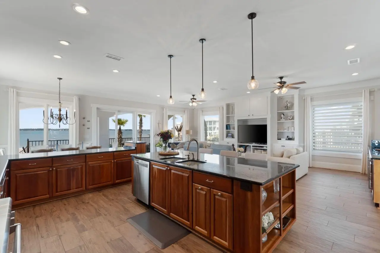 Exquisite Waterfront Residence in Sailmaker Cove. Step into a world of luxury and tranquility with this stunning waterfront home, nestled within the prestigious, gated community of Sailmaker Cove. This custom-built residence seamlessly blends timeless coastal design with elevated Mediterranean elegance, surrounded by the serene landscape of Gulf Islands National Seashore. Upon arrival, the property makes an immediate impression with its elegant white stucco exterior and Spanish cement tile roof, complemented by a beautifully designed wrought iron balcony offering captivating views of the Gulf and its pristine sugary beaches. Spanning over 3,794 square feet, this meticulously curated 4-bedroom, 5-bathroom home is designed to elevate your lifestyle and spirit. The first floor features an open-concept layout, perfect for gatherings, that effortlessly integrates into a chef's dream kitchen, adorned with high-end, custom solid wood cabinetry and stone countertops. Imagine dining while savoring breathtaking sunsets from the comfort of your home. Additional highlights of the first floor include a spacious bedroom suite with a luxurious bath. Tiles and hard wood flooring and a host of subtle custom finishes thoughtfully designed throughout the home such as imported sinks, a stunning cement wall for showcasing your favorite wines, and exquisite 19th-century European stained glass above bedroom doors and throughout selected walls really showcase this spectacular home. The spacious primary suite on the second floor serves as a true retreat, boasting a cozy sitting area, custom built-ins, and a private balcony with breathtaking views of the Gulf. Two additional guest bedrooms, each with en-suite baths and picturesque views of the sound and national park, provide ample space for family or guests. The garage is equally impressive, with high ceilings and generous storage space, including an area designed for a golf cart. The rear exterior of the home is perhaps its most enchanting feature, inviting you to relax or entertain at any time of day while being embraced by nature. Whether you prefer watching dolphins swim or enjoying a peaceful read, this unique setting promises to be a spectacular experience. Conveniently located just across from a tranquil, less-crowded beach. Take a short, scenic ride through the park to the vibrant Pensacola Beach for an array of dining and entertainment options. Sailmaker Cove provides a serene gated community experience, bordered by natural beauty, including the stunning Santa Rosa Sound. Residents also have access to the refreshing community pool, making this property an ideal choice for a primary residence, vacation home, or a lucrative short-term rental opportunity. This home is truly a rare gem that will not disappoint!