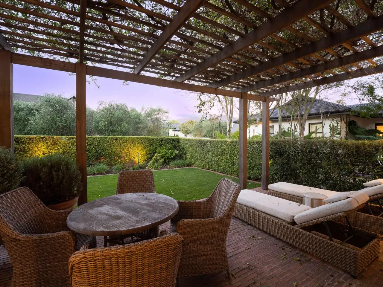 This truly exceptional double-storey home, designed by renowned architect Jan Desseyn, offers the ultimate in contemporary living. Blending cutting-edge technology, sustainable energy systems, and sophisticated high-end finishes, this residence sets a new standard in luxury and innovation. The home features four luxurious en-suite bedrooms, along with a stylish guest bathroom. A private flatlet with a kitchenette provides additional flexibility for guests, extended family, or work-from-home opportunities. Every element of this home has been thoughtfully curated to enhance comfort, function, and lifestyle. Styled by interior designer Gregory Mellor, the open-plan designer kitchen is the vibrant heart of the home. Featuring a central island, premium gas hob, and elegant finishes, it connects directly to the indoor braai room and surrounding entertainment spaces GÇö ideal for effortless entertaining and everyday living. Living and dining areas continue the theme of comfort and elegance. The main lounge features a cozy fireplace, perfect for relaxing evenings, while the adjacent dining and entertainment areas offer space for memorable gatherings. The home theatre delivers a true cinematic experience with plush seating, state-of-the-art audiovisual equipment, and immersive acoustics that transform movie night into a VIP event. Step outside to discover a luxurious al fresco lifestyle. A UV-sterilized swimming pool with an automated solar cover forms the centrepiece of the outdoor oasis. Enjoy warm evenings around the boma fire pit, fire up the built-in braai or pizza oven, and unwind in the beautifully landscaped gardens GÇö all crafted by Josie Noyce and Marigold Landscaping to create a tranquil retreat for both entertaining and relaxation. This home is also a haven for wellness. It features a dedicated wellness suite with both infrared and conventional saunas, as well as a spa-quality ice bath GÇö a perfect escape for rest and rejuvenation. Fitness enthusiasts will appreciate the fully equipped home gym, while children are catered for with their own entertainment room, outdoor playground, and open garden space for active play and creativity. Smart home technology elevates this property even further. Fully integrated with Savant home automation, Lutron lighting, Sonos audio, and comprehensive WiFi coverage, this home offers intelligent, intuitive control at your fingertips. Sustainability meets self-sufficiency with a robust energy and water system. The 30kVA solar and battery setup includes 77 solar panels and 57kWh of storage, ensuring energy independence. The advanced water system features a three-stage filtration process, UV sterilization, and a 500L backup tank, providing pure water and peace of mind. This remarkable residence offers a harmonious balance between design, technology, comfort, and sustainability GÇö delivering a lifestyle that is as effortless as it is luxurious.