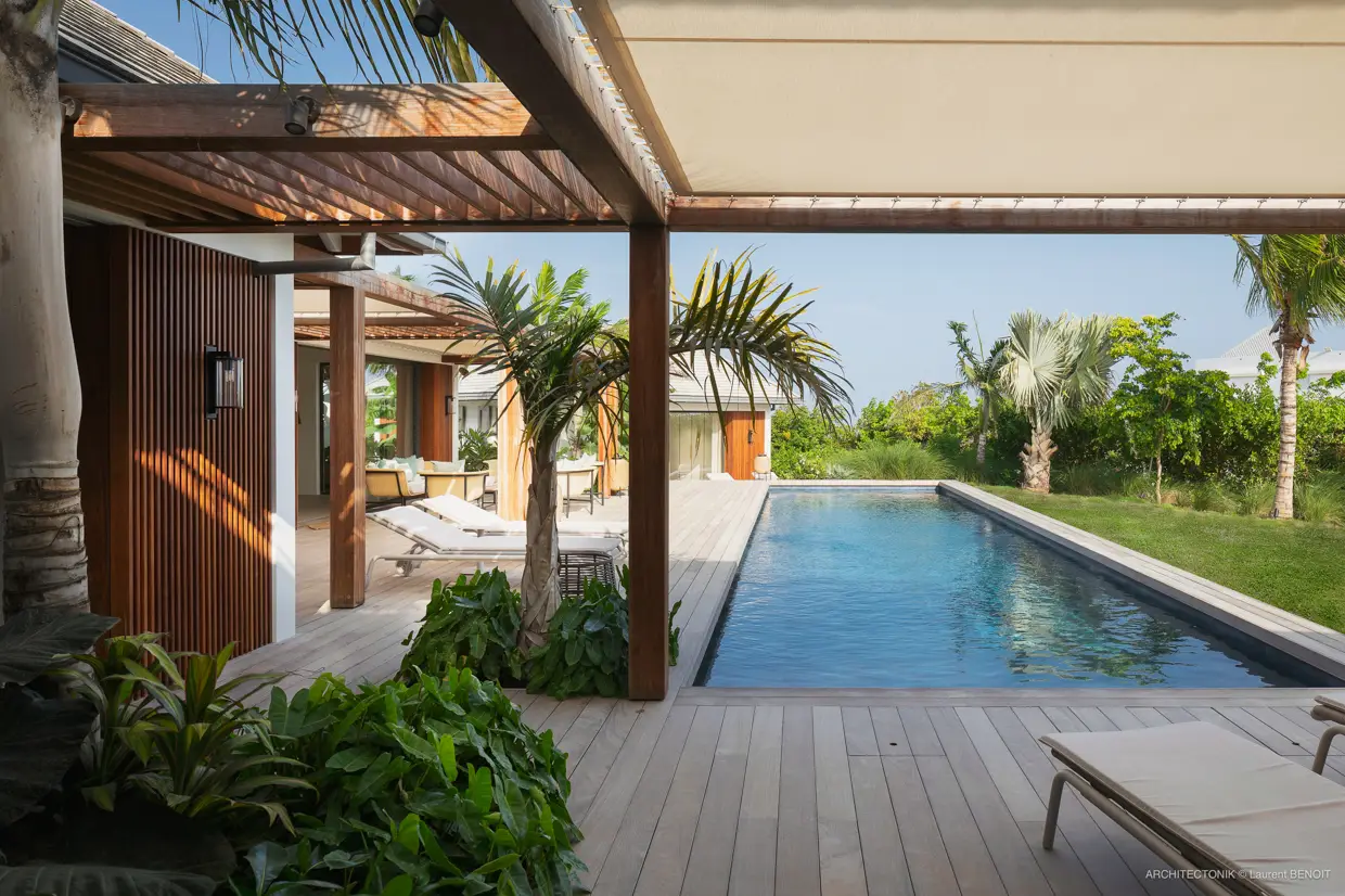 Ideally located between Gustavia and St Jean, Villa Garden is part of the prestigious Domaine du Gouverneur, a secluded private enclave home to just three luxury properties. Designed by the renowned Architectonik studio, this newly built four-bedroom contemporary villa draws inspiration from traditional West Indian architecture with its elegant arrangement of bungalows. The result is a refined blend of high-end amenities, effortless comfort, and timeless style. The living spaces are distinguished by their meticulous attention to detail, custom woodwork, designer furnishings, and a curated palette of noble materials. Each of the four bedrooms is conceived as an intimate retreat, complete with en-suite bathrooms and generous volumes. Floor-to-ceiling glass doors bathe the interiors in natural light and create a seamless connection with the outdoors. The main living and kitchen building opens onto a spacious covered terrace designed for both lounging and dining al fresco. Like a mirror to the sky, the sleek pool stretches out within the heart of the garden, embraced by soft greenery and the hush of absolute privacy. A hidden gem designed for indulging in the gentle Caribbean lifestyle.