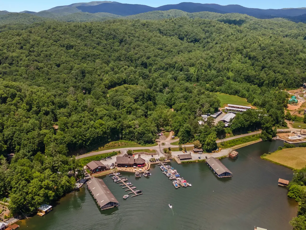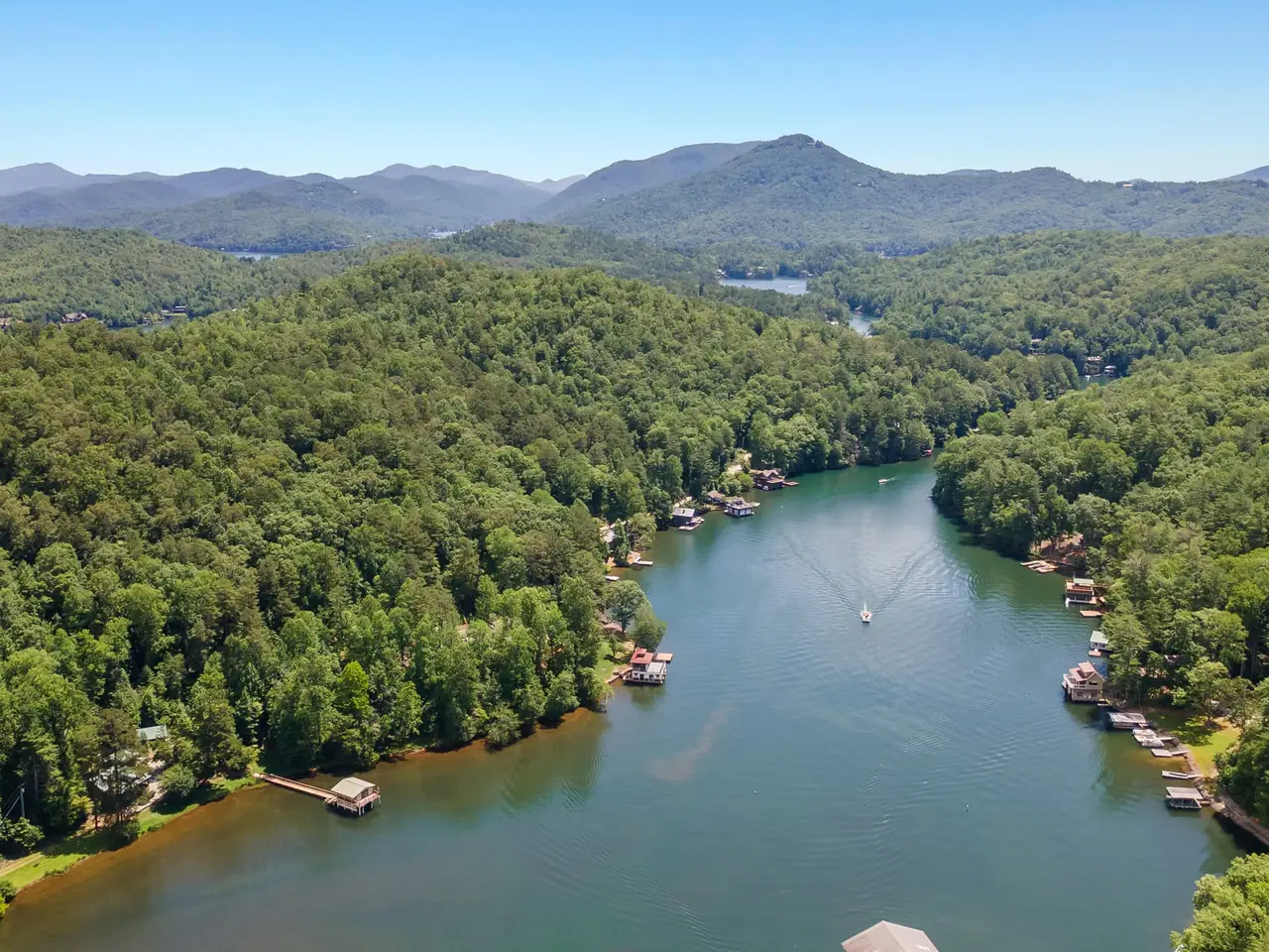 Stones Throw at Lake Burton - Custom-designed 4BR/3.5BA home privately nestled on approximately 1 acre in the heart of Lake Burton. Located on a gated and landscaped knoll, this fee-simple property offers rare seclusion just seconds or a stone's throw from LaPrade's Marina and restaurants. Just load up the golf cart or ATV for a short trip across the road to the marina where you can store your boat. Surrounded by native hardwoods, mountain laurel, and rhododendrons, the natural setting is enhanced by a charming babbling brook and a picturesque approach. Inside, the home features quality finishes, open living spaces with high ceilings, and a layout designed for comfort and entertaining. Enjoy the best of Lake Burton living-convenient access to the lake with no compromise on luxury or privacy. A one-of-a-kind opportunity in a prime Burton location. The main level features a large custom kitchen with granite countertops that overlooks the dining and large family room. Primary Bedroom with large ensuite bathroom, a second bedroom with an ensuite full bath and a half bath for guests. The lower level features a family/game room, 2 more bedrooms, a full bath, laundry room and storage room. Extras include a Charging station for a tesla and a whole house generator. All furnishings interior and exterior remain with the property.