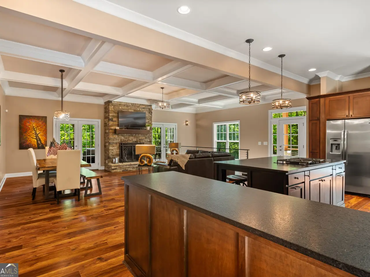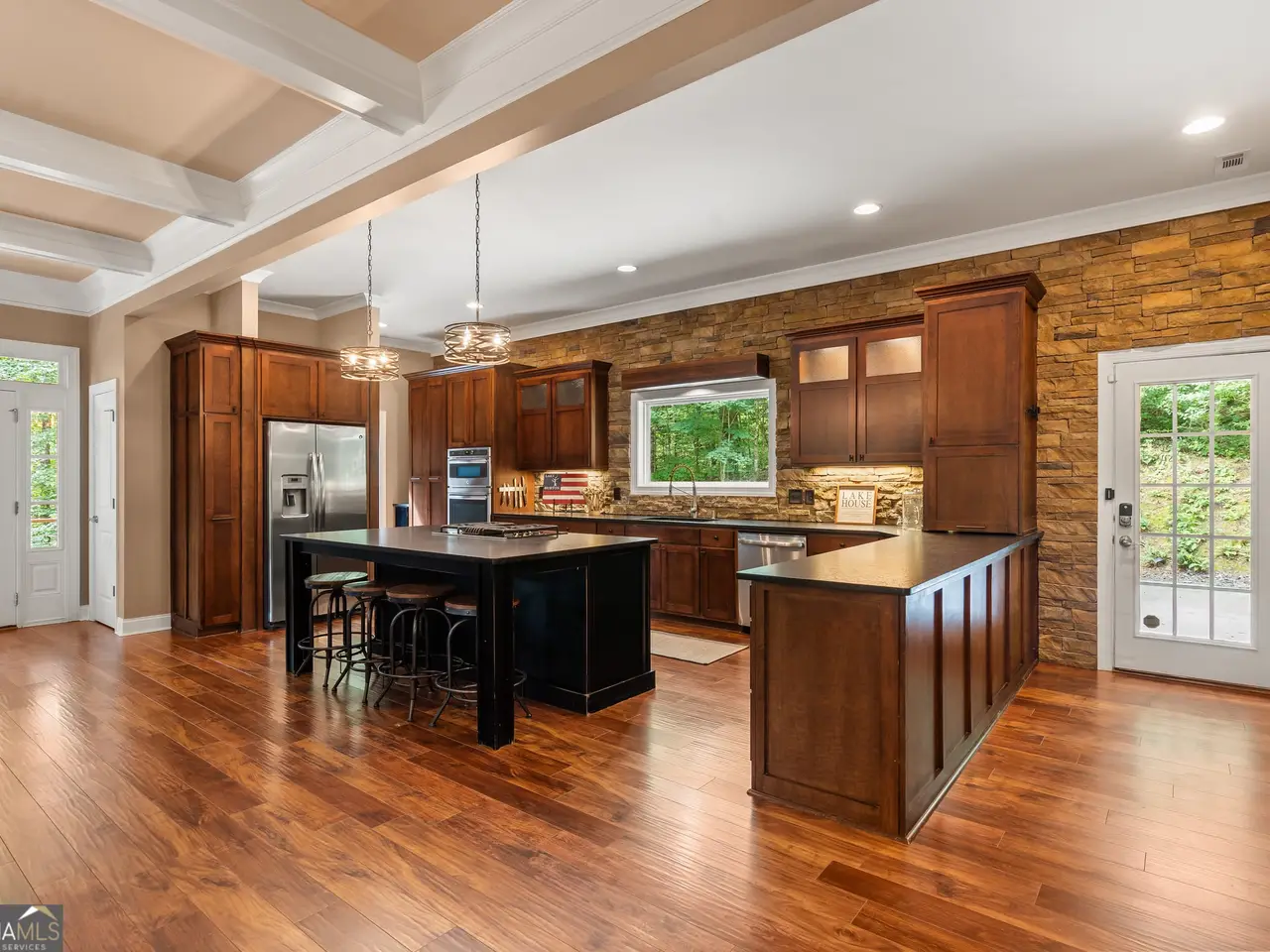 • Large custom kitchen with granite countertops