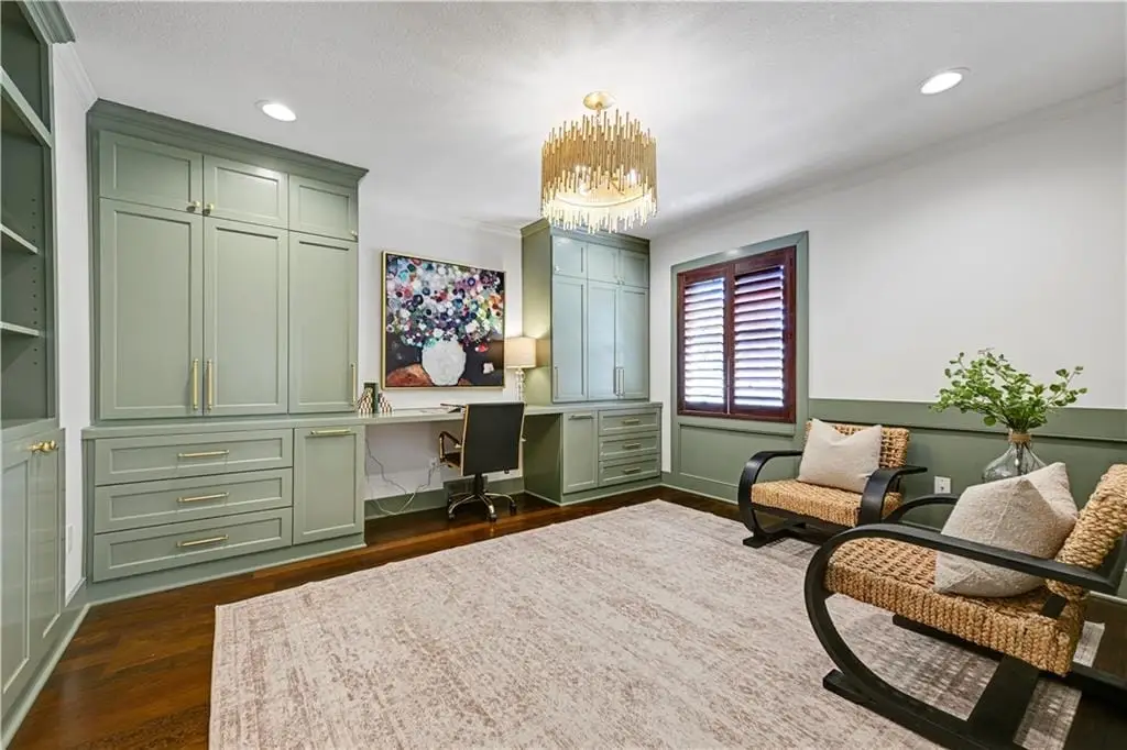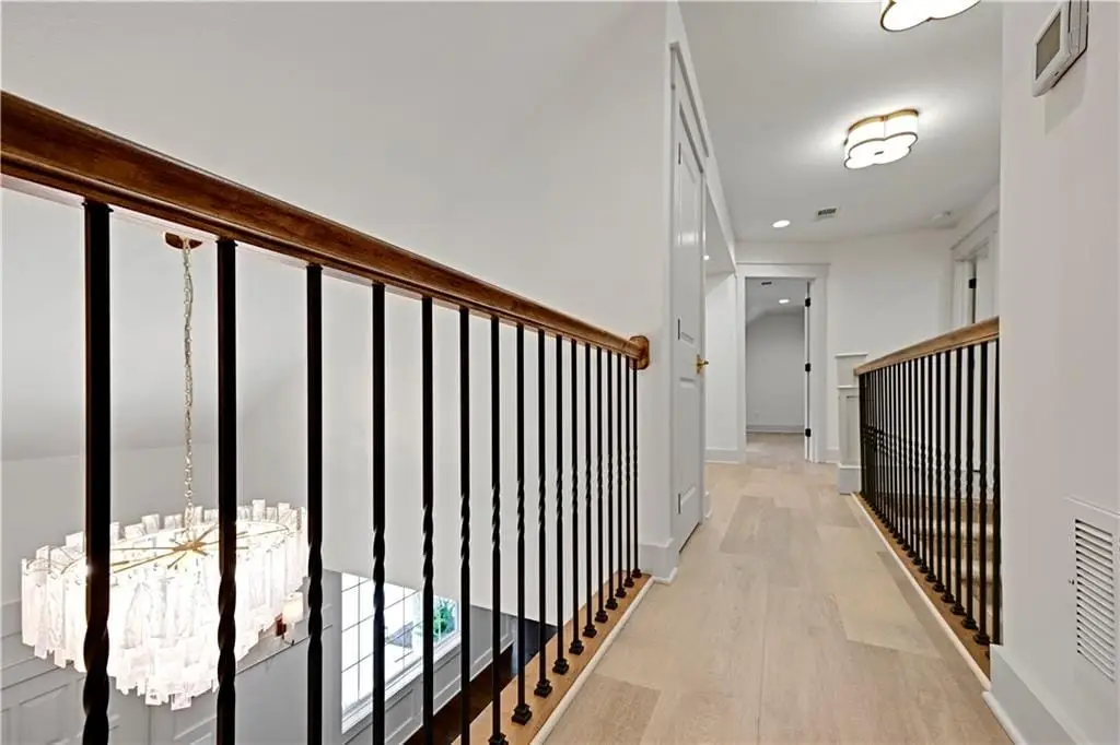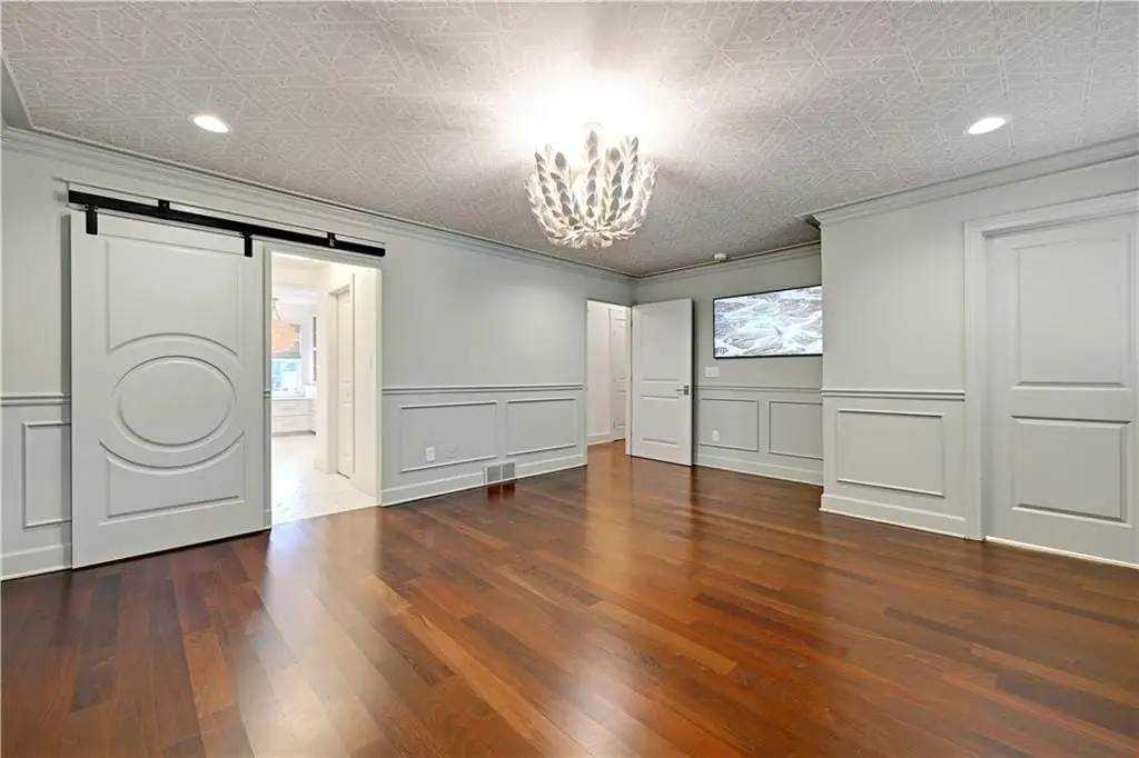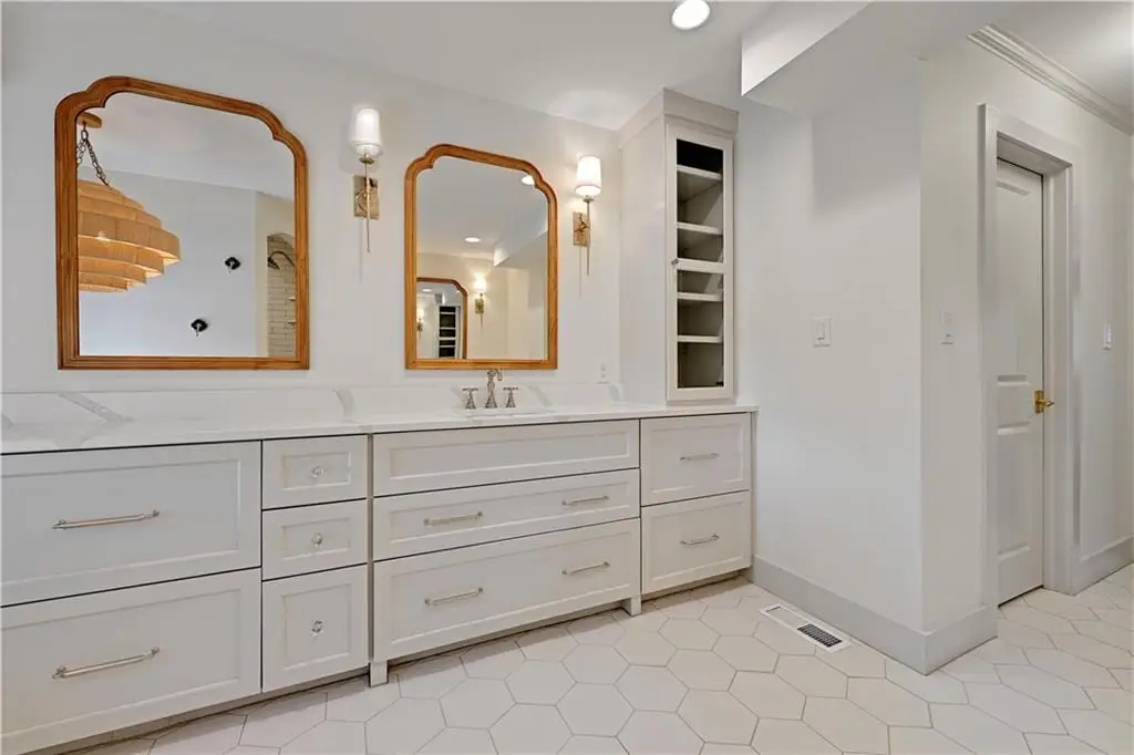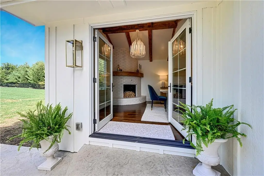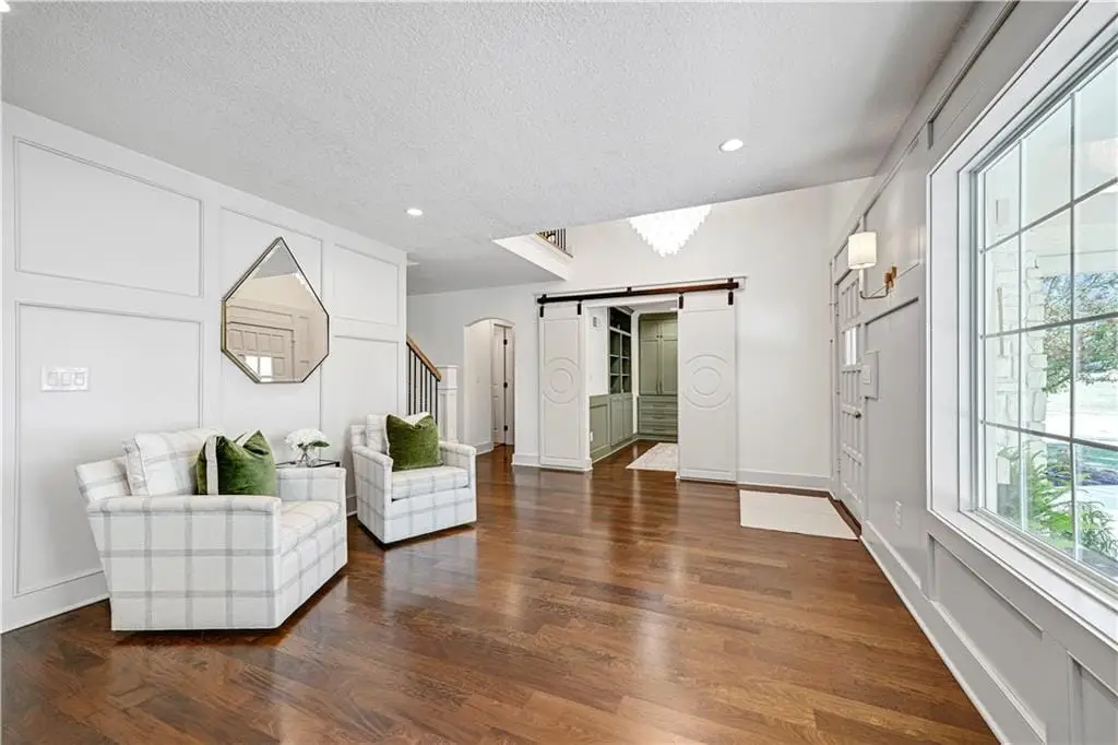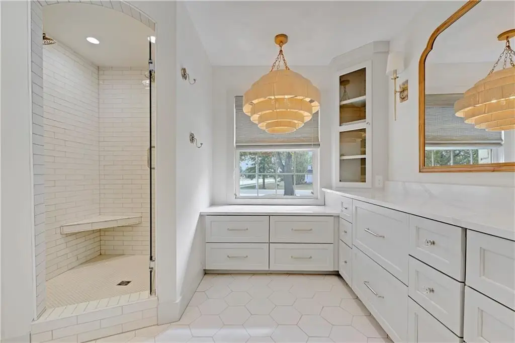 Stunning, remodeled 1.5-story estate on a beautifully landscaped corner lot spanning over 1 acre in the heart of Leawood. This home has been thoughtfully redesigned with extensive renovations, floor plan enhancements, and premium upgrades throughout. Upon entry, a formal living room and dining room, with elegant fireplaces create inviting spaces for both everyday living and entertaining. A custom wet bar with beverage fridge adds to the homes hosting appeal. The show-stopping chef's kitchen features a quartz waterfall island, top-of-the-line appliances, and an oversized window overlooking the private backyard. Adjacent to the kitchen, a well-appointed mud hall includes built-in cabinetry, a desk, cubbies, connecting to the spacious three-car carriage garage. The main-level primary suite offers peaceful backyard views, two walk-in closets (one with its own washer and dryer), and a fully renovated spa-like bathroom with a private water closet. Upstairs, three large bedrooms each include ensuite bathrooms and custom closets. A second laundry room w/ washer/dryer that stays completes the upper level. High-end finishes include Brazilian hardwood floors, designer lighting, quartz and quartzite surfaces, surround sound on the main floor, and custom millwork. Major mechanical updates include a brand-new septic system, partial concrete driveway, new water heater, new sprinkler system in backyard and professional landscaping. The property is enclosed by 558 feet of 5-foot steel fencing. With the newly installed septic system, the property is now perfectly suited for the addition of a poolan ideal setup for creating your dream backyard retreat. A rare opportunity to own a fully updated, move-in ready home on a premier Leawood estate lot.