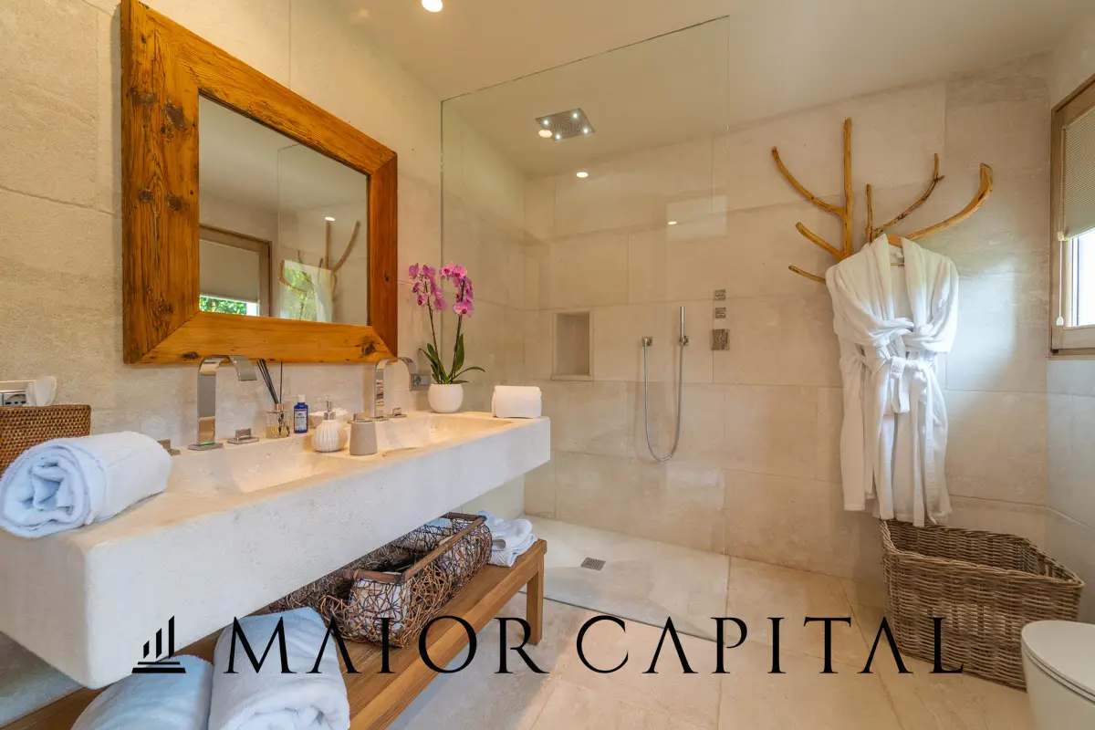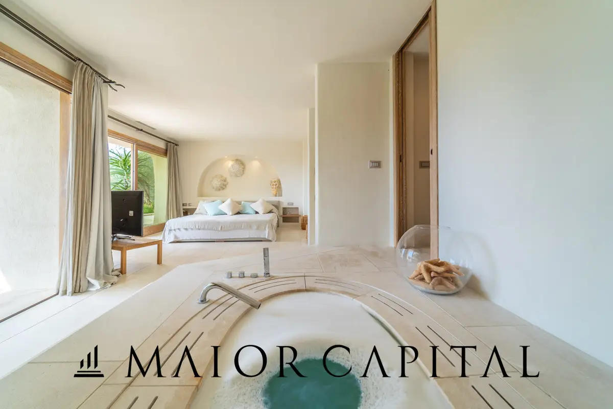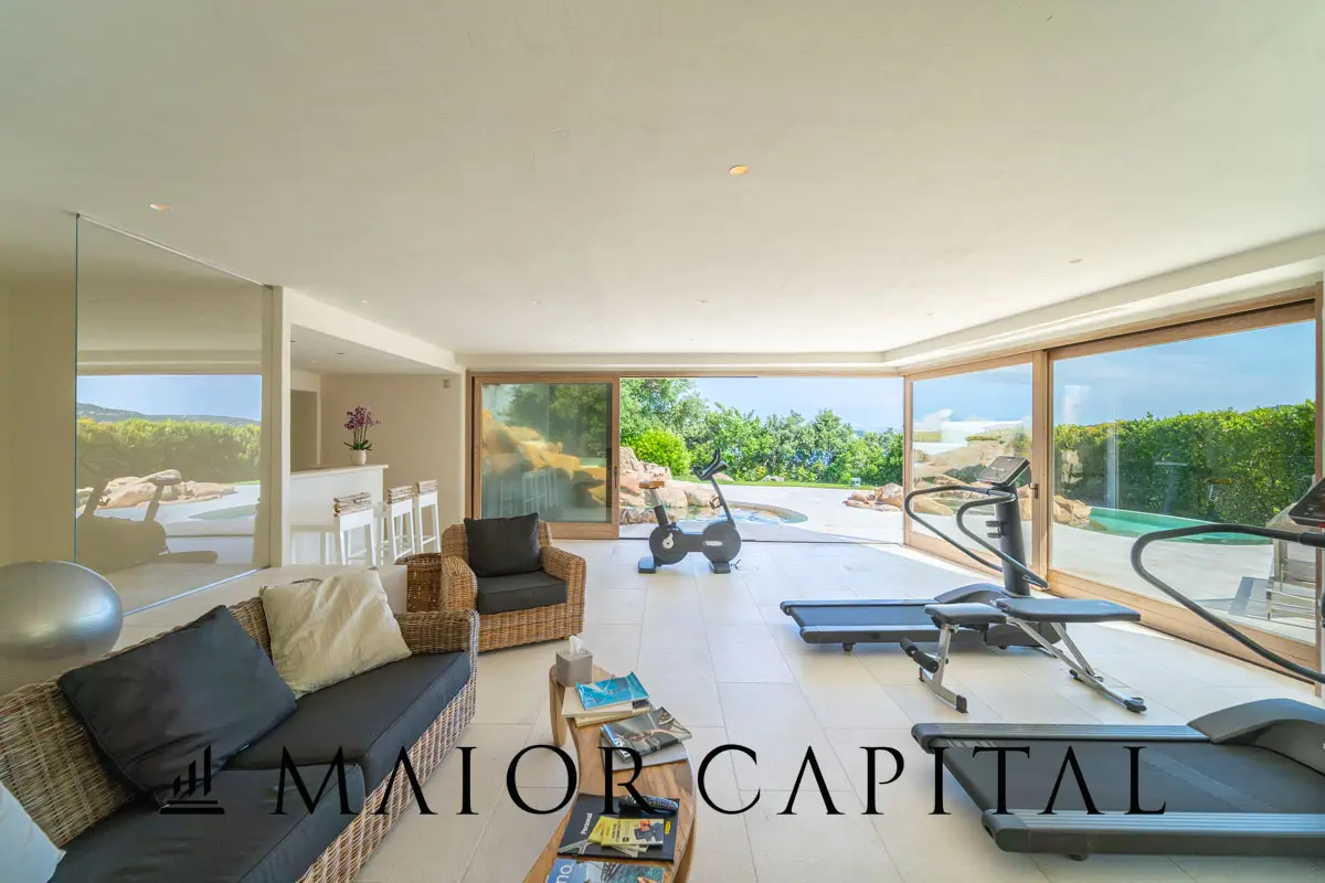 Dominantly positioned with a view of the crystal-clear sea of the beautiful Sardinia, we offer for sale a one-of-a-kind villa. Large spaces, modern design, and luxury blend perfectly with the verdant nature of the island, leaving anyone who sees this dream villa speechless. A well-kept garden, enriched with several scenic pools, surrounds the property, creating the ideal environment to relax, get carried away by the atmosphere of the Costa Smeralda, and abandon all negative thoughts and daily stress. The large outdoor area and large internal sizes seem specifically studied to host friends, entertain them, and at the same time to offer them private spaces to live in total privacy. Inside, the villa offers private rooms equipped with every comfort, wellness area, massage room, gym, and all kinds of luxury. In the garden, you can enjoy the tennis court, the whirlpool pools and solarium, and various equipped relaxation areas. High-quality finishes, design furniture, sometimes made by local craftsmen, catch the attention of those who visit and make each room pleasant to look at, studied in the smallest detail. The ideal location, very convenient for travel to the center of the renowned Porto Cervo and to every beach on the coast, makes the property perfect for spending unforgettable moments in northern Sardinia. Spread over several levels, it is composed as follows: Wide and equipped verandas Large and bright open-space living area with sea view and pool view Elegant dining room Equipped and professional kitchen Master suite with visible jacuzzi and private bathroom, complete with walk-in closet and relaxation area Five double bedrooms with en suite bathroom, walk-in closet and private relaxation area Three guests bathrooms Area for service staff with four rooms and private bathrooms Laundry Cellar Features: High-quality furniture Private garden of about 3000 sqm Fireplace Air conditioning in every room Spa with Turkish bath, sauna, jacuzzi Massage room Cinema room with home theatre system Gym Bar Outdoor pool with whirlpool and heated water Solarium Tennis court Covered parking area Why buy it? #1 High-quality property #2 Exclusive context #3 Unique solution of its kind #4 Panoramic sea view #5 Scenic pools #6 Large internal and external spaces #7 Just a few minutes from the center of Porto Cervo #8 30 minutes from Olbia Costa Smeralda™ port and airport Maior Capital is the Real Estate Group of reference for the purchase and sale of property in Sardinia, offering the widest selection of luxury properties, charming homes and nature in a single collection. Our team of real estate experts offers a tailor-made and impeccable service, thanks to their deep knowledge of the Sardinian territory and proven professionalism. As an exclusive member for Sardinia of important global networks such as Luxury Portfolio International, Leading Real Estate and Italian Network Realty, we guarantee a high-level brokerage experience and maximum satisfaction for every client.
