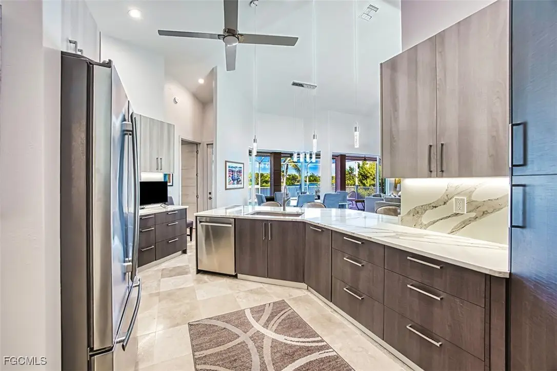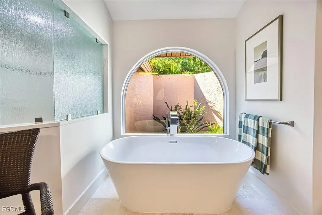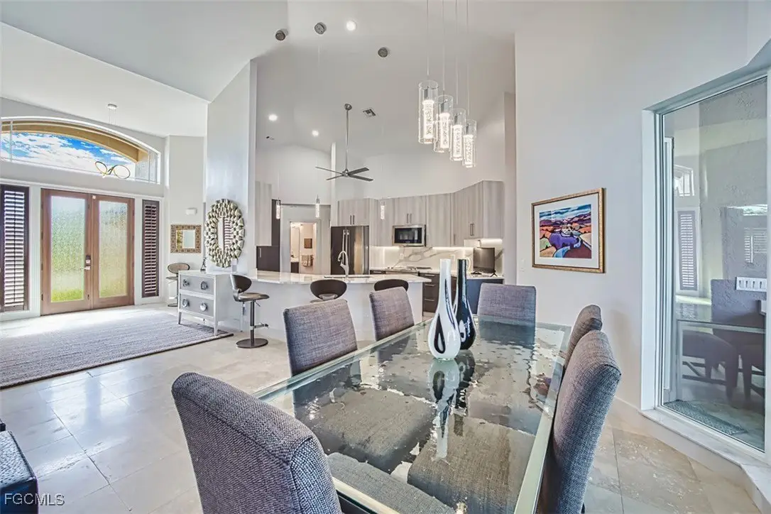 Sweeping water views will greet you when you walk into this spectacular island home. This sophisticated, contemporary home has been completely renovated with high-end finishes throughout. The popular great room design features vaulted ceilings, an electric fireplace, a peninsula breakfast bar, large dining area and a dream kitchen. Living and entertaining areas in the great room flow out to an oversized lanai where you and your guests will experience calm and relaxation while enjoying the peaceful, expansive water views. Enjoy swimming in the free form pool or soaking in the hot tub. The spacious primary ensuite boasts a sitting area, a walk-in closet/ dressing room, dual vanities and a garden soaking tub. Split bedroom design affords privacy for all. There is abundant storage throughout the home- even a bonus flex room off the laundry for additional storage, or it could serve as a craft room, an artist's studio or an exercise area. Partially elevated, this home also features impact glass. The two car+ garage has room for both cars, a golf cart and bicycles. An EV charging station is already in place. Located in the popular Dunes neighborhood, this east end location is close to the beach, the bay and offers easy on/off access to the island. If you are looking for a "WOW" factor, you need to see this home.