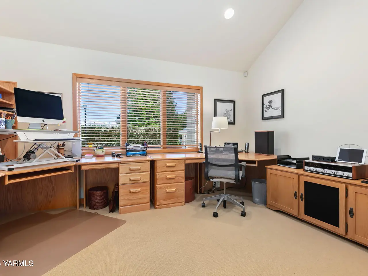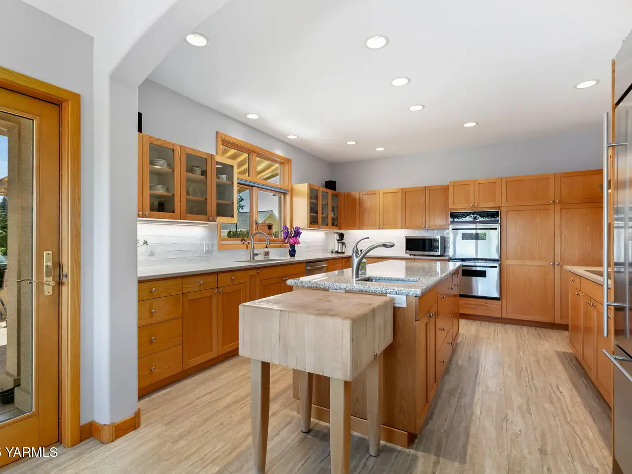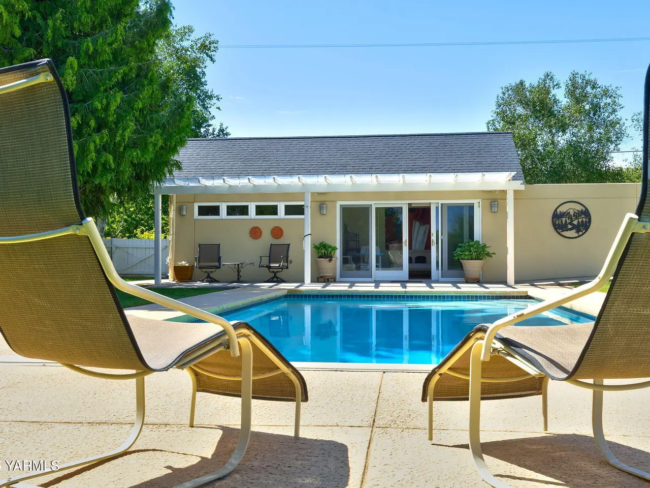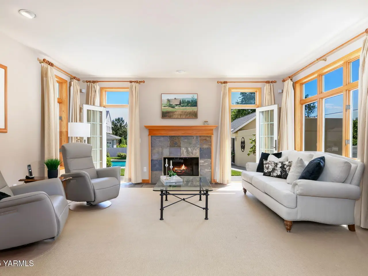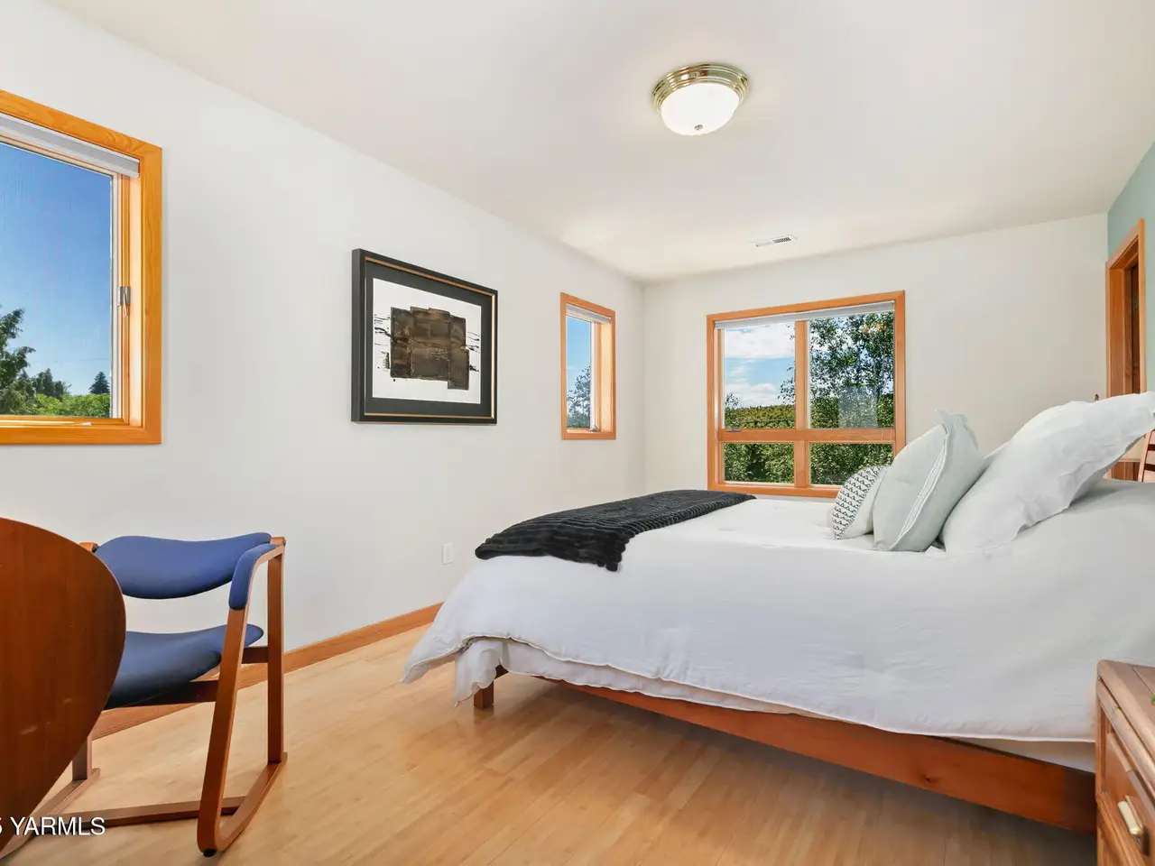 This architecturally designed one owner, custom built home crafted by Jim Sevigny and Artisan Construction, is tucked in on a private lane and set on an acre of rural scenic heaven with close and distant views from Scenic Ridge yet minutes to city life and services. It can best be described as an estate setting! You arrive on a gently curving, tree shaded driveway to the front door. Stepping inside you will be impressed by gleaming hardwood floors, graceful arches and a grand staircase that leads to the primary ensuite, 2 additional bedrooms and a conveniently located laundry room. The living room is defined by high ceilings, light-filled windows and a gas fireplace framed by a pair of window paned doors that allow direct access to entertaining and relaxing on the patio and pool area. Follow the main hallway past what is currently a very spacious two-person office/study that provides an option to repurpose for your own use and enjoyment if desired. Nearby is an ensuite bedroom designed with curb-less shower and wall hung sink which can be used by all family members and guests. The dining area is generous and can accommodate many diners comfortably. The heart of this home is the spacious gathering room with high ceilings warmed by a gas fire stove in the informal eating area and a chef's kitchen with high end counter tops and cabinetry, newer appliances including an induction range, pantry cabinet and direct access to the patio and deck. Meal prep is enhanced by soothing views of orchards and hills beyond. Step outside onto the patio for relaxation and entertaining which is enhanced by the retractable awning, wood burning fireplace, availability of natural gas for barbecues and hot tub overlooking the sparkling inground swimming pool with powered retractable cover and adjoining cabana all overlooking, in cool comfort, the sweeping views of manicured lawn and flower gardens.