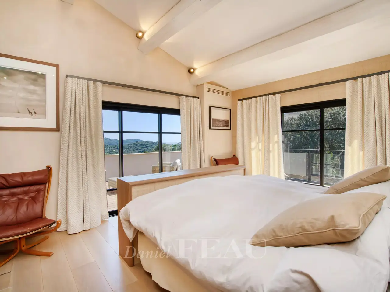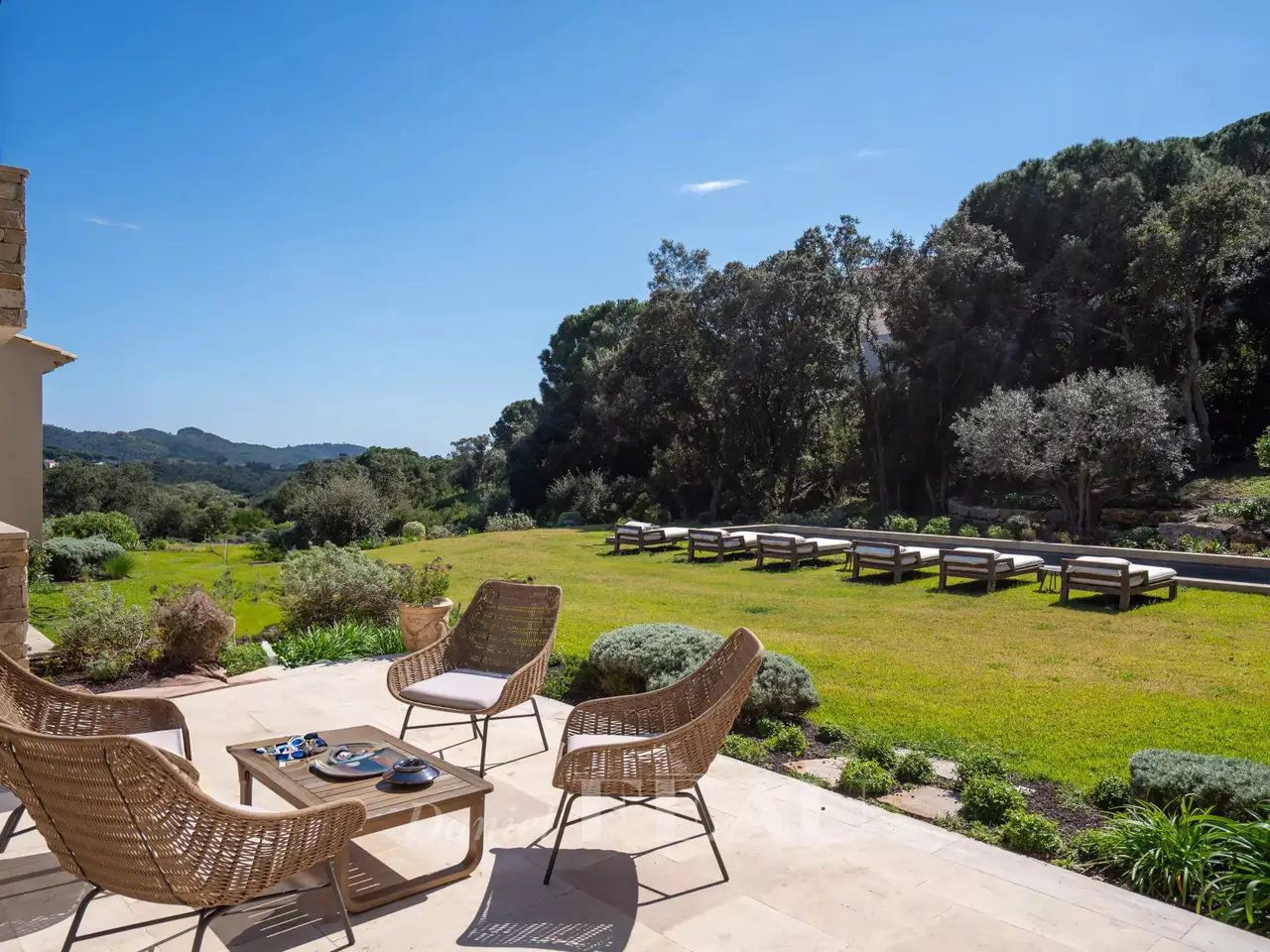 Sole Agent. Gigaro neighbourhood, in a secure private residence. This exceptional property in an unspoilt setting a few minutes from the beaches was renovated throughout by a renowned interior decorator in 2023. It includes a spacious and bright living/reception room, and six refined suites including a master commanding a sea view. The level grounds feature a 14 x 4 metre swimming pool, and a covered terrace with a summer kitchen. With a double garage. A rare opportunity in a keenly sought-after location.