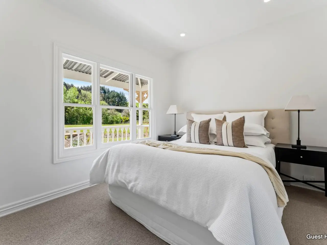 Once gracing a leafy Parnell street, this beautiful historical villa has found new life in the countryside, relocated and completely transformed with exquisite care and vision. Reimagined by designer Sarah Foote, it now rests gracefully within its tranquil Matakana setting, capturing sunshine, shelter, and sweeping views over lawns, trees, and the surrounding nature.The single level residence radiates charm and proportion, its soaring stud height, wide hallways, and wraparound verandas framing a home that feels both nostalgic and luxuriously comfortable. Inside, the interiors blend heritage character with every modern convenience, including ducted air conditioning, underfloor heating in the bathrooms, and finely detailed craftsmanship throughout.The layout includes four generous bedrooms, the master with ensuite and walk-in wardrobe, a separate office, and full laundry. Every element has been reimagined, from the stone topped kitchen with quality appliances to the elegant tiled bathrooms featuring refined lighting and tapware.A separate self-contained outhouse mirrors the villa’s architecture, offering a guest suite or retreat with its own lounge, bedroom, and bathroom. Beyond, the lawns are perfectly flat and beautifully landscaped, with resource consented plans for a pool and tennis court ready for the next chapter.Tucked privately along Ridgewater Lane, off Sharp Road, the property enjoys private joint access to the shared Ridgewater gardens — a serene and special landscape featuring lily ponds, a saltwater pond, and a small boat ramp just across the driveway. This unique amenity invites you to enjoy the water, take a peaceful paddle or kayak, and wander among the beautiful gardens, ponds, and trees.Romantic, peaceful, and effortlessly elegant, this is a villa that marries heritage charm with modern living, a home to be loved, lived in, and enjoyed for generations.Contact us today for more information. Deadline sale: Closes on Thursday 27 November 2025 at 4:00PM (unless sold prior)