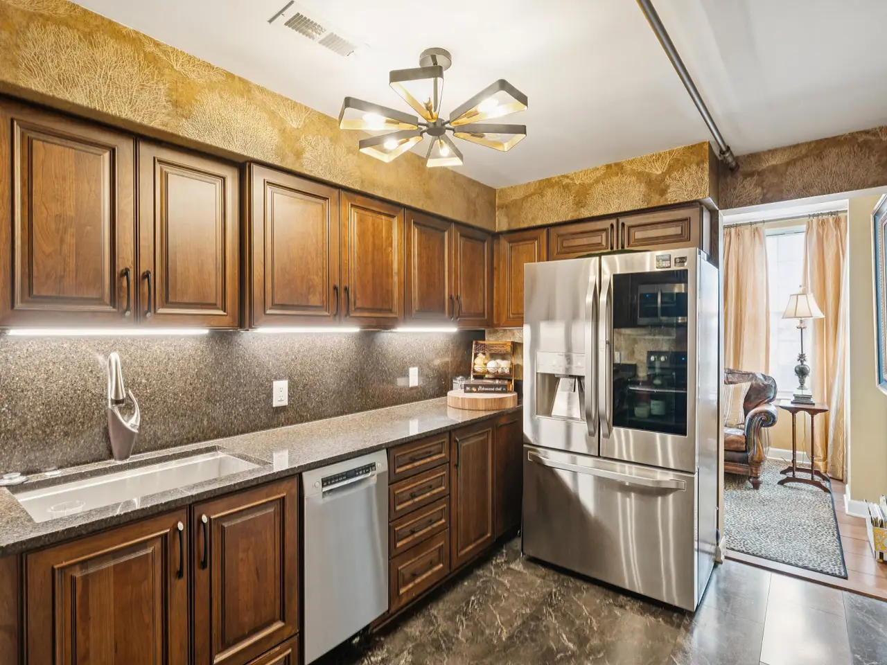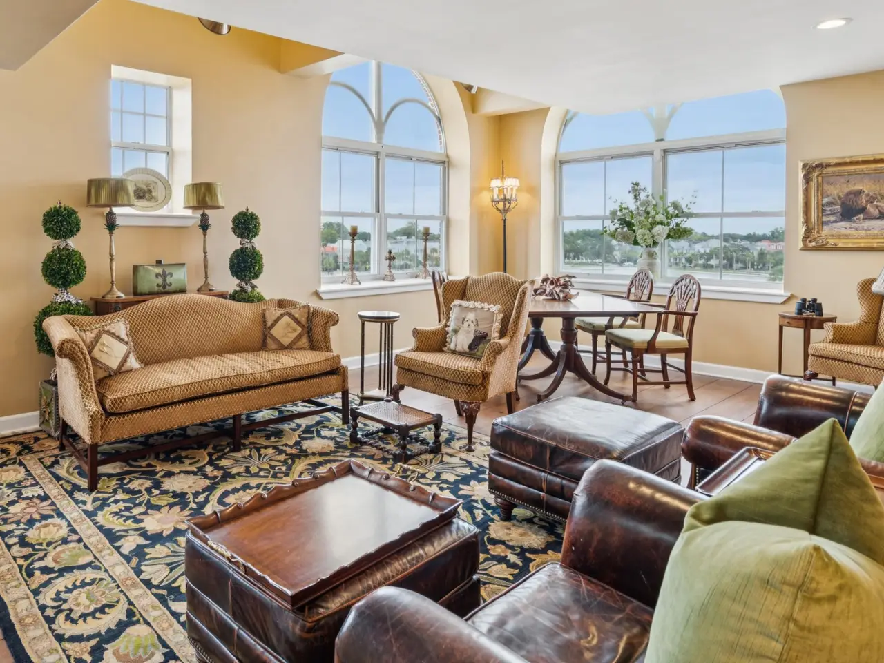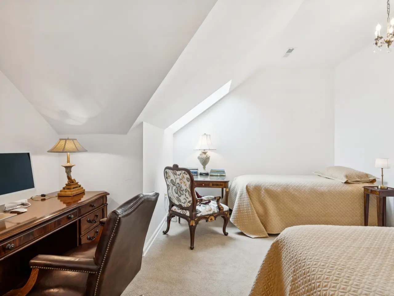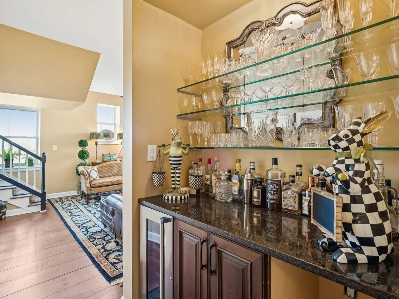 Experience breathtaking views stretching from the Ravenel Bridge to The Jasper on Broad Street from this unique, top floor, corner condominium at the historic Baker House overlooking Colonial Lake. Enjoy passive, park life and interesting wildlife, spectacular sunrises silhouetting the Charleston skyline in the mornings and colorful sunsets reflecting in the many windows of The Jasper and on the lake in the evenings. Built as a private hospital in the early 1900s, Baker House was converted into condominiums in the early eighties and Number 18 was renovated in 2021 and named ''Seven Spires''. The first level boasts three huge, Palladian style windows that showcase the panoramic vista from the living and dining area, beautiful wide plank flooring, a galley kitchen and half bath. This levelalso includes a large beverage bar with a wine cooler, coat closet and additional space separating the living area and kitchen for use as a media room, office or smaller dinette. Three bedrooms and two full bathrooms comprise the second level with unusually ample closets throughout. No storage issues here! The spacious, primary bedroom features a tiled, en-suite bathroom with a large shower and quartz countertop. The other two bedrooms are generously sized as well with skylights that enable one to sleep under the moon and the stars! A second, large, tiled bathroom with a combination tub and shower and quartz countertop is located off the hallway just a few steps from both bedrooms. Moultrie Park, a large, active park offering sports such as tennis, pickleball, and basketball, abuts the large, private parking lot for Baker House residents. Restaurants within close walking distance include The Alcove Market, Costa and Circa 1886. The Crosstown (Highway 17), connecting to all points north, east and west, is a three minute drive. This offering is an exceptional opportunity to live in an historic building, Baker House, in an historic neighborhood, Harleston Village, on the quiet, residential side of the peninsula and to enjoy fabulous views of Charleston above the tree tops! Chandeliers do not convey.
