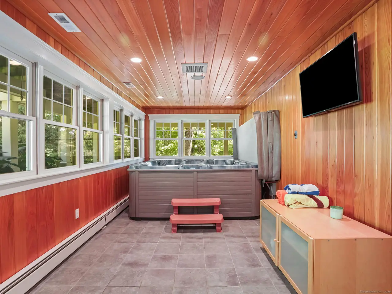 • Cedar sunroom with full-size Thermo-spa hot tub