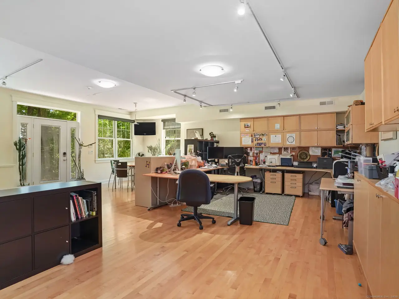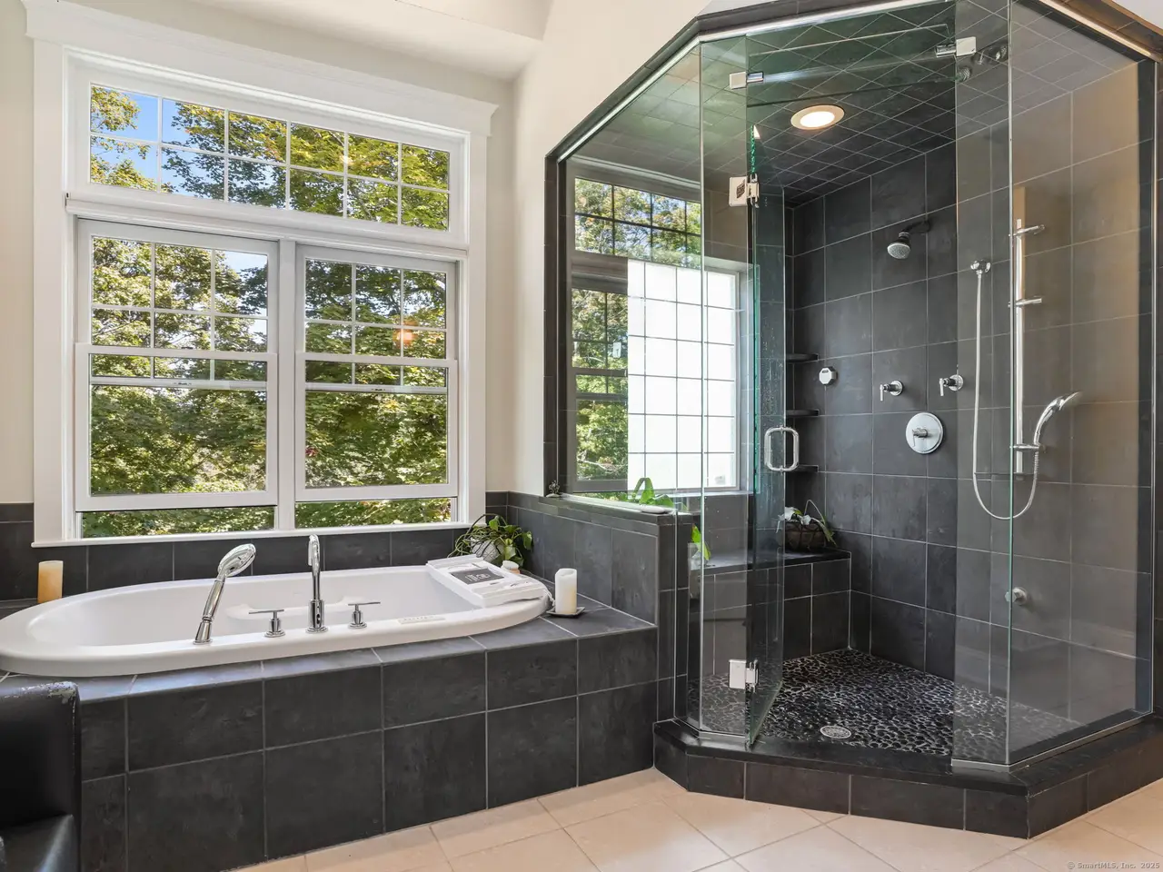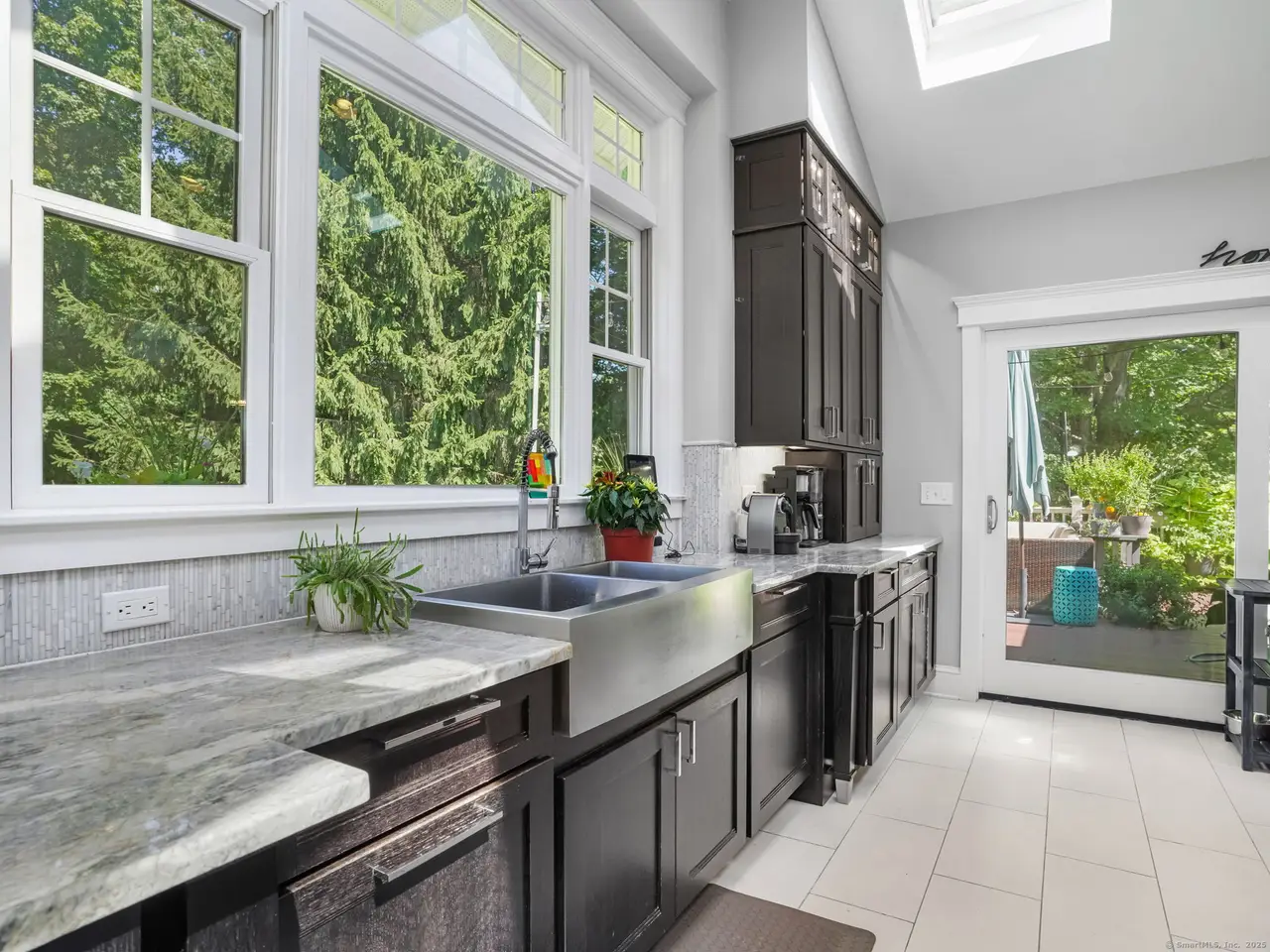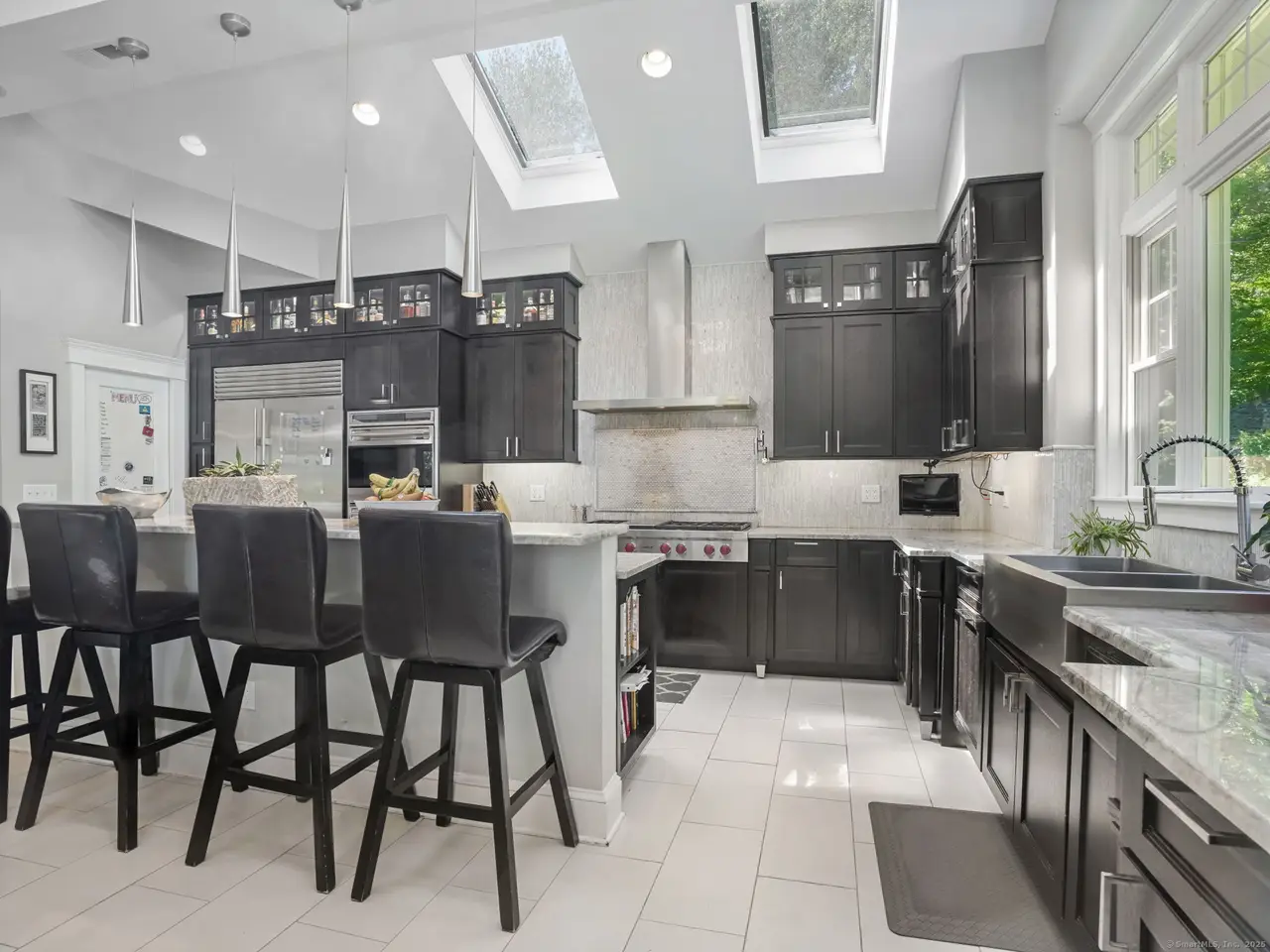 A stunning architecturally designed custom home located in the desirable Porter's Hill section of Trumbull & within the Daniels Farm Elementary School District. Conveniently close to schools, parks, shopping, restaurants, & highways, this commuter's dream offers 7 to 8 bedrooms & 6 full bathrooms, each finished with high-end tile, fixtures, and amenities.Professional audio system throughout. The impressive 2-story foyer with open staircase sets the tone for a sun-filled interior highlighted by skylights, unique lighting, and custom pendant lighting. The gourmet kitchen is equipped with Wolf appliances including a gas cooktop, double ovens, warming drawers, Sub-Zero refrigerator, wine chillers, and three sinks, high end Brazilian Quartzite countertops all complemented by custom cabinetry. The home features a cedar sunroom with a full-size Thermo-spa hot tub, a spacious mudroom with built-ins and shelving, and an expansive 25x25 foot walk-out office with a full bath that can also serve as an au pair, or in-law. The primary suite offers cathedral ceilings, built-in bookcases, a fireplace, surround sound, and a luxurious bathroom with a steam shower, whirlpool tub, double vanities, and decorative tile. Outside, the property has been professionally landscaped by a landscape architect with specimen trees, lavender walkway, and an oversized Trex deck, creating a private, tranquil, and breathtaking outdoor oasis that perfectly complements this extraordinary home.