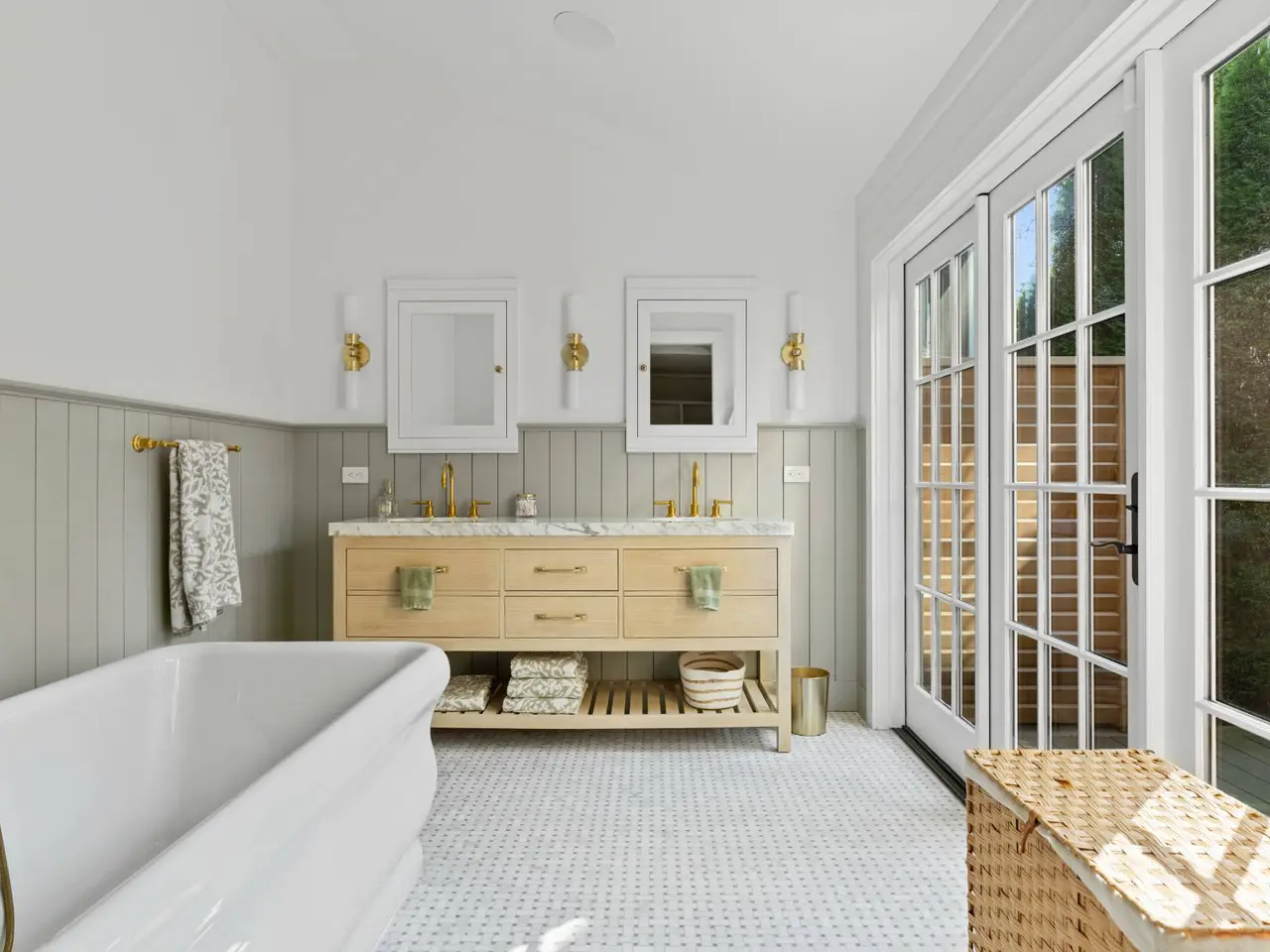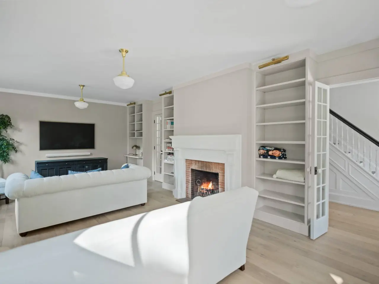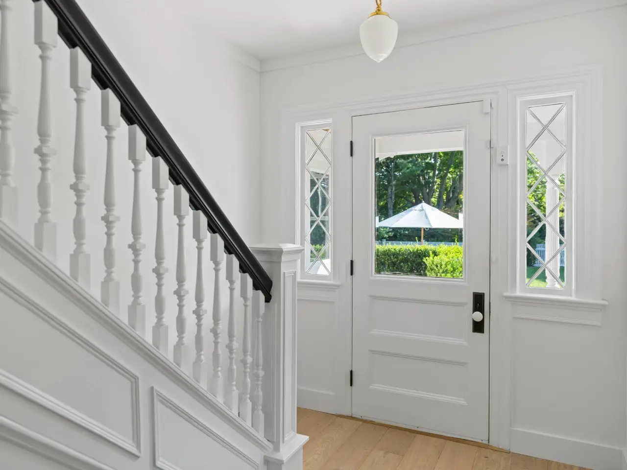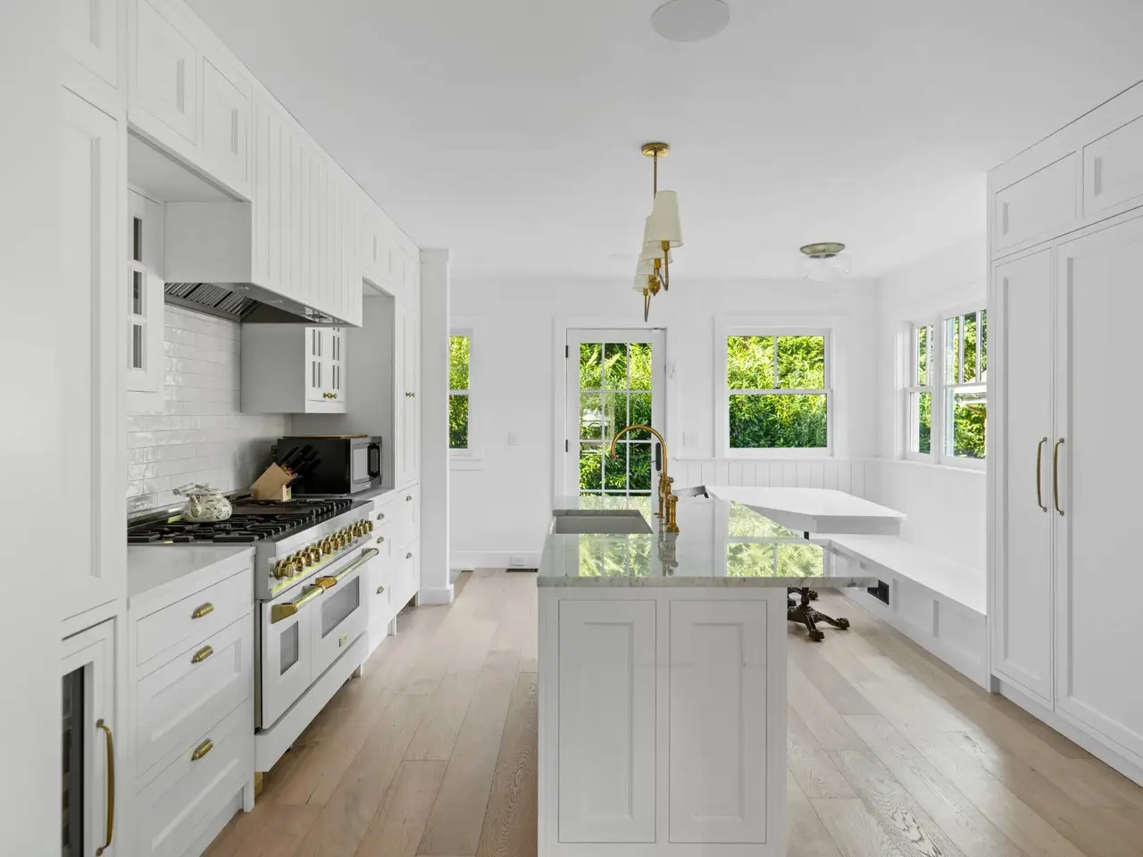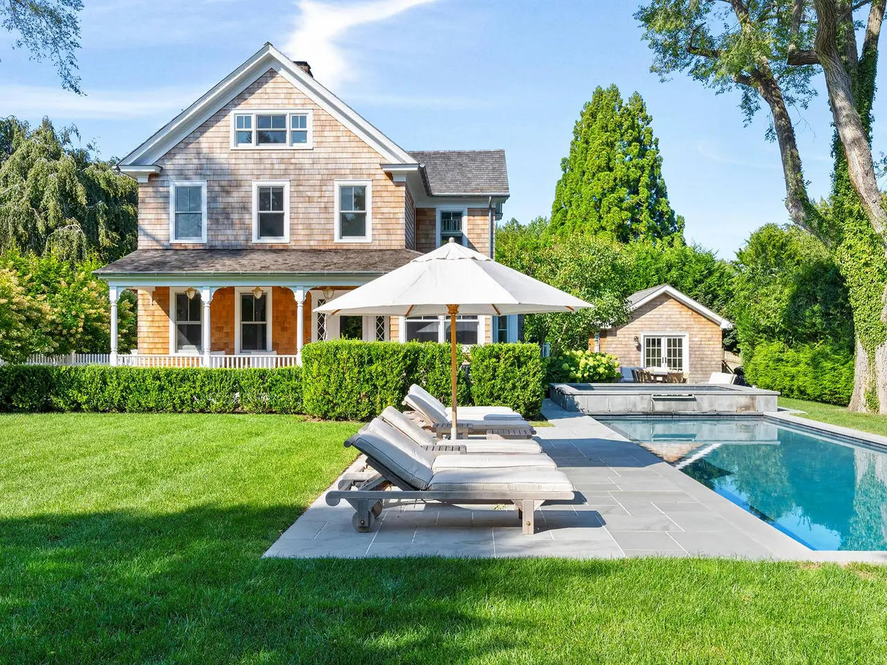 This elegant East Hampton Village home (circa 1870) underwent a gut renovation in 2023 under the acute eyes of architect Mark Zeff. Today, the home provides all modern amenities with special touches from years gone by. The large front porch welcomes you, the foyer offers a beautiful staircase with period detailing. Next is a spacious living room with original details and a fireplace, an enclosed sunroom overlooking the grounds offers a peaceful retreat. The gourmet kitchen is a chef's dream. A first-floor primary en-suite with walk through closet. On the second floor is another en-suite and three additional guest rooms with a full bathroom. The finished lower level offers additional spaces like a full bath, TV room, and office space. The heated gunite 13 x 40 pool is located next to a 13 x 7 spa overlooking the garden and pool house. Amenities include central air and beautifully finished pool house. Conveniently located close to the village restaurants and stores. Also, 1.26 miles to Main Beach.
