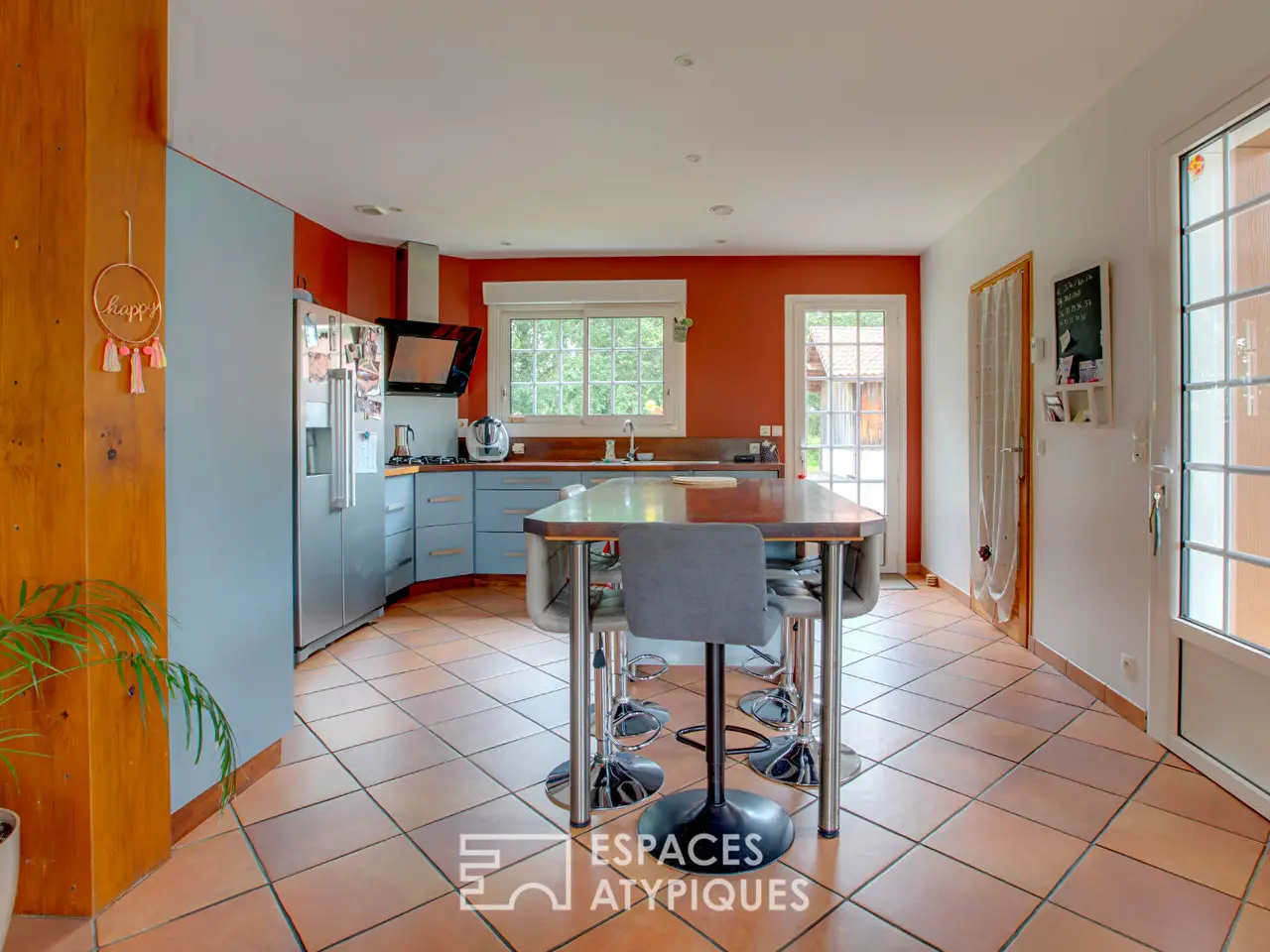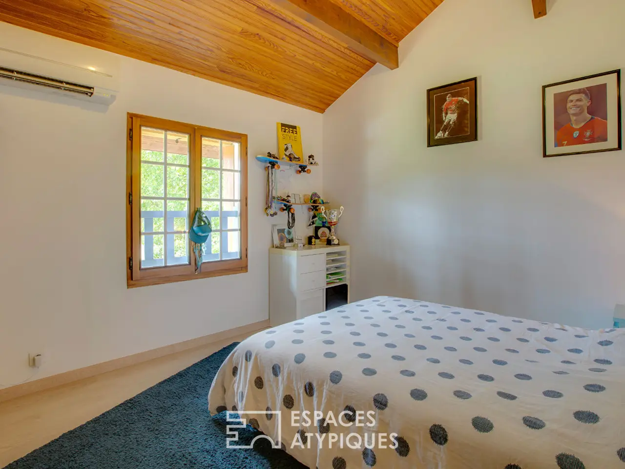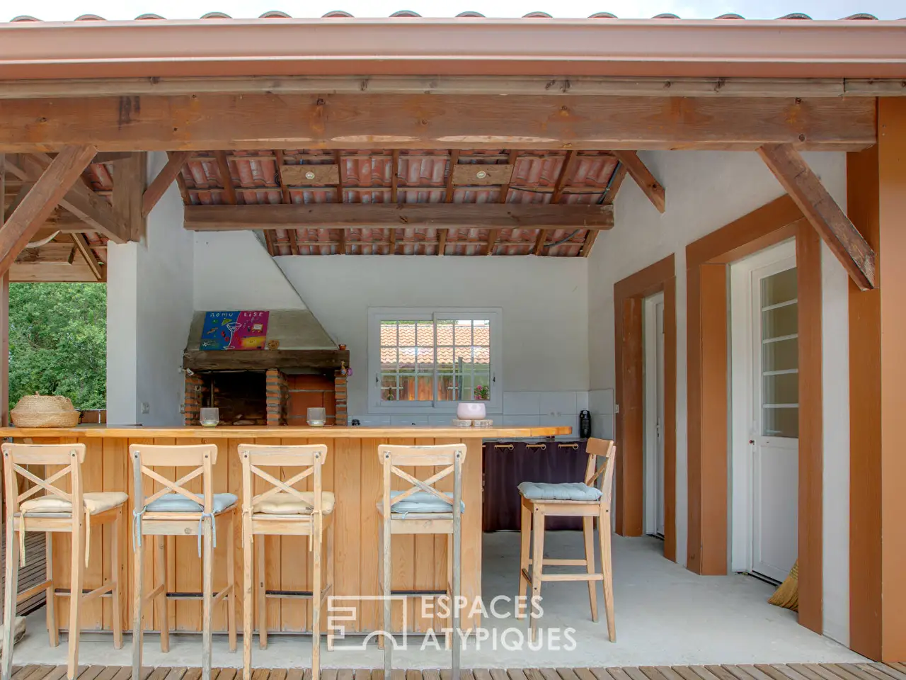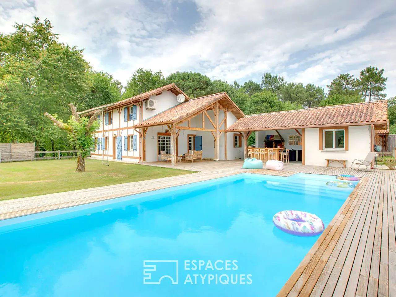 Nestled in a green setting, sheltered from view, this property located in Castets offers a peaceful and confidential living environment, combining nature and comfort. The complex consists of a main house and a separate gite, set on a wooded plot of over 4,700 sqm with a swimming pool and large garage. Upon entering, the generous volumes and exposed timbers create a warm and authentic atmosphere. The light-filled living room opens onto a vast terrace with unobstructed views of the garden. The open-plan kitchen, dining area, and six bedrooms spread between the two dwellings offer ideal flexibility for welcoming family and friends, or developing a seasonal rental business. The fully equipped gite benefits from independent access and excellent privacy, while the exteriors are designed for relaxation: a sunny swimming pool, shaded terrace, landscaped areas, and more. A living space in harmony with nature, ideal for convivial moments. This rare property seduces with its layout, its preserved environment, and its diverse potential. A unique address, ideal for those seeking an art of living combining authenticity and comfort, in a privileged setting in the Landes. ENERGY CLASS: C / CLIMATE CLASS: A Estimated average amount of annual energy expenditure for standard use, established from 2015 energy prices: 839 euros/year. Contact: Stephan DE VALK at 06 33 03 98 65 RSAC: 533 152 955 Dax REF. 11481EALD Additional information * 9 rooms * 6 bedrooms * 2 shower rooms * Outdoor space : 4759 SQM * Property tax : 1 832 € Energy Performance Certificate Primary energy consumption c : 101 kWh/m2.year High performance housing